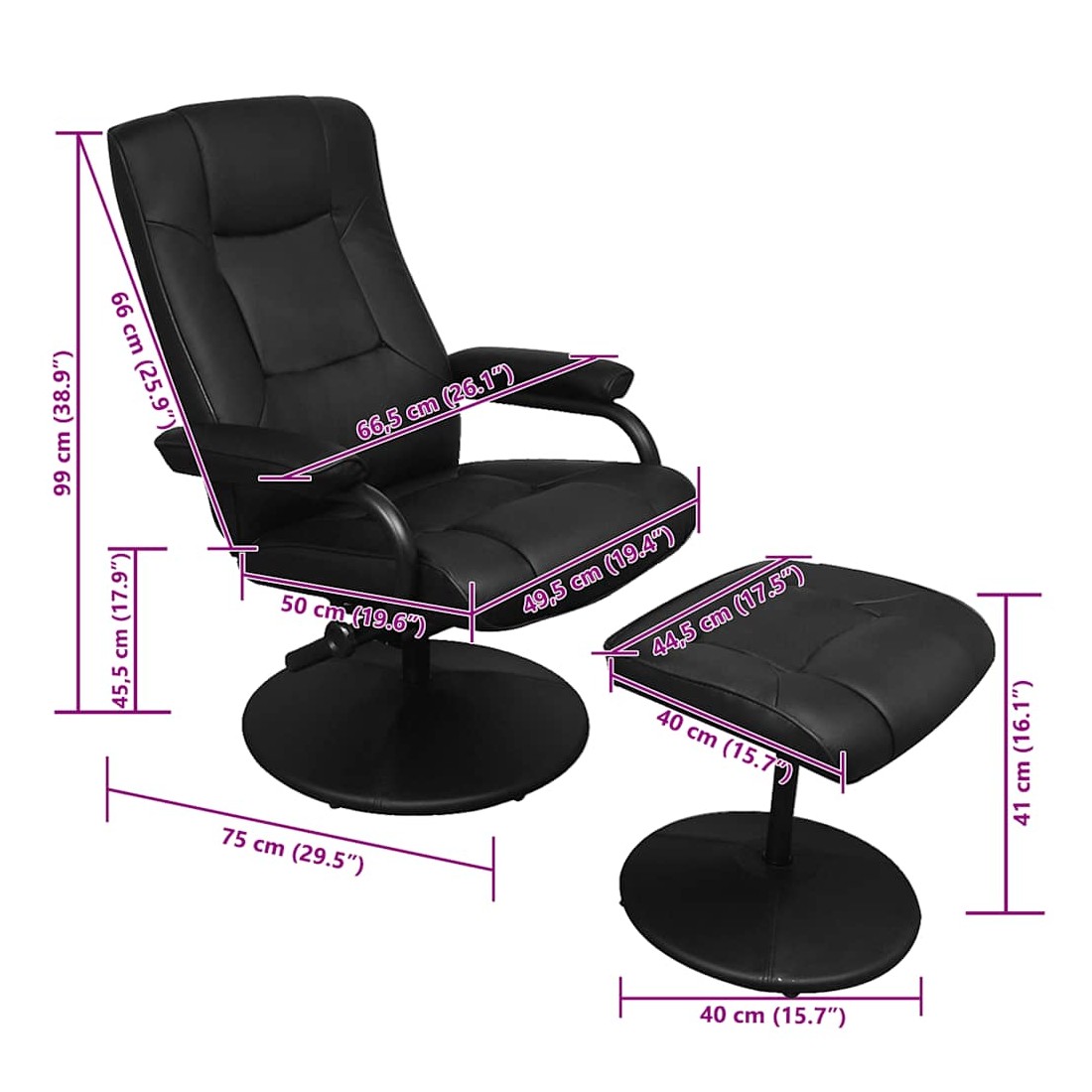 Ce fauteuil en cuir synthétique, complété d'un repose-pied, allie style et fonctionnalité. L'ensemble a un cadre en métal et en bois solide, remplit de la mousse de haute densité et recouvert de cuir synthétique de qualité pour un maximum de confort. Le siège épais et le dossier doux sont très confortables. En plus, le dossier s'incline et vous pouvez relâcher vos pieds sur le repose-pied. Ajoutez cet ensemble de fauteuil en cuir synthétique à n'importe quelle salle pour créer un refuge confortable pour lire, regarder la TV ou juste vous relaxer. Vous allez l'adorer.