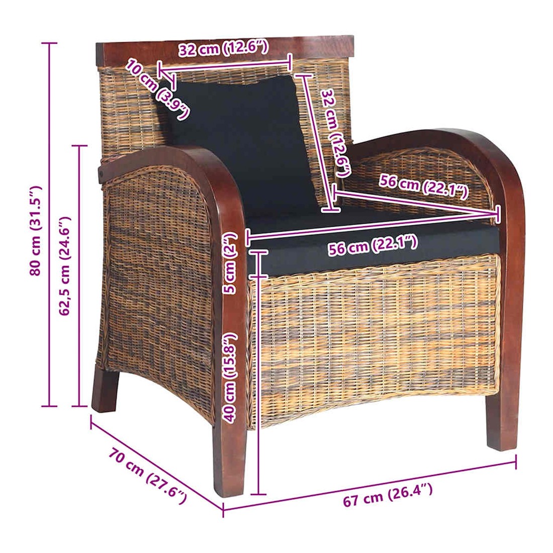 Ce fauteuil en rotin véritable, au look tropical, fera un excellent ajout à votre intérieur. Le cadre en manguier et le véritable rotin rendent ce fauteuil solide, mais également esthétique. Ce siège recouvert de véritable rotin ainsi que les cousins sont très confortables. Si vous cherchez quelque chose pour compléter la décoration de votre salon ou chambre à coucher, alors cet élégant fauteuil tressé à la main sera un excellent choix. Veuillez noter : le fauteuil est tressé à la main avec du véritable rotin, il peut donc présenter des variations de couleur.