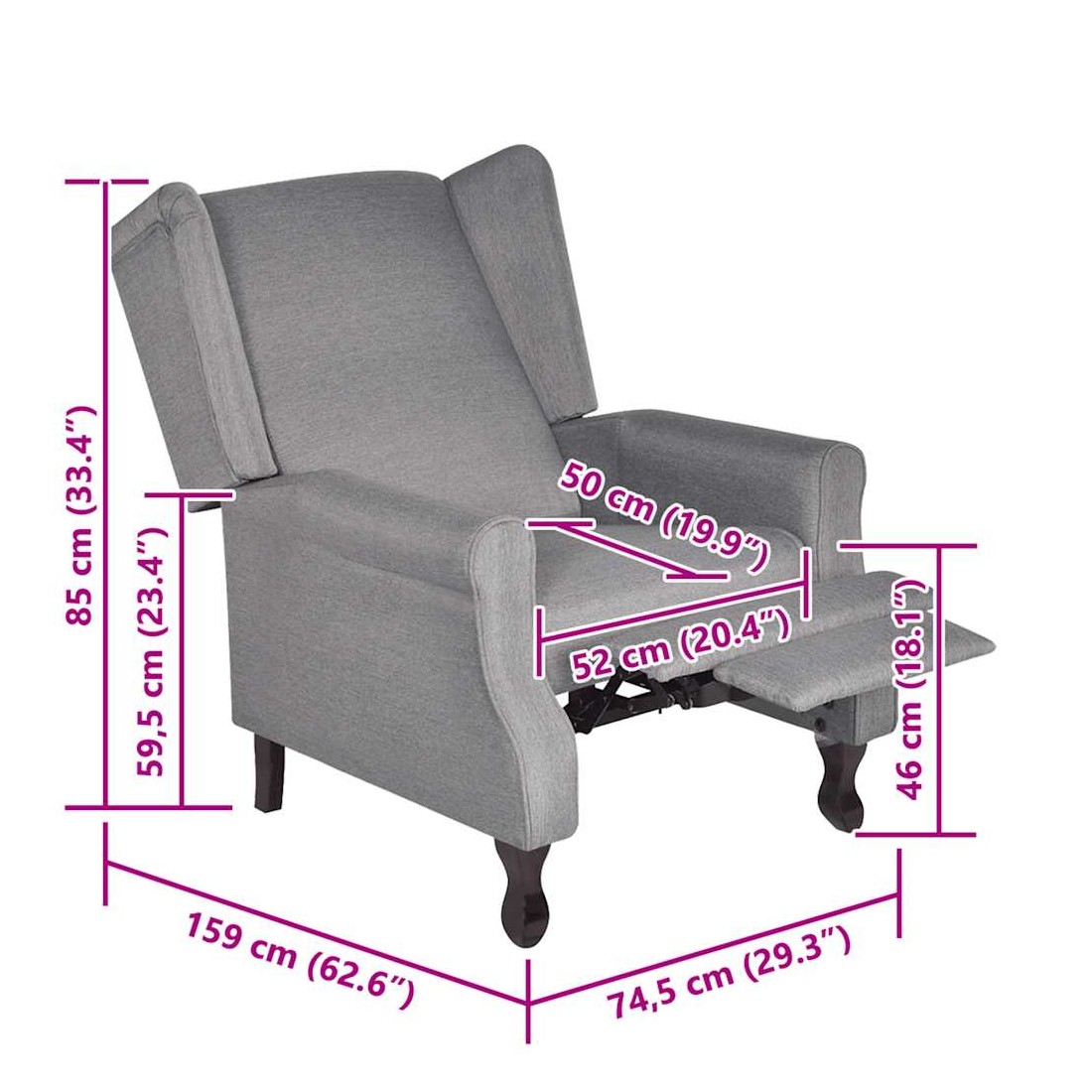 Ce fauteuil TV réglable sera un beau ajout complémentaire au décor de votre salon avec son design classique. Ce fauteuil réglable sera idéal pour les personnes âgées. Vous pouvez facilement l'incliner sur une position confortable, ce qui permettra de minimiser la pression de la colonne vertébrale. Ce fauteuil a des pieds en bois solides et est recouvert de tissu doux et confortable. Le coussin de siège inclus, rempli avec une éponge padding, ajoute un confort supplémentaire. Le fauteuil est un choix parfait pour discuter, lire, regarder la télévision ou tout simplement se détendre.