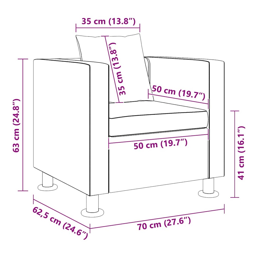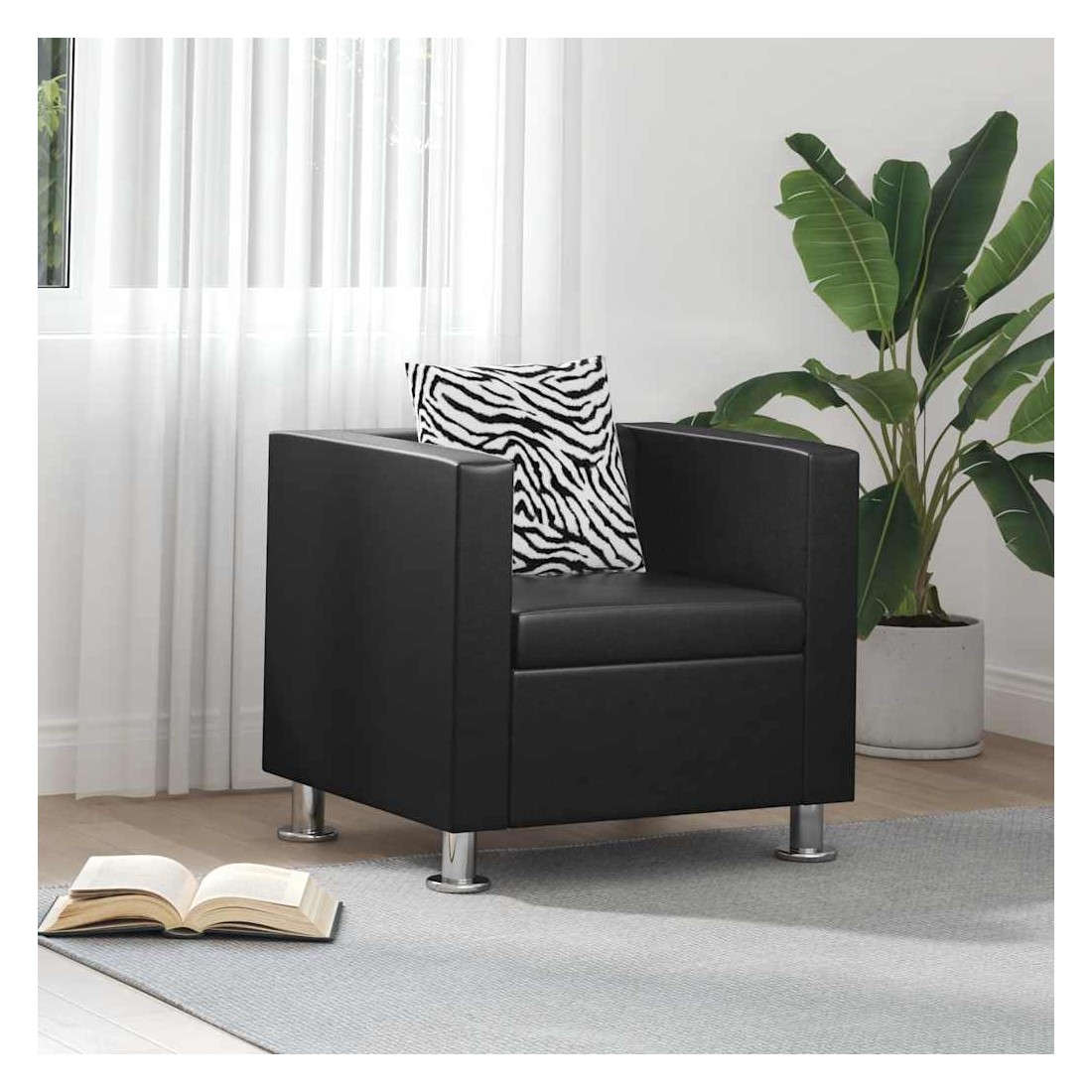 Ce fauteuil en cuir synthétique de qualité offre un confort d'assise optimal. Avec un design de cube moderne, c'est un excellent choix pour apporter du style à votre maison. Ce fauteuil cubique prend peu de place et offre des lignes simples pour décorer n'importe quelle pièce classique ou moderne. Ce fauteuil dispose d'un large surface d'assise et d'un coussin épais pour un confort optimal. Le fauteuil est rembourré avec du cuir synthétique de haute qualité et durable qui est résistant et facile à nettoyer. Son design simple est élevé par l'excellente couture. Le fauteuil cubique est bien construit avec des pieds robustes qui donnent de la durabilité. La livraison inclut 1 fauteuil et 1 oreiller lâche.