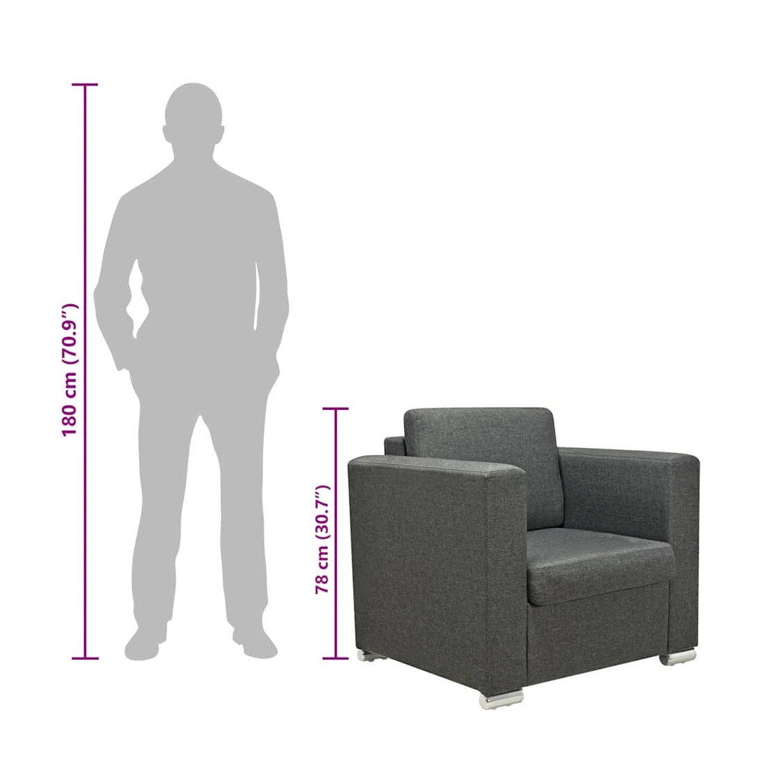 Ce fauteuil élégant sera un excellent accessoire à votre maison ou bureau. Que vous ayez besoin de quelques places de siège confortables dans votre bureau ou que vous désiriez un accessoire agréable et sophistiqué pour votre décor, ce fauteuil sera un excellent choix ! Le fauteuil dispose d'un large coin salon et de coussins épaississement rembourrés pour un confort d'assise optimal. Il est tapissé en tissu de haute qualité qui est résistant à l'usure. Les housses de coussin sont faciles à nettoyer car elles sont amovibles et peuvent être lavées à la machine. Le cadre fort en bois et les pieds chromés contribuent à sa construction robuste. L'assemblage est assez facile.