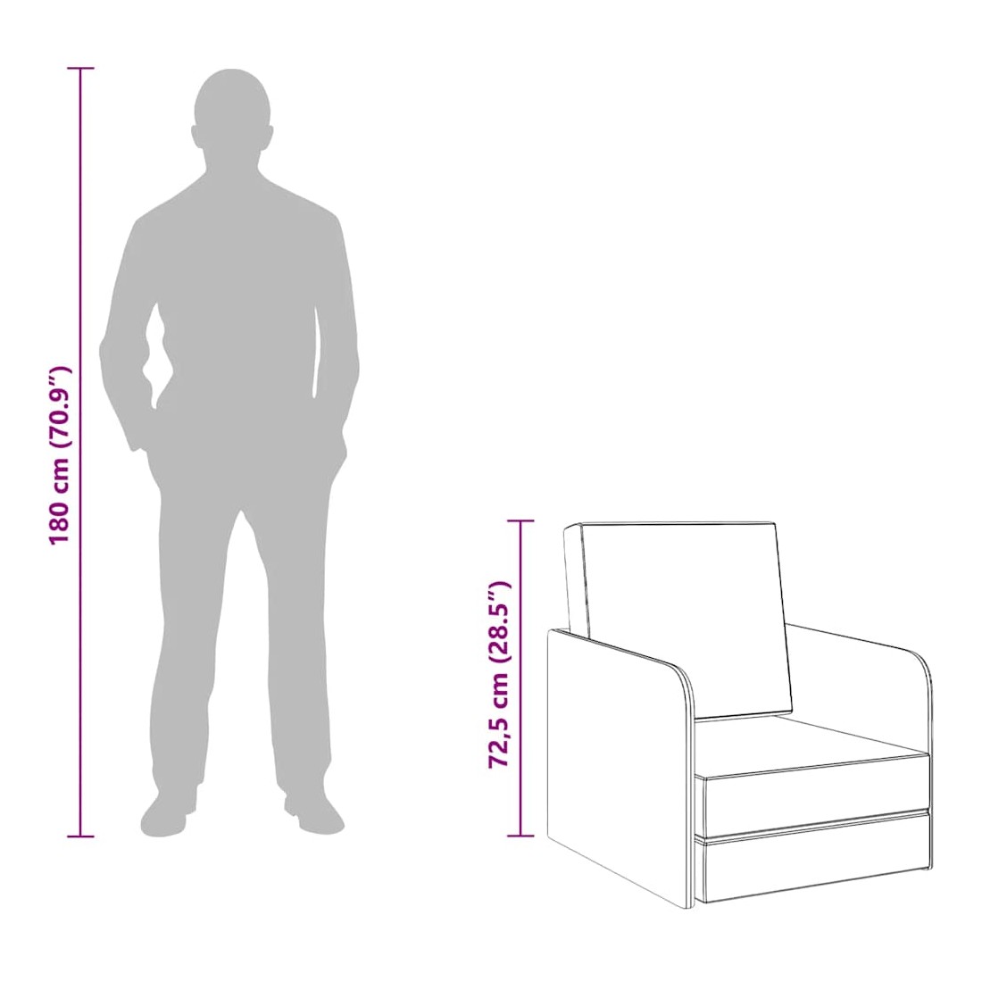 Cette chaise-lit convertible multifonctionnelle combine le luxe d'une grande place assise le jour et le confort d'un endroit de couchage pour des invités imprévus la nuit. Ce fauteuil confortable et doux peut être transformé en lit confortable et à nouveau en fauteuil de manière facile et rapide. La seule chose que vous avez à faire, c'est de prendre simplement le siège et le dossier et ensuite les rabattre vers votre sol. Le cadre en pin de haute qualité contribue à sa solidité et sa durabilité pour un usage quotidien, tandis que le siège et le dossier épaississement rembourrés en mousse sont très confortables pour s'asseoir ou dormir dessus.