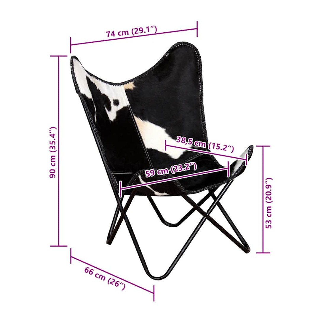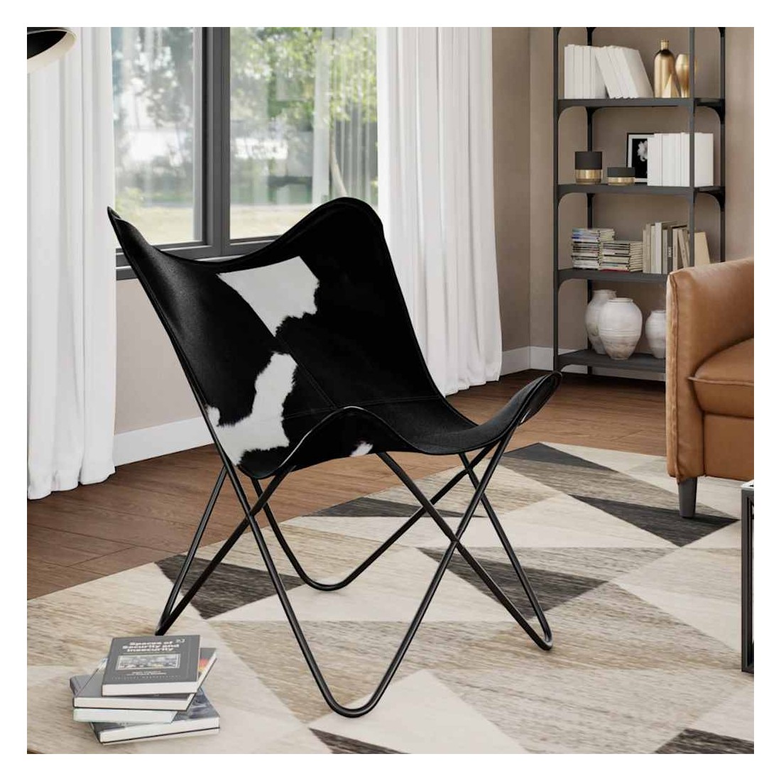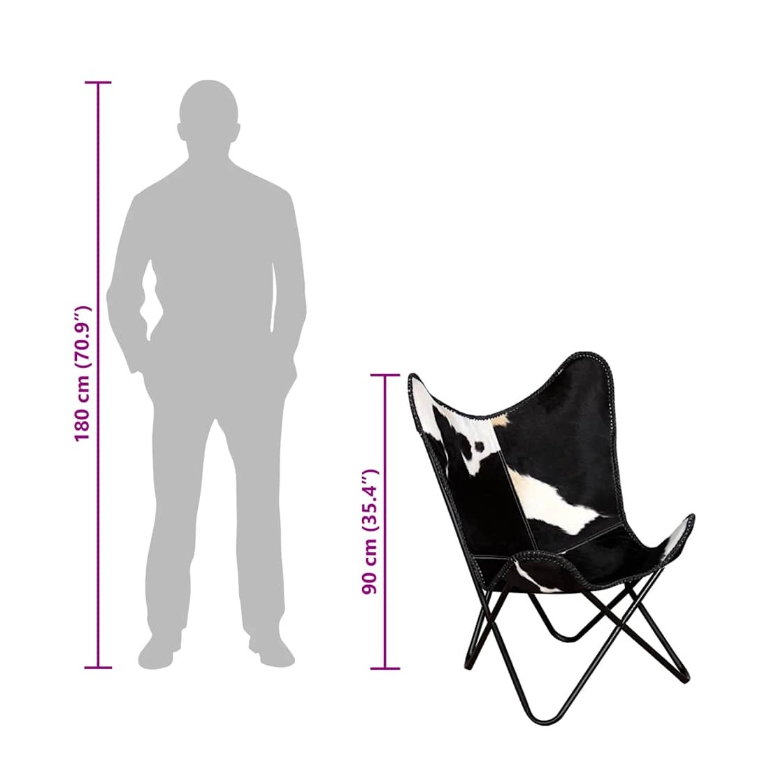 Notre fauteuil papillon de style vintage, fabriqué en cuir de vachette véritable, a été conçu de manière ergonomique pour une relaxation totale après une journée bien remplie. Son design papillon emblématique est très populaire et s'adapte à tous les environnements. Cette chaise papillon classique en cuir est dotée d'un dossier et d'un siège légèrement incurvés, ce qui garantit que vous êtes suffisamment soutenu dans le plus grand confort. Fabriquée en cuir de vachette véritable, cette chaise papillon rétro est durable et conçue pour durer. Les quatre coins de la chaise sont également enveloppés de cuir véritable. Le cadre en fer robuste avec revêtement en poudre ajoute à sa stabilité et à sa durabilité. La chaise est légère et confortable. Remarque importante : les couleurs et les marques de la peau de vache varient d'une pièce à l'autre, ce qui rend chaque pièce unique. La livraison est aléatoire.