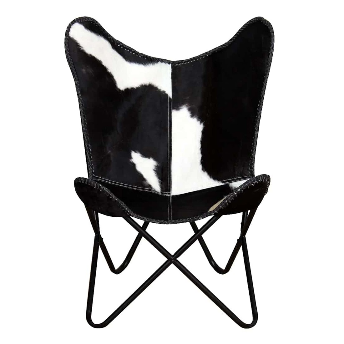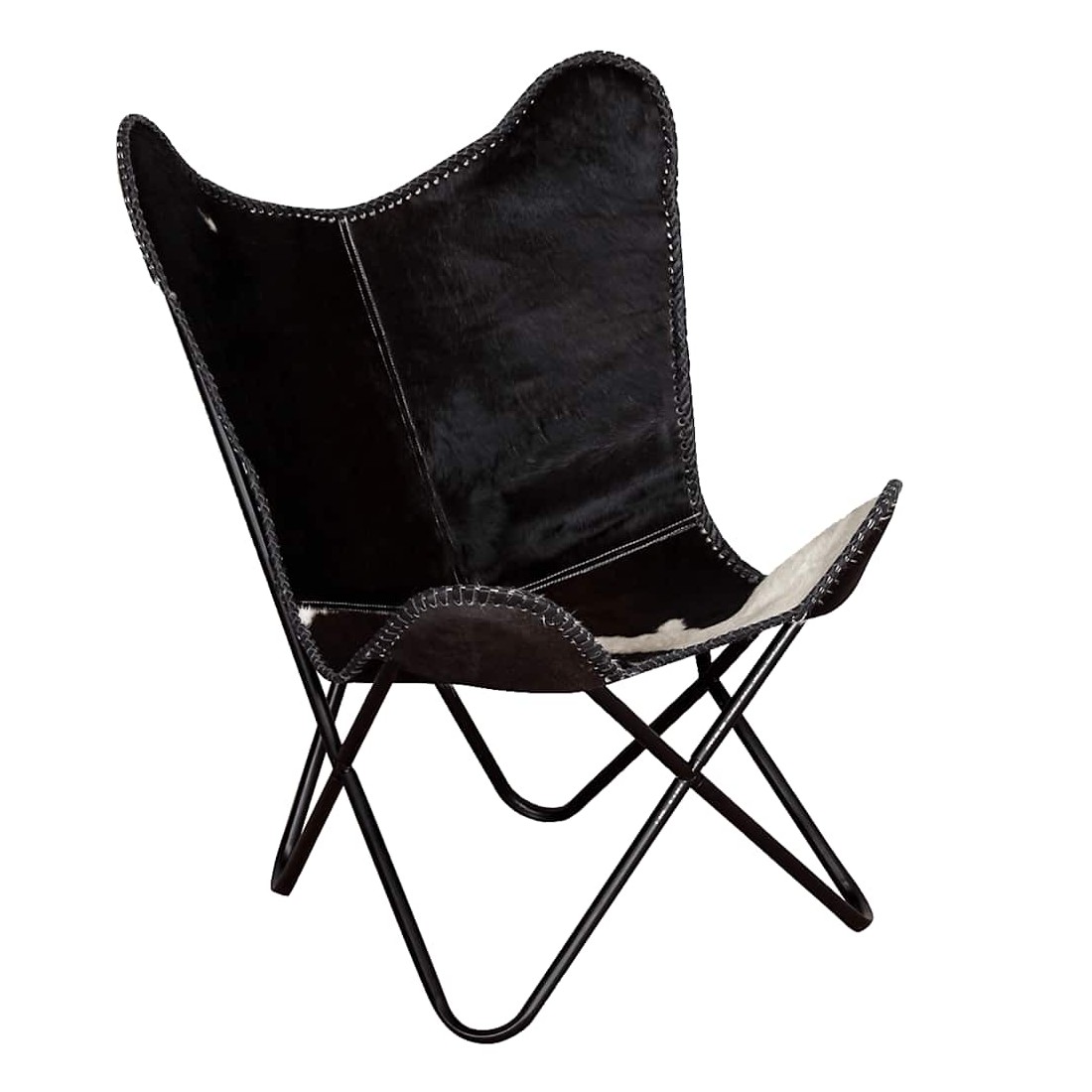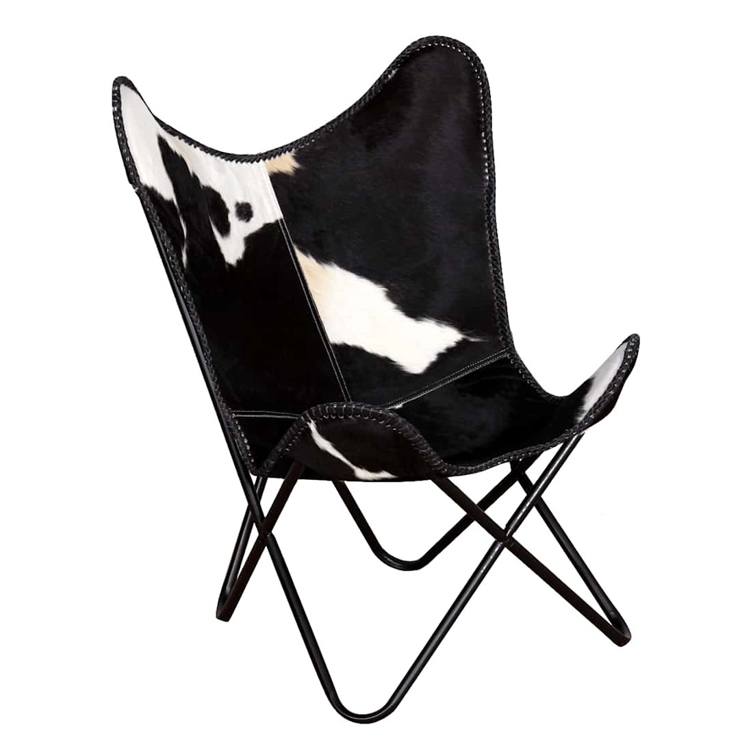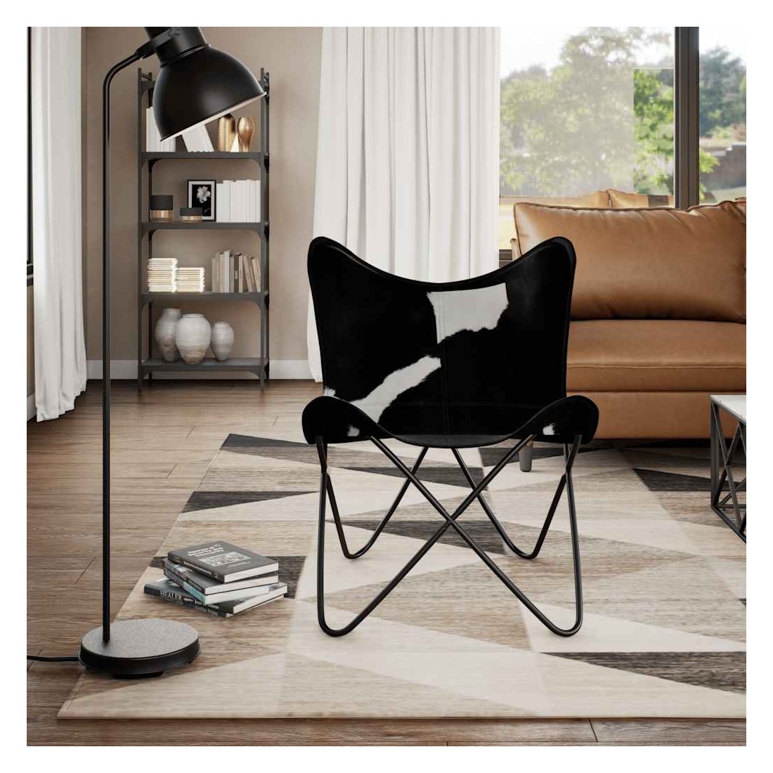 Notre fauteuil papillon de style vintage, fabriqué en cuir de vachette véritable, a été conçu de manière ergonomique pour une relaxation totale après une journée bien remplie. Son design papillon emblématique est très populaire et s'adapte à tous les environnements. Cette chaise papillon classique en cuir est dotée d'un dossier et d'un siège légèrement incurvés, ce qui garantit que vous êtes suffisamment soutenu dans le plus grand confort. Fabriquée en cuir de vachette véritable, cette chaise papillon rétro est durable et conçue pour durer. Les quatre coins de la chaise sont également enveloppés de cuir véritable. Le cadre en fer robuste avec revêtement en poudre ajoute à sa stabilité et à sa durabilité. La chaise est légère et confortable. Remarque importante : les couleurs et les marques de la peau de vache varient d'une pièce à l'autre, ce qui rend chaque pièce unique. La livraison est aléatoire.