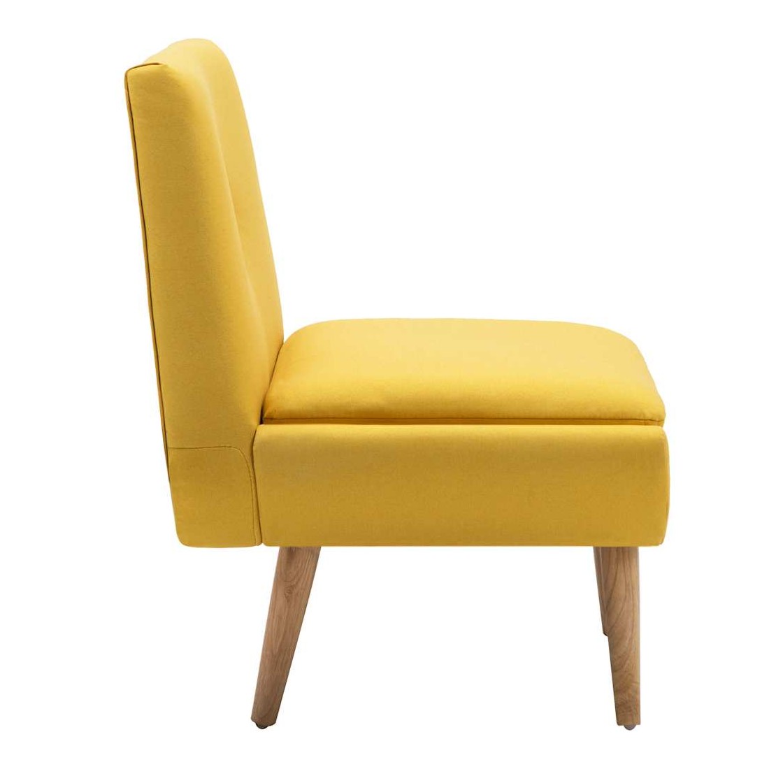 Le fauteuil sans accoudoirs rembourré en tissu sera un supplément parfait à votre intérieur. Composé de pieds en hévéa massif, revêtu d'un tissu de polyester de haute qualité avec rembourrage en mousse, le fauteuil est à la fois très résistant et confortable. Le siège et le dossier épaississement rembourrés ajoutent au confort d'assise du fauteuil. Ce sera un choix idéal pour bavarder, lire, regarder la télévision ou simplement vous détendre. Ce fauteuil sans accoudoirs est facile à assembler.