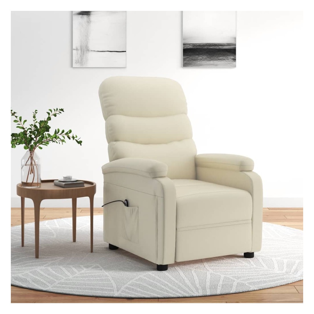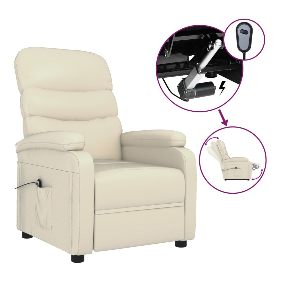 Asseyez-vous et détendez-vous dans ce fauteuil inclinable électrique très confortable ! Fonction d'inclinaison électrique : le fauteuil inclinable est équipé d'un moteur électrique pour la fonction d'inclinaison. Il offre 3 positions d'inclinaison et vous pouvez facilement régler le dossier et le repose-pied à l'aide de la commande manuelle à 2 boutons incluse, en fonction de votre confort.Expérience de siège confortable : le siège, le dossier et les larges accoudoirs rembourrés épais recouverts de similicuir procurent une sensation confortable et chaleureuse, vous faisant vous sentir enlacé lorsque vous êtes assis. Le simili cuir est un matériau très résistant. Il est résistant aux taches, ce qui le rend facile à nettoyer avec un chiffon humide. La surface lisse donne également un aspect luxueux et la beauté du cuir véritable.Cadre solide et stable : le cadre en bois et en métal offre une structure solide et une grande stabilité. Ce fauteuil inclinable est confortable et durable.
