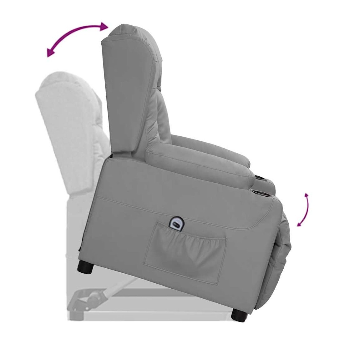Asseyez-vous et détendez-vous dans ce fauteuil très confortable ! Fonction d'inclinaison manuelle : le fauteuil inclinable est spécialement conçu avec 3 positions d'inclinaison afin que vous puissiez régler manuellement le dossier et le repose-pieds selon votre confort. Fonction de levage électrique : ce fauteuil inclinable pour personnes âgées est équipé d'un moteur électrique pour la fonction de levage. Grâce à la fonction qui pousse toute la chaise vers le haut, vous pouvez facilement vous tenir debout sans stresser votre dos et vos genoux grâce à la commande manuelle à 2 boutons. Expérience de siège confortable : le siège, le dossier et les larges accoudoirs rembourrés épais recouverts de similicuir procurent une sensation confortable et chaleureuse, vous faisant vous sentir enlacé