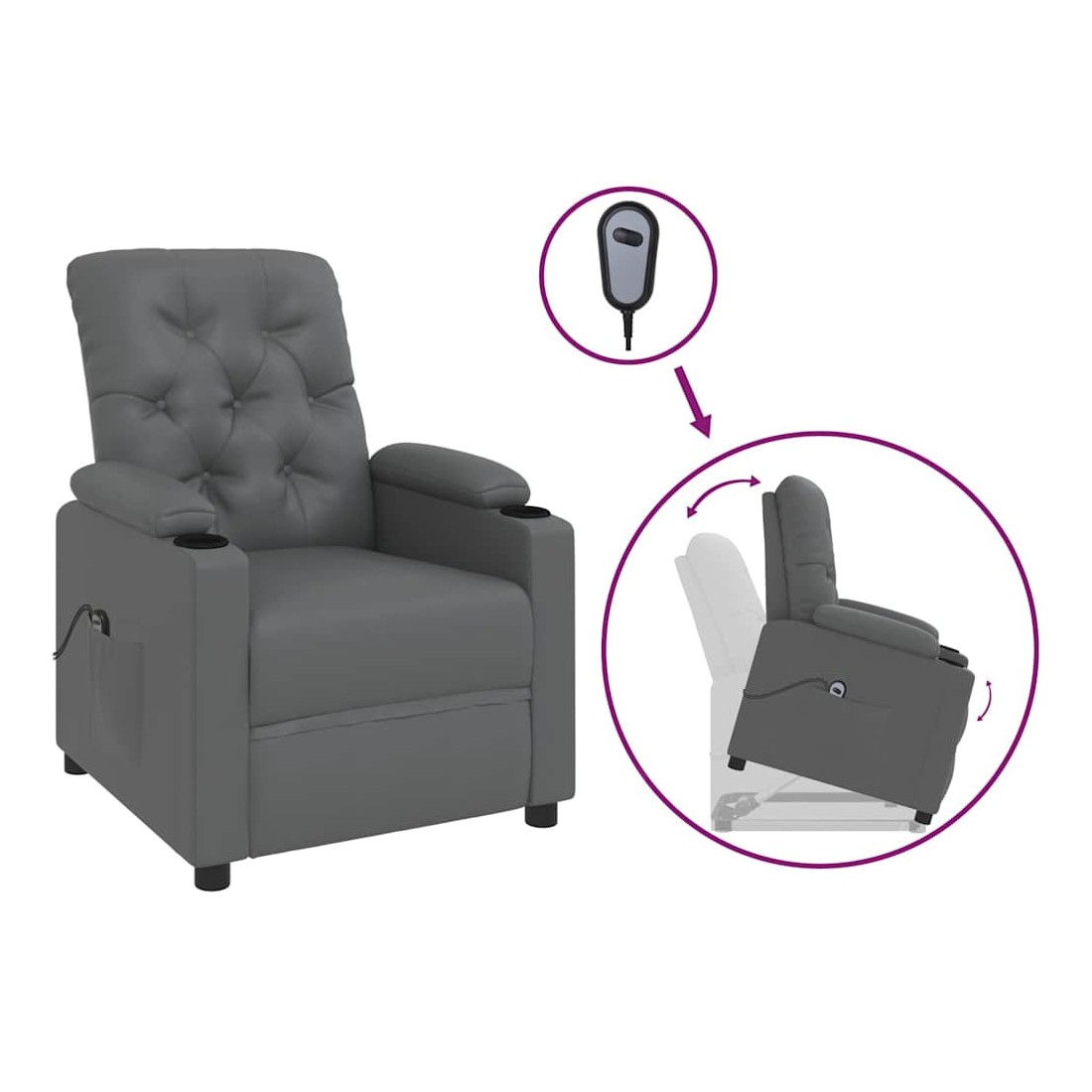 Asseyez-vous et détendez-vous dans ce fauteuil très confortable ! Fonction d'inclinaison manuelle : le fauteuil inclinable est spécialement conçu avec 3 positions d'inclinaison afin que vous puissiez régler manuellement le dossier et le repose-pieds selon votre confort.Fonction de levage électrique : ce fauteuil inclinable pour personnes âgées est équipé d'un moteur électrique pour la fonction de levage. Grâce à la fonction qui pousse toute la chaise vers le haut, vous pouvez facilement vous tenir debout sans stresser votre dos et vos genoux grâce à la commande manuelle à 2 boutons.Expérience de siège confortable : le siège, le dossier et les larges accoudoirs rembourrés épais recouverts de similicuir procurent une sensation confortable et chaleureuse, vous faisant vous sentir enlacé lorsque vous êtes assis. Le simili cuir est un matériau très résistant. Il est résistant aux taches, ce qui le rend facile à nettoyer avec un chiffon humide. La surface lisse donne également un aspect luxueux et la beauté du cuir véritable.Cadre solide et stable : le cadre en bois et en métal offre une structure solide et une grande stabilité. Ce fauteuil inclinable est confortable et durable.