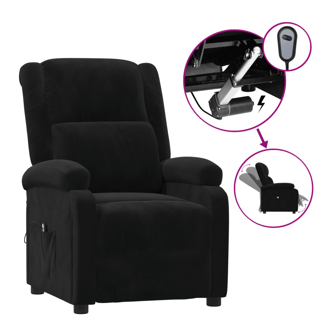 Fauteuil inclinable électrique noir velours