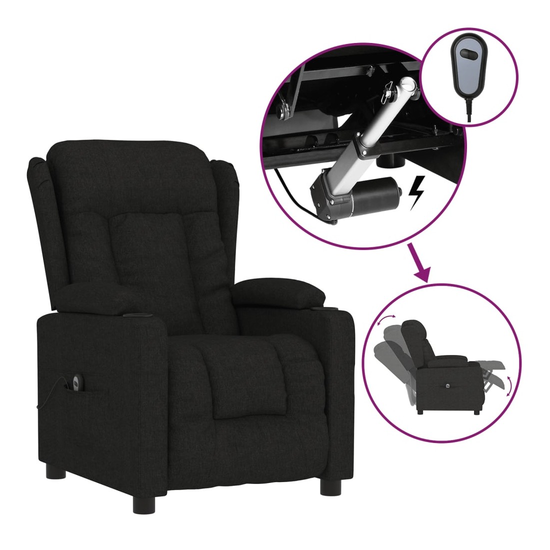 Asseyez-vous et détendez-vous dans ce fauteuil inclinable électrique très confortable ! Fonction d'inclinaison électrique : le fauteuil inclinable est équipé d'un moteur électrique pour la fonction d'inclinaison. Il offre 3 positions d'inclinaison et vous pouvez facilement régler le dossier et le repose-pied à l'aide de la commande manuelle à 2 boutons incluse, en fonction de votre confort.Expérience d'assise confortable : le siège, le dossier et les larges accoudoirs rembourrés épais recouverts de tissu procurent une sensation confortable et chaleureuse, vous permettant de vous sentir enveloppé lorsque vous êtes assis. Le tissu présente un aspect simple et épuré, et est respirant et durable.Cadre solide et stable : le cadre en bois et en métal offre une structure solide et une grande stabilité. Ce fauteuil inclinable est confortable et durable.