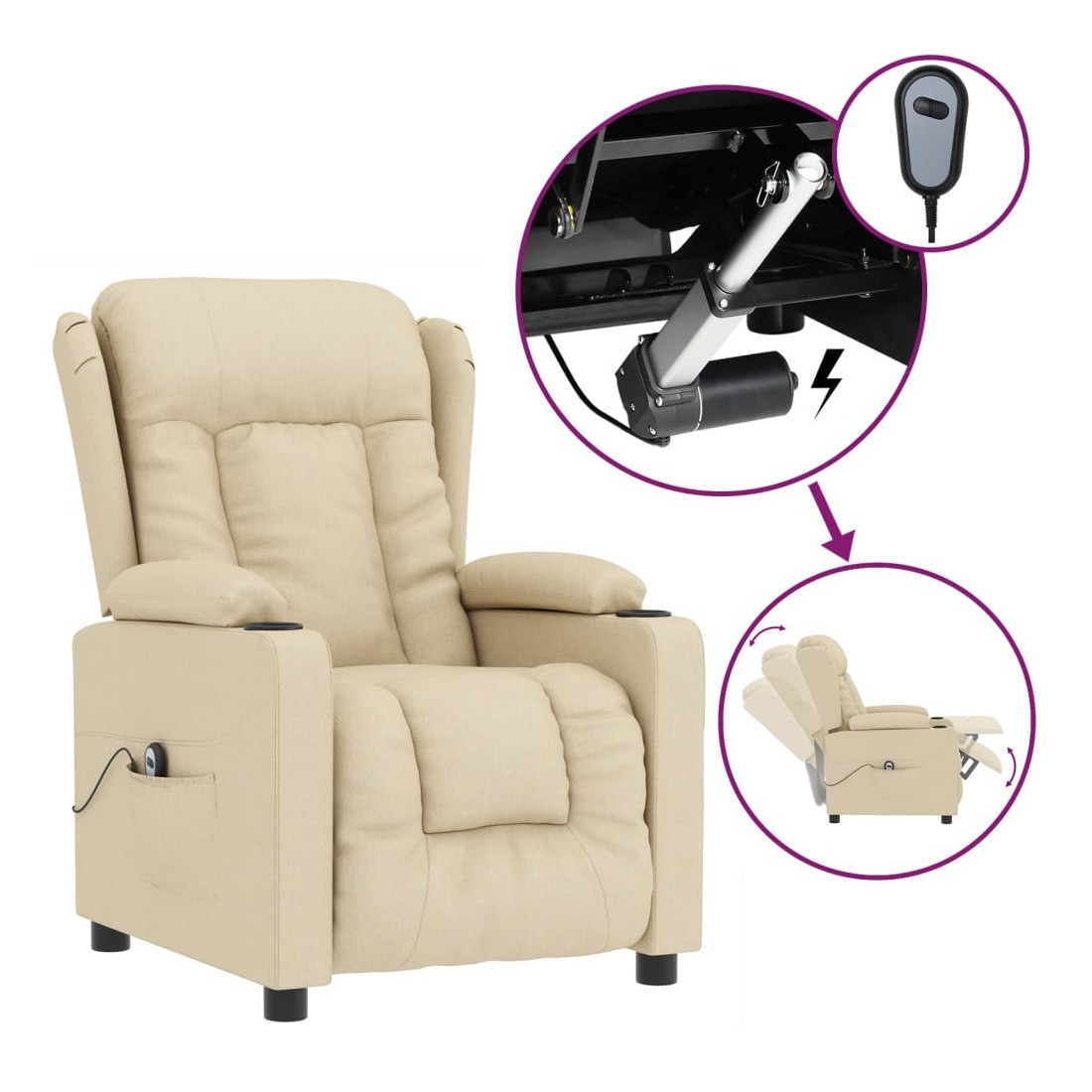 Fauteuil inclinable électrique Crème Tissu