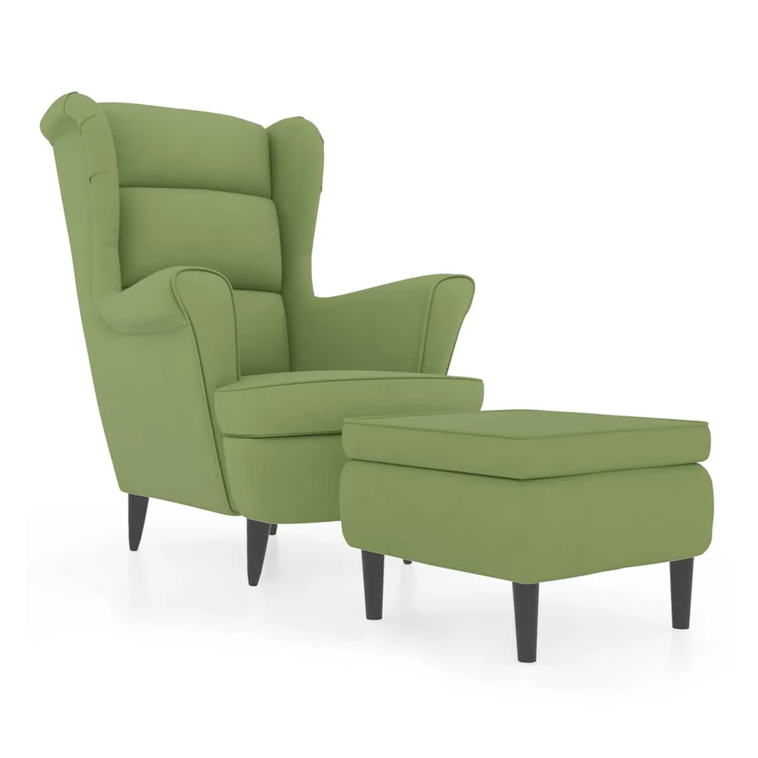Ce fauteuil confortable avec un tabouret présente un équilibre parfait entre style et fonctionnalité. Il vous offre un endroit confortable pour travailler ou vous reposer. Matériau de qualité : le velours est un tissu doux et luxueux qui se reconnaît à son tas dense de fibres uniformément coupées qui ont une touche lisse. Le tissu en velours présente un toucher doux distinctif, ce qui le rend confortable au toucher.Confort supplémentaire : il est parfait pour vous détendre et reposer vos pieds avec le tabouret inclus. Vous pouvez placer le tabouret n'importe où, selon vos préférences. De plus, les accoudoirs permettent à vos bras de se reposer confortablement.Structure robuste et stable : soutenue par une structure en contreplaqué et des pieds en bois, la chaise de relaxation avec tabouret est solide et stable.