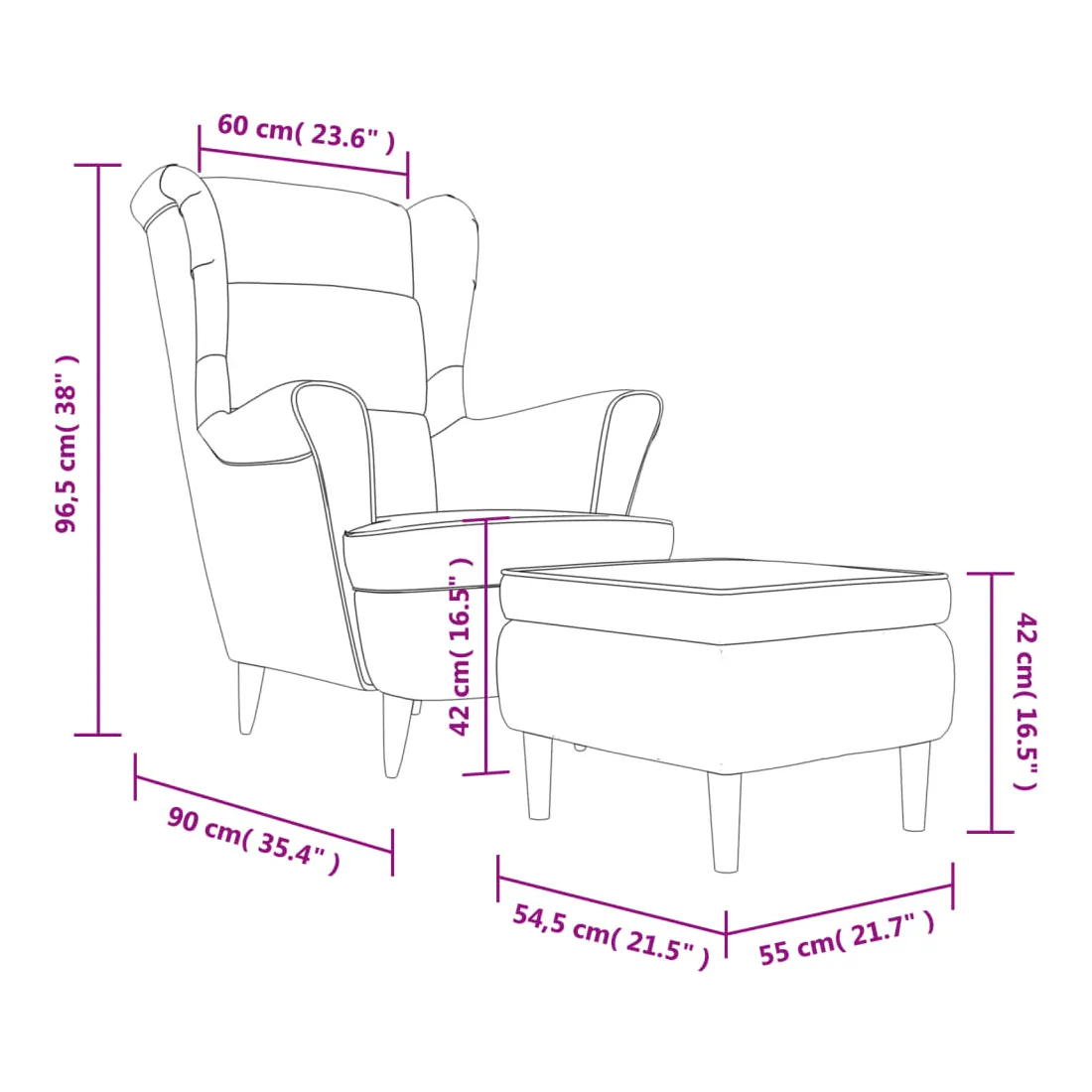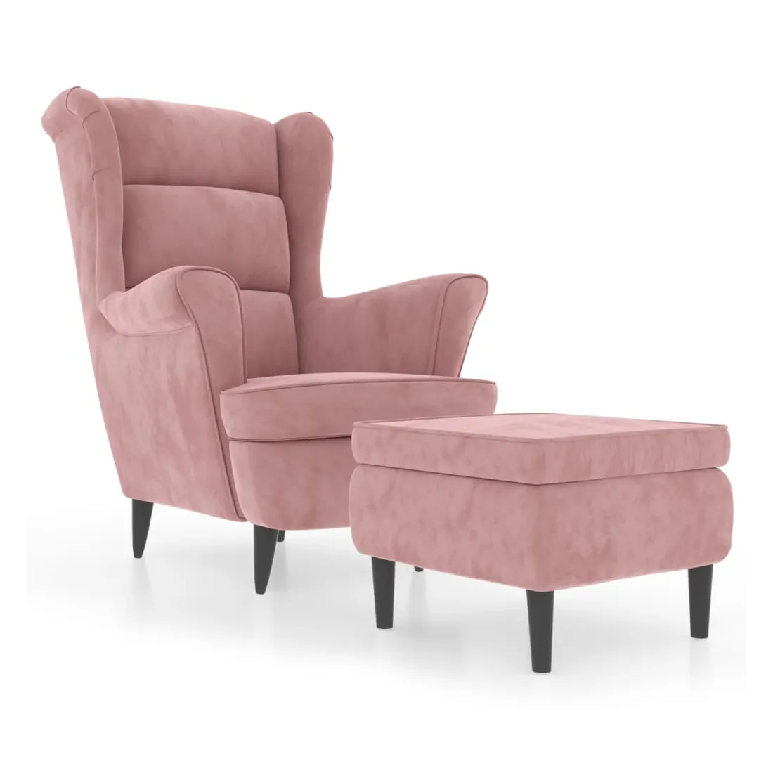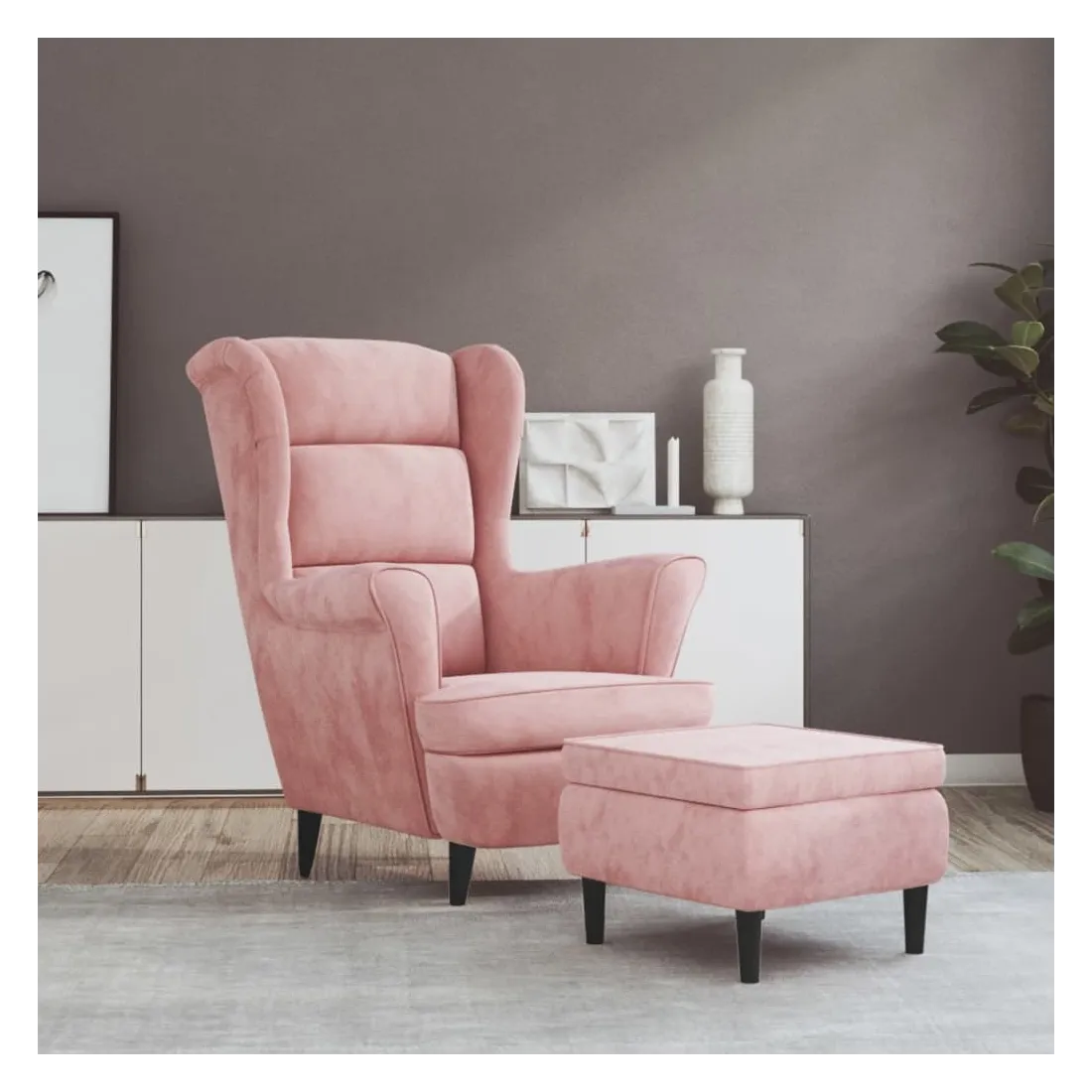 Ce fauteuil confortable avec un tabouret présente un équilibre parfait entre style et fonctionnalité. Il vous offre un endroit confortable pour travailler ou vous reposer. Matériau de qualité : le velours est un tissu doux et luxueux qui se reconnaît à son tas dense de fibres uniformément coupées qui ont une touche lisse. Le tissu en velours présente un toucher doux distinctif, ce qui le rend confortable au toucher.Confort supplémentaire : il est parfait pour vous détendre et reposer vos pieds avec le tabouret inclus. Vous pouvez placer le tabouret n'importe où, selon vos préférences. De plus, les accoudoirs permettent à vos bras de se reposer confortablement.Structure robuste et stable : soutenue par une structure en contreplaqué et des pieds en bois, la chaise de relaxation avec tabouret est solide et stable.