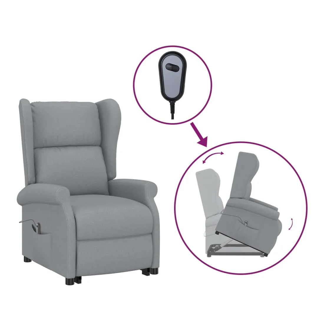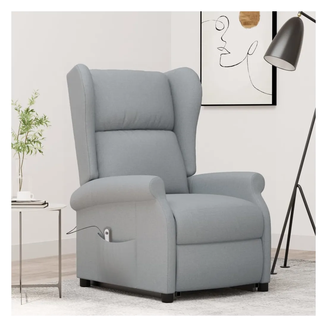 Asseyez-vous et détendez-vous dans ce fauteuil très confortable ! Fonction d'inclinaison manuelle : le fauteuil inclinable est spécialement conçu avec 3 positions d'inclinaison afin que vous puissiez régler manuellement le dossier et le repose-pieds selon votre confort.Fonction de levage électrique : ce fauteuil inclinable pour personnes âgées est équipé d'un moteur électrique pour la fonction de levage. Grâce à la fonction qui pousse toute la chaise vers le haut, vous pouvez facilement vous tenir debout sans stresser votre dos et vos genoux grâce à la commande manuelle à 2 boutons.Expérience d'assise confortable : le siège, le dossier et les larges accoudoirs rembourrés épais recouverts de tissu procurent une sensation confortable et chaleureuse, vous permettant de vous sentir enveloppé lorsque vous êtes assis. Le tissu présente un aspect simple et épuré, et est respirant et durable.Cadre solide et stable : le cadre en bois et en métal offre une structure solide et une grande stabilité. Ce fauteuil inclinable est confortable et durable.