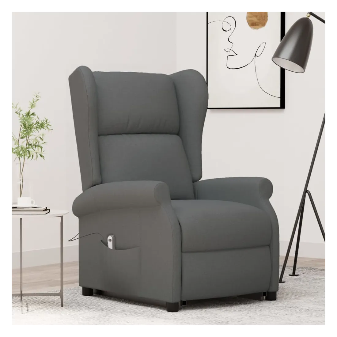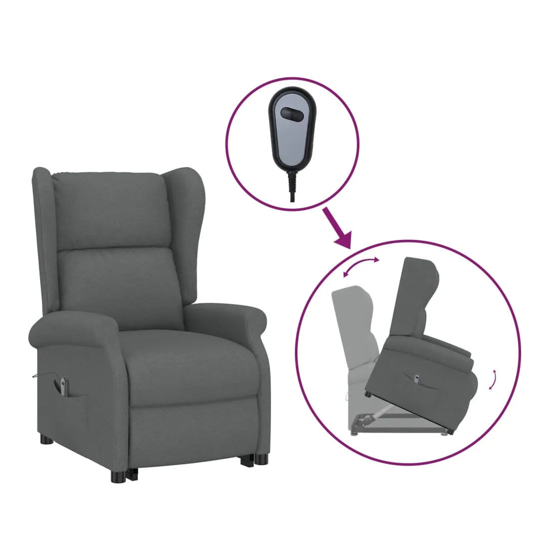 Asseyez-vous et détendez-vous dans ce fauteuil très confortable ! Fonction d'inclinaison manuelle : le fauteuil inclinable est spécialement conçu avec 3 positions d'inclinaison afin que vous puissiez régler manuellement le dossier et le repose-pieds selon votre confort.Fonction de levage électrique : ce fauteuil inclinable pour personnes âgées est équipé d'un moteur électrique pour la fonction de levage. Grâce à la fonction qui pousse toute la chaise vers le haut, vous pouvez facilement vous tenir debout sans stresser votre dos et vos genoux grâce à la commande manuelle à 2 boutons.Expérience d'assise confortable : le siège, le dossier et les larges accoudoirs rembourrés épais recouverts de tissu procurent une sensation confortable et chaleureuse, vous permettant de vous sentir enveloppé lorsque vous êtes assis. Le tissu présente un aspect simple et épuré, et est respirant et durable.Cadre solide et stable : le cadre en bois et en métal offre une structure solide et une grande stabilité. Ce fauteuil inclinable est confortable et durable.
