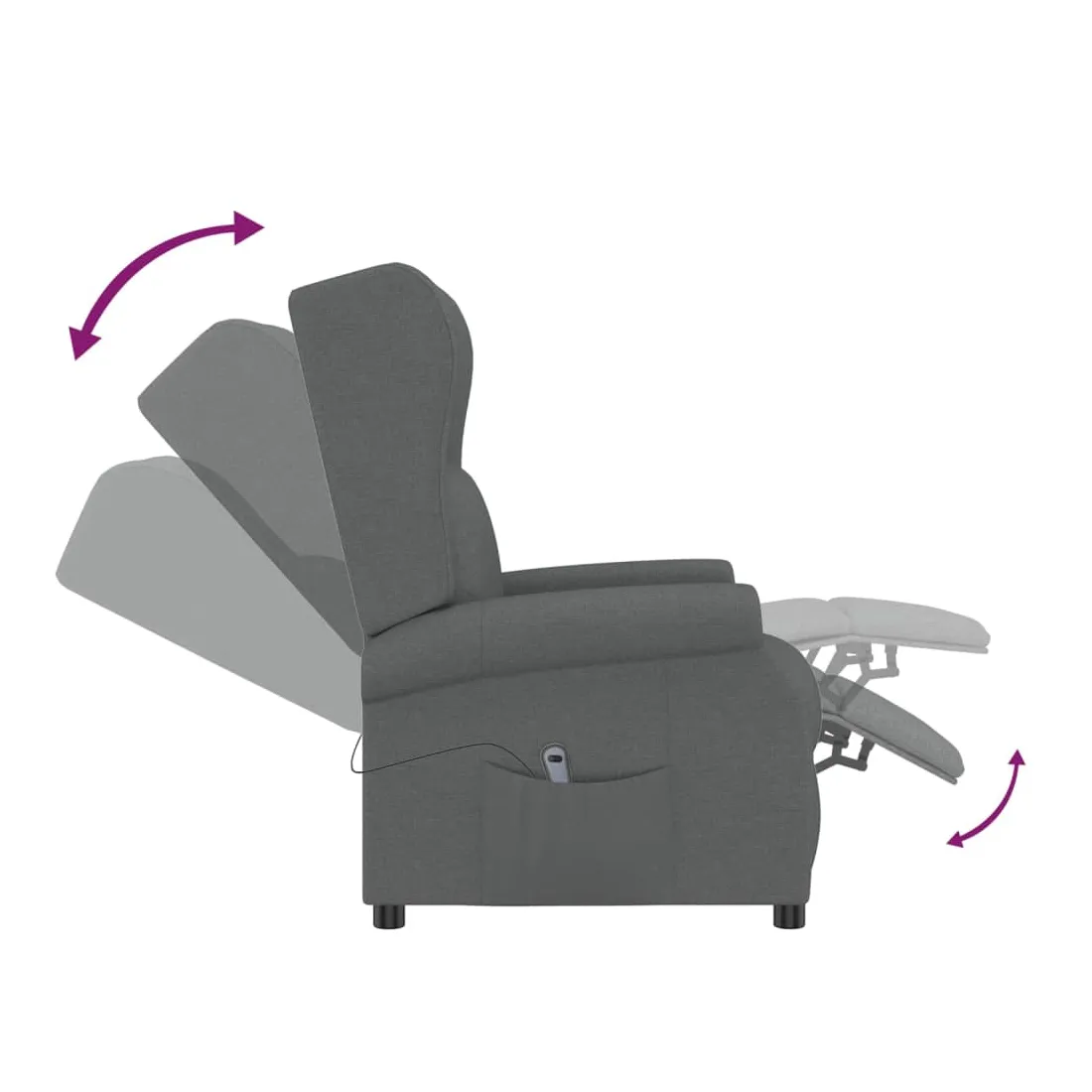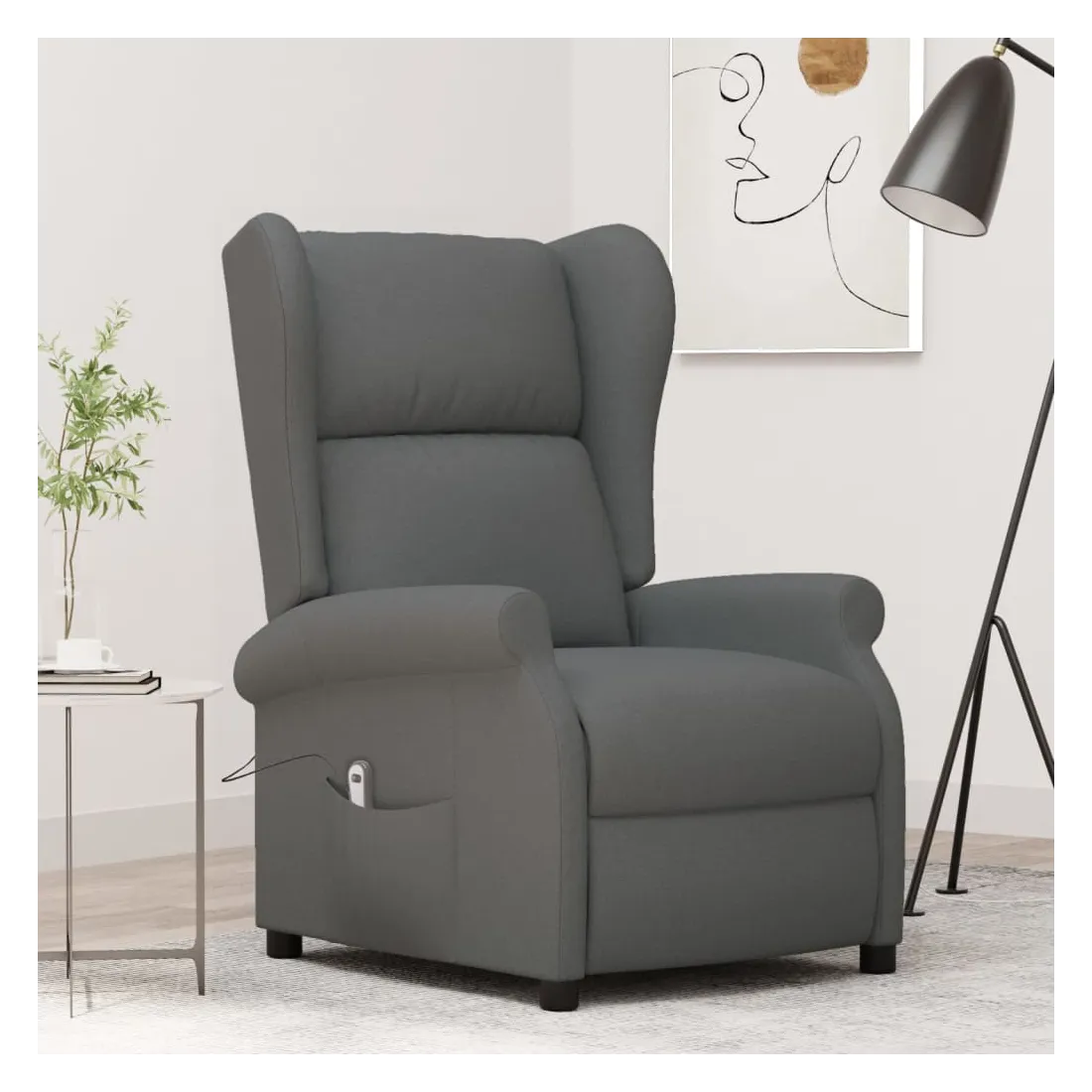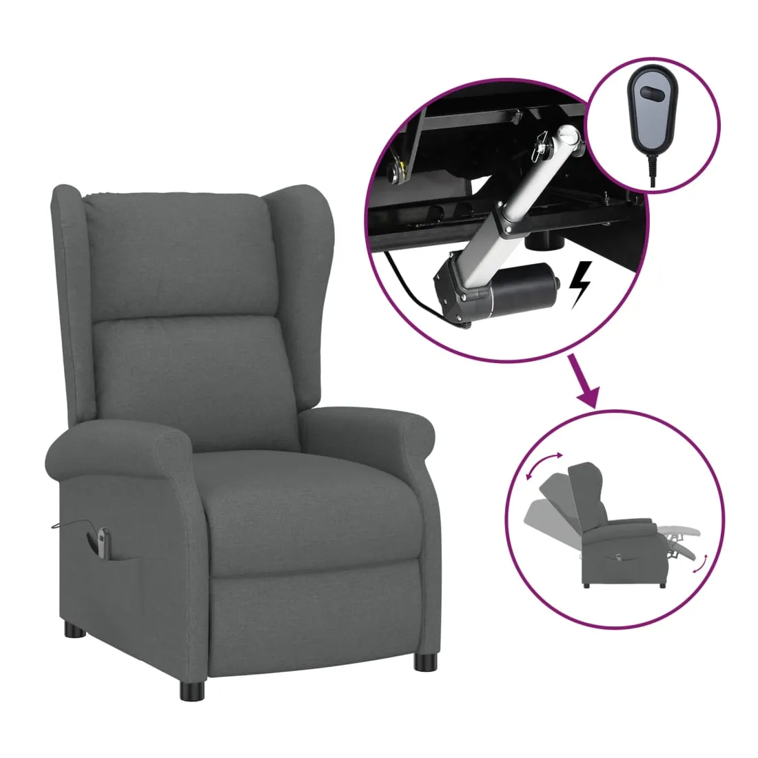 Asseyez-vous et détendez-vous dans ce fauteuil inclinable électrique très confortable ! Fonction d'inclinaison électrique : le fauteuil inclinable est équipé d'un moteur électrique pour la fonction d'inclinaison. Il offre 3 positions d'inclinaison et vous pouvez facilement régler le dossier et le repose-pied à l'aide de la commande manuelle à 2 boutons incluse, en fonction de votre confort.Expérience d'assise confortable : le siège, le dossier et les larges accoudoirs rembourrés épais recouverts de tissu procurent une sensation confortable et chaleureuse, vous permettant de vous sentir enveloppé lorsque vous êtes assis. Le tissu présente un aspect simple et épuré, et est respirant et durable.Cadre solide et stable : le cadre en bois et en métal offre une structure solide et une grande stabilité. Ce fauteuil inclinable est confortable et durable.