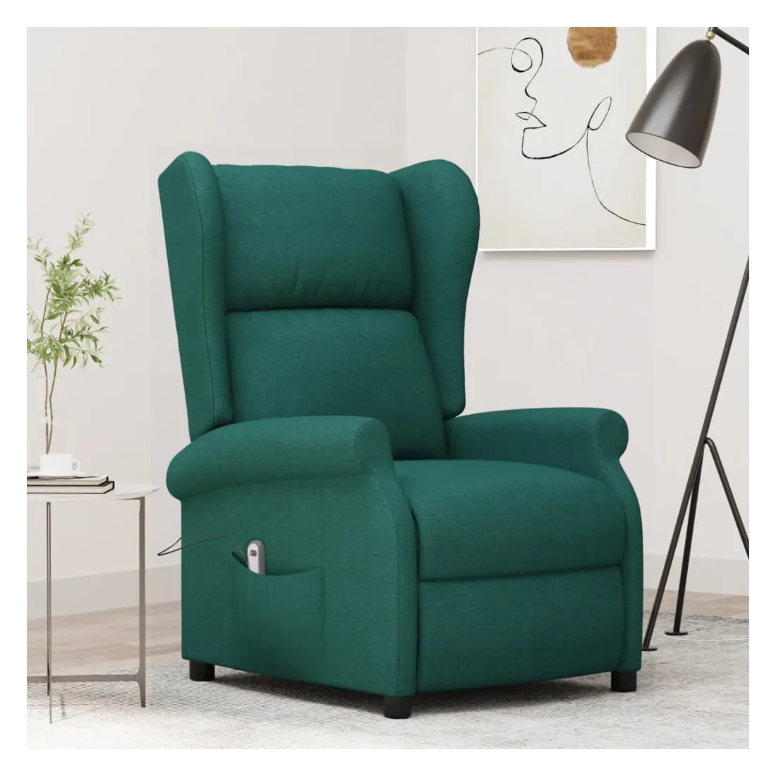 Fauteuil inclinable électrique à oreilles vert foncé tissu