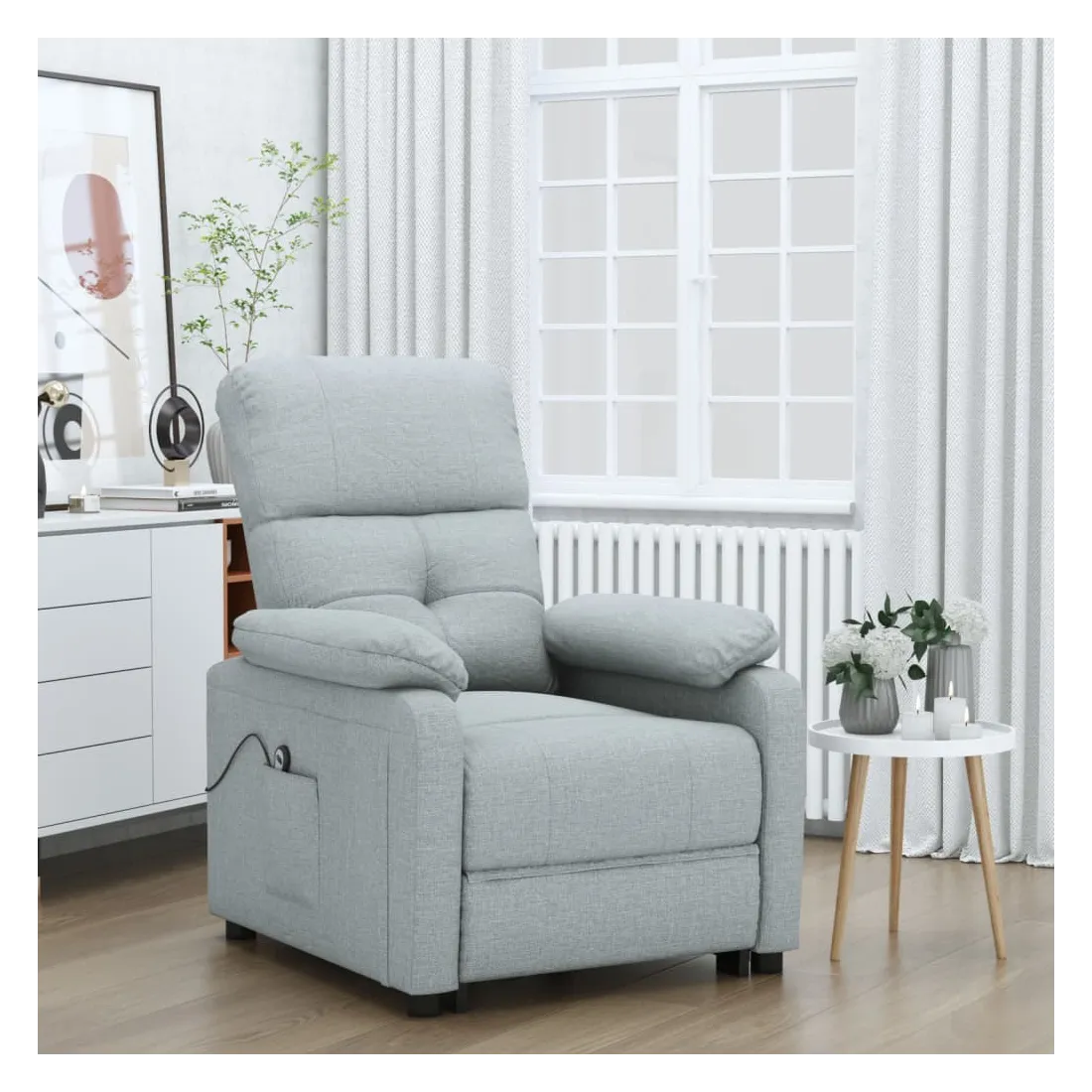 Asseyez-vous et détendez-vous dans ce fauteuil très confortable ! Fonction d'inclinaison manuelle : le fauteuil inclinable est spécialement conçu avec 3 positions d'inclinaison afin que vous puissiez régler manuellement le dossier et le repose-pieds selon votre confort.Fonction de levage électrique : ce fauteuil inclinable pour personnes âgées est équipé d'un moteur électrique pour la fonction de levage. Grâce à la fonction qui pousse toute la chaise vers le haut, vous pouvez facilement vous tenir debout sans stresser votre dos et vos genoux grâce à la commande manuelle à 2 boutons.Expérience d'assise confortable : le siège, le dossier et les larges accoudoirs rembourrés épais recouverts de tissu procurent une sensation confortable et chaleureuse, vous permettant de vous sentir enveloppé lorsque vous êtes assis. Le tissu présente un aspect simple et épuré, et est respirant et durable.Cadre solide et stable : le cadre en bois et en métal offre une structure solide et une grande stabilité. Ce fauteuil inclinable est confortable et durable.