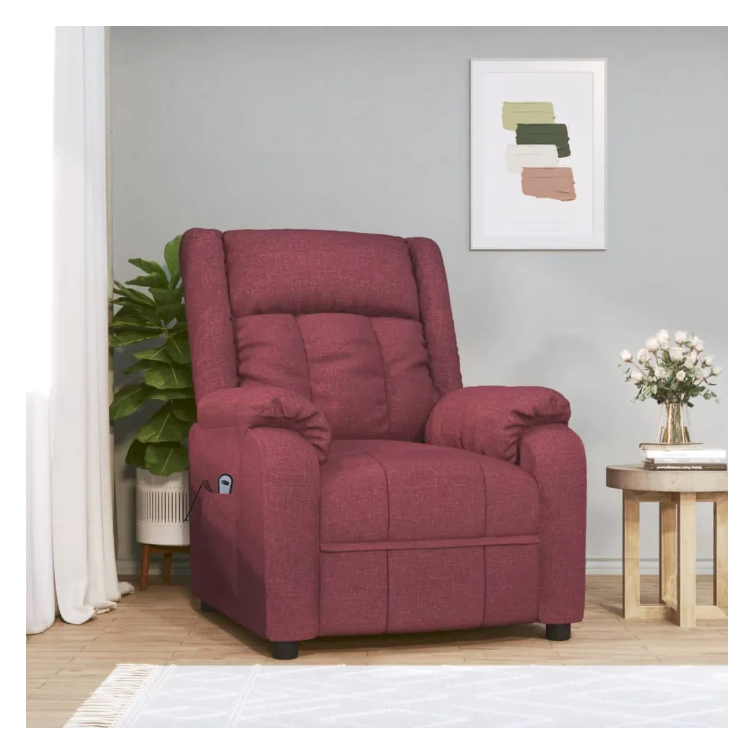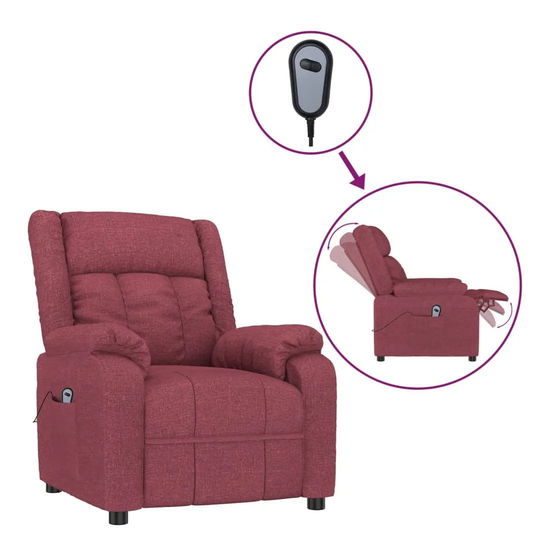 Asseyez-vous et détendez-vous dans ce fauteuil inclinable électrique très confortable ! Fonction d'inclinaison électrique : le fauteuil inclinable est équipé d'un moteur électrique pour la fonction d'inclinaison. Il offre 3 positions d'inclinaison et vous pouvez facilement régler le dossier et le repose-pied à l'aide de la commande manuelle à 2 boutons incluse, en fonction de votre confort.Expérience d'assise confortable : le siège, le dossier et les larges accoudoirs rembourrés épais recouverts de tissu procurent une sensation confortable et chaleureuse, vous permettant de vous sentir enveloppé lorsque vous êtes assis. Le tissu présente un aspect simple et épuré, et est respirant et durable.Cadre solide et stable : le cadre en bois et en métal offre une structure solide et une grande stabilité. Ce fauteuil inclinable est confortable et durable.