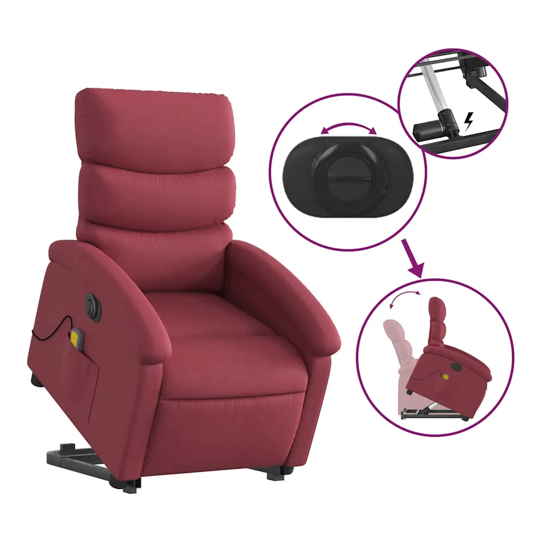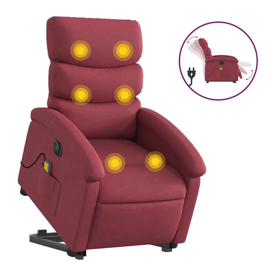 Asseyez-vous et détendez-vous dans ce fauteuil inclinable de massage électrique très confortable ! Fonction de levage électrique : ce fauteuil inclinable pour personnes âgées est équipé d'un moteur électrique pour la fonction de levage. Grâce à la fonction qui pousse toute la chaise vers le haut, vous pouvez facilement vous tenir debout sans stresser votre dos et vos genoux en appuyant simplement sur le bouton.Fonction d'inclinaison électrique : ce fauteuil inclinable est également équipé d'un moteur électrique qui permet de régler automatiquement le repose-pied et le dossier dans n'importe quelle position, selon votre confort, en appuyant simplement sur le bouton situé sur le côté du fauteuil. Cette fonction permet une inclinaison maximale de 135 degrés. En outre, le dossier peut revenir automatiquement à sa position d'origine par une simple pression sur le bouton.Fonction de vibration : les 6 points de massage vous permettent de faire l'expérience d'un massage mieux ciblé. De plus, la télécommande incluse vous permet de choisir différents programmes de massage. La fonction de massage est alimentée par le connecteur USB qui nécessite une source d'alimentation USB certifiée de 5 V (non fournie).Expérience d'assise confortable : le siège, le dossier et les larges accoudoirs bien rembourrés recouverts de tissu procurent une sensation confortable et chaleureuse, vous permettant de vous sentir enveloppé lorsque vous êtes assis. Le tissu présente un aspect simple et épuré et est respirant et durable.Poche latérale pratique : ce fauteuil est doté d'une poche latérale pour ranger votre télécommande ou garder vos objets essentiels à portée de main.Cadre solide et stable : le cadre en bois et en métal offre une structure solide et une grande stabilité. Ce fauteuil inclinable est confortable et durable.