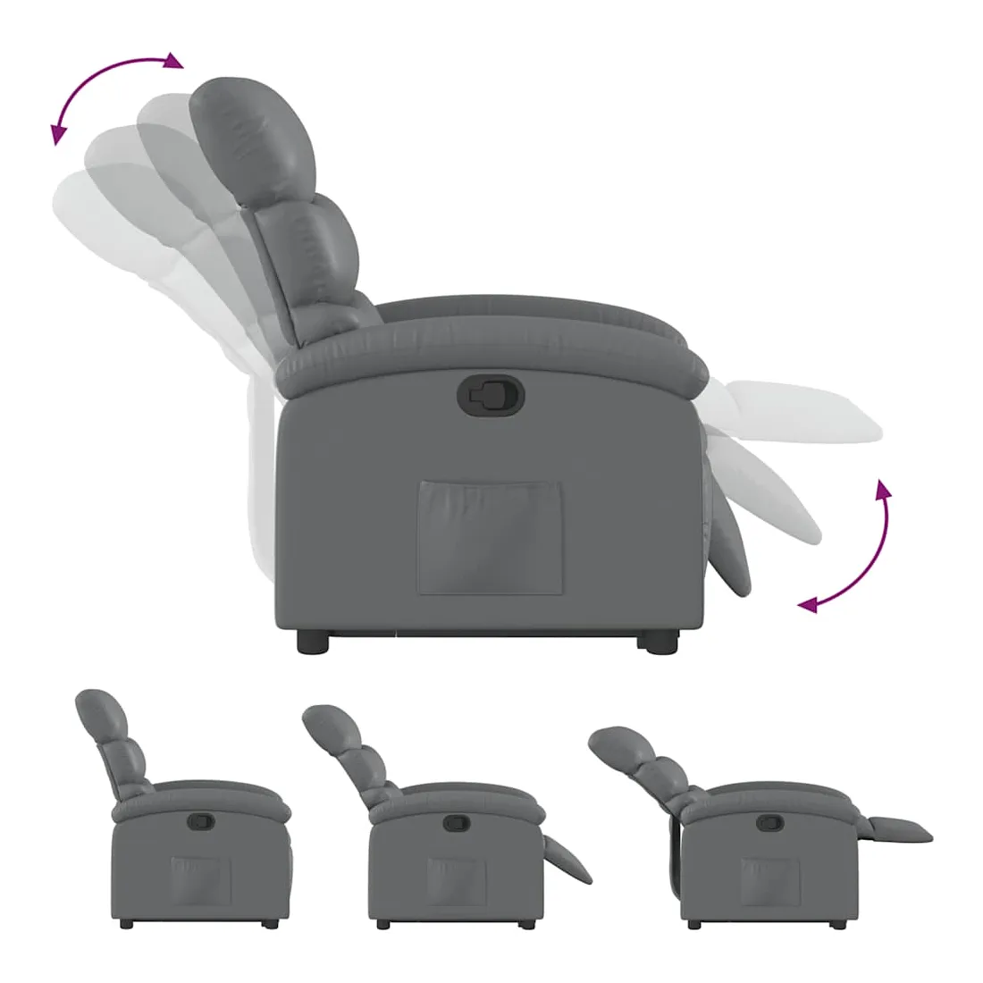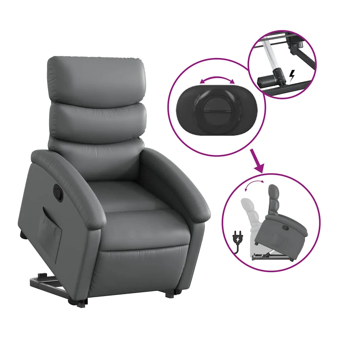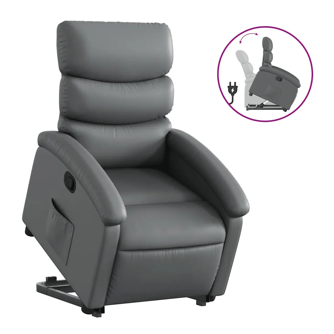 Asseyez-vous et détendez-vous dans ce fauteuil inclinable très confortable ! Fonction de levage électrique : ce fauteuil inclinable pour personnes âgées est équipé d'un moteur électrique pour la fonction de levage. Grâce à la fonction qui pousse toute la chaise vers le haut, vous pouvez facilement vous tenir debout sans stresser votre dos et vos genoux en appuyant simplement sur le bouton.Fonction d'inclinaison manuelle : ce fauteuil inclinable est doté d'une poignée du côté droit. Vous pouvez régler manuellement le repose-pieds et le dossier dans n'importe quelle position selon votre confort en tirant simplement sur la poignée. Cette fonction permet une inclinaison maximale de 135 degrés. De plus, le dossier peut revenir rapidement à sa position d'origine en tirant simplement sur la poignée.Expérience de siège confortable : le siège, le dossier et les larges accoudoirs rembourrés épais recouverts de similicuir procurent une sensation confortable, vous faisant vous sentir enlacé lorsque vous êtes assis. Le similicuir est un matériau très résistant. Il est résistant aux taches, ce qui le rend facile à nettoyer avec un chiffon humide. La surface lisse donne également un aspect luxueux et la beauté du cuir véritable.Poche latérale pratique : ce fauteuil est doté d'une poche latérale pour vous permettre de garder vos objets essentiels à portée de main.Cadre solide et stable : le cadre en bois et en métal offre une structure solide et une grande stabilité. Ce fauteuil inclinable est confortable et durable.