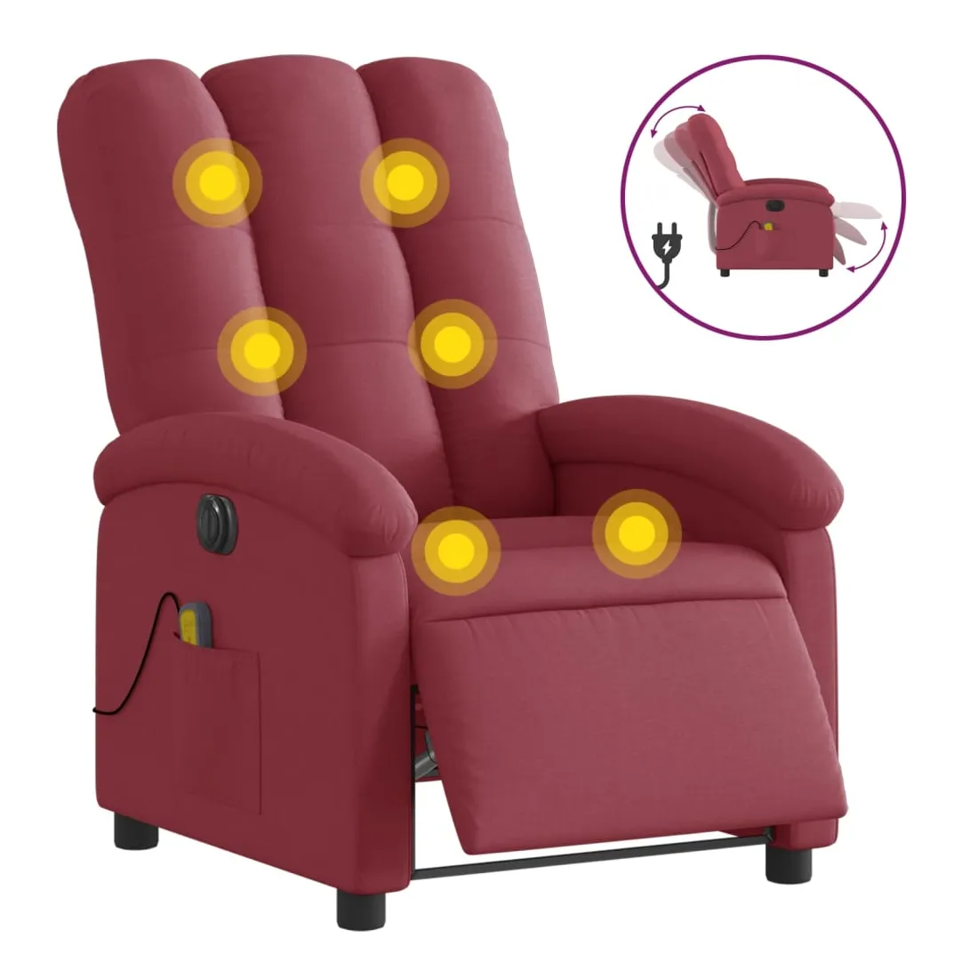 Asseyez-vous et détendez-vous dans ce fauteuil inclinable de massage électrique très confortable ! Fonction d'inclinaison électrique : ce fauteuil inclinable est équipé d'un moteur électrique qui permet de régler automatiquement le repose-pied et le dossier dans n'importe quelle position, selon votre confort, en appuyant simplement sur le bouton situé sur le côté du fauteuil. Cette fonction permet une inclinaison maximale de 135 degrés. En outre, le dossier peut revenir automatiquement à sa position d'origine par une simple pression sur le bouton.Fonction de vibration : les 6 points de massage vous permettent de faire l'expérience d'un massage mieux ciblé. De plus, la télécommande incluse vous permet de choisir différents programmes de massage. La fonction de massage est alimentée par le connecteur USB qui nécessite une source d'alimentation USB certifiée de 5 V (non fournie).Expérience d'assise confortable : le siège, le dossier et les larges accoudoirs bien rembourrés recouverts de tissu procurent une sensation confortable et chaleureuse, vous permettant de vous sentir enveloppé lorsque vous êtes assis. Le tissu présente un aspect simple et épuré et est respirant et durable.Poche latérale pratique : ce fauteuil est doté d'une poche latérale pour ranger votre télécommande ou garder vos objets essentiels à portée de main.Cadre solide et stable : le cadre en bois et en métal offre une structure solide et une grande stabilité. Ce fauteuil inclinable est confortable et durable.