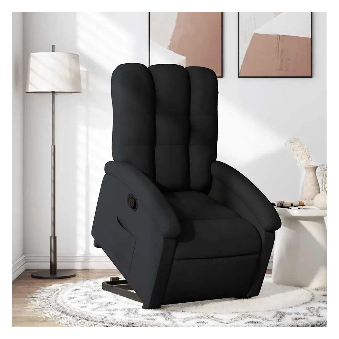 Asseyez-vous et détendez-vous dans ce fauteuil inclinable très confortable ! Fonction de levage électrique : ce fauteuil inclinable pour personnes âgées est équipé d'un moteur électrique pour la fonction de levage. Grâce à la fonction qui pousse toute la chaise vers le haut, vous pouvez facilement vous tenir debout sans stresser votre dos et vos genoux en appuyant simplement sur le bouton.Fonction d'inclinaison manuelle : ce fauteuil inclinable est doté d'une poignée du côté droit. Vous pouvez régler manuellement le repose-pieds et le dossier dans n'importe quelle position selon votre confort en tirant simplement sur la poignée. Cette fonction permet une inclinaison maximale de 135 degrés. De plus, le dossier peut revenir rapidement à sa position d'origine en tirant simplement sur la poignée.Expérience d'assise confortable : le siège, le dossier et les larges accoudoirs bien rembourrés recouverts de tissu procurent une sensation confortable et chaleureuse, vous permettant de vous sentir enveloppé lorsque vous êtes assis. Le tissu présente un aspect simple et épuré et est respirant et durable.Poche latérale pratique : ce fauteuil est doté d'une poche latérale pour vous permettre de garder vos objets essentiels à portée de main.Cadre solide et stable : le cadre en bois et en métal offre une structure solide et une grande stabilité. Ce fauteuil inclinable est confortable et durable.
