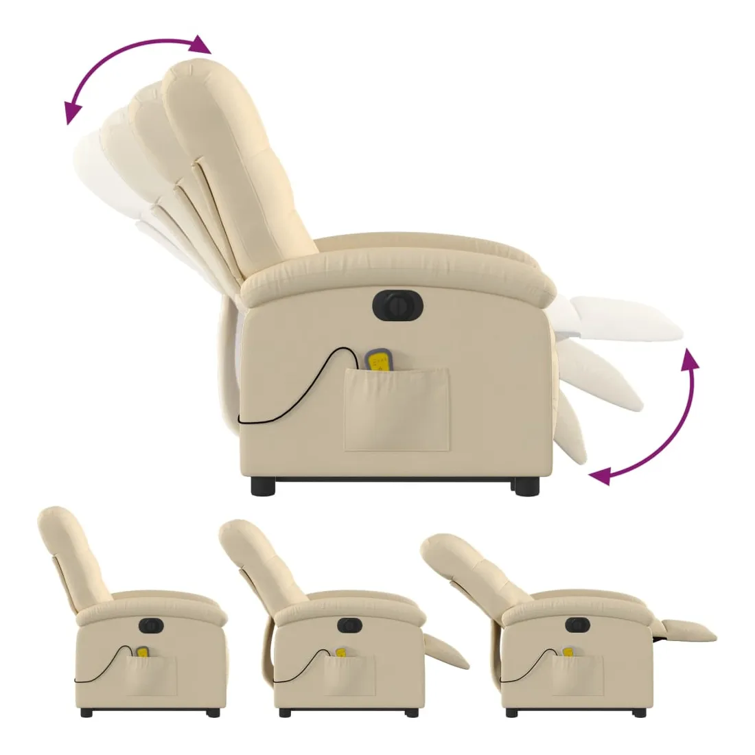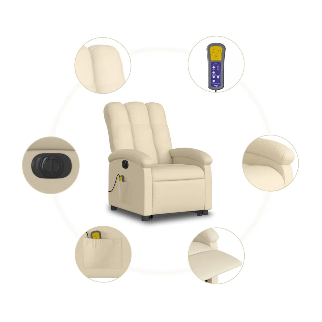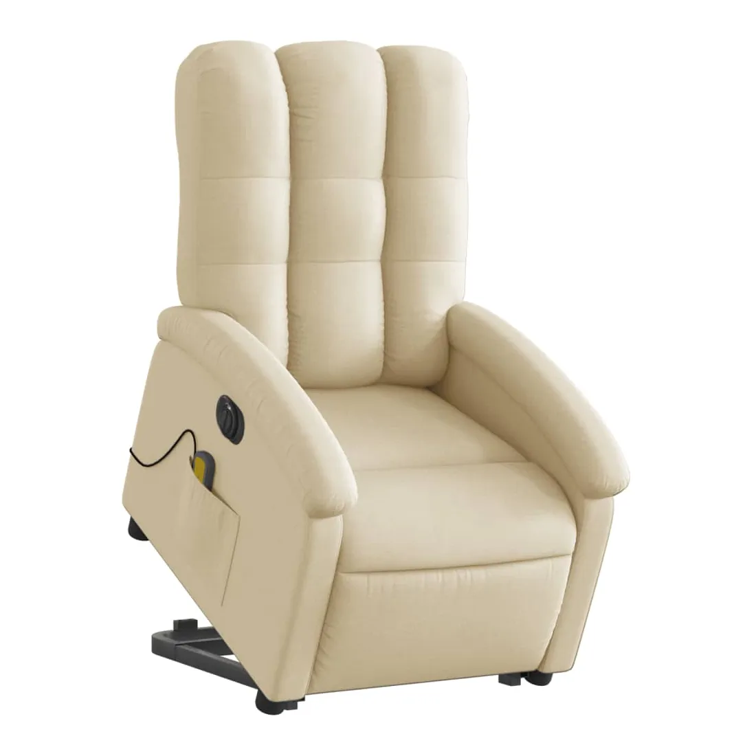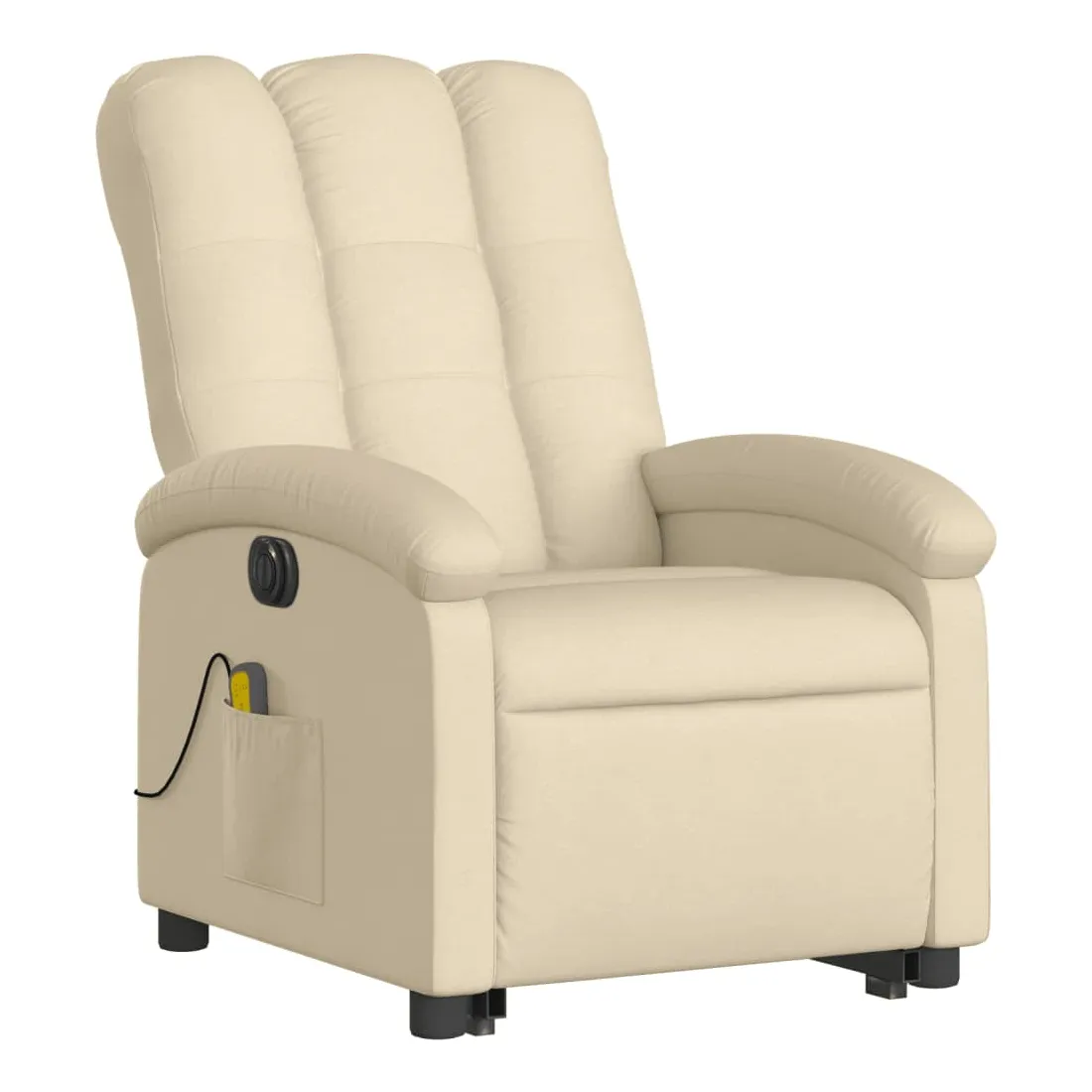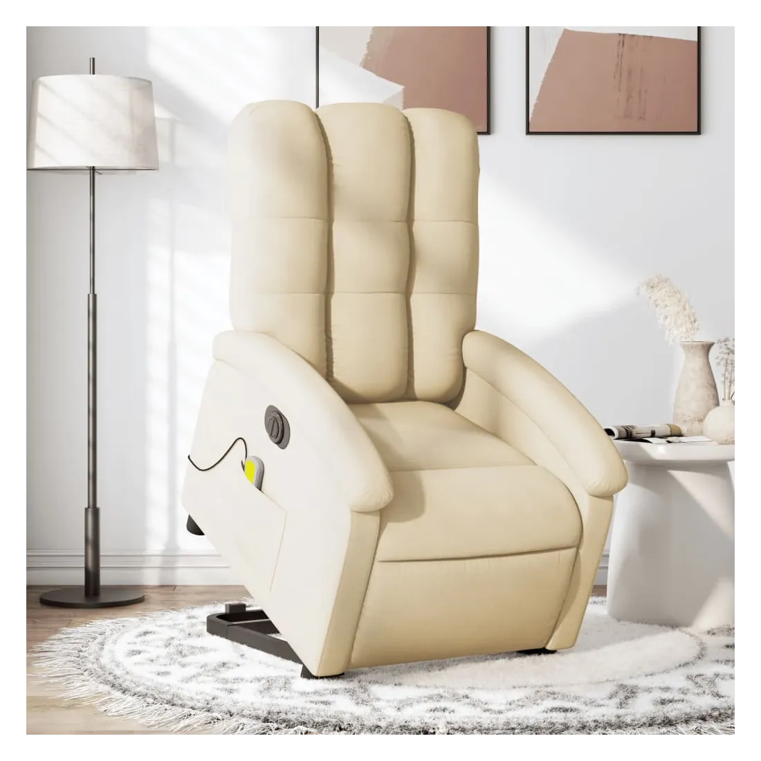 Asseyez-vous et détendez-vous dans ce fauteuil inclinable de massage électrique très confortable ! Fonction de levage électrique : ce fauteuil inclinable pour personnes âgées est équipé d'un moteur électrique pour la fonction de levage. Grâce à la fonction qui pousse toute la chaise vers le haut, vous pouvez facilement vous tenir debout sans stresser votre dos et vos genoux en appuyant simplement sur le bouton.Fonction d'inclinaison électrique : ce fauteuil inclinable est également équipé d'un moteur électrique qui permet de régler automatiquement le repose-pied et le dossier dans n'importe quelle position, selon votre confort, en appuyant simplement sur le bouton situé sur le côté du fauteuil. Cette fonction permet une inclinaison maximale de 135 degrés. En outre, le dossier peut revenir automatiquement à sa position d'origine par une simple pression sur le bouton.Fonction de vibration : les 6 points de massage vous permettent de faire l'expérience d'un massage mieux ciblé. De plus, la télécommande incluse vous permet de choisir différents programmes de massage. La fonction de massage est alimentée par le connecteur USB qui nécessite une source d'alimentation USB certifiée de 5 V (non fournie).Expérience d'assise confortable : le siège, le dossier et les larges accoudoirs bien rembourrés recouverts de tissu procurent une sensation confortable et chaleureuse, vous permettant de vous sentir enveloppé lorsque vous êtes assis. Le tissu présente un aspect simple et épuré et est respirant et durable.Poche latérale pratique : ce fauteuil est doté d'une poche latérale pour ranger votre télécommande ou garder vos objets essentiels à portée de main.Cadre solide et stable : le cadre en bois et en métal offre une structure solide et une grande stabilité. Ce fauteuil inclinable est confortable et durable.