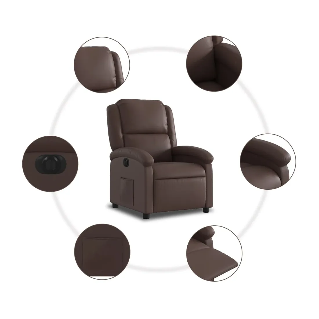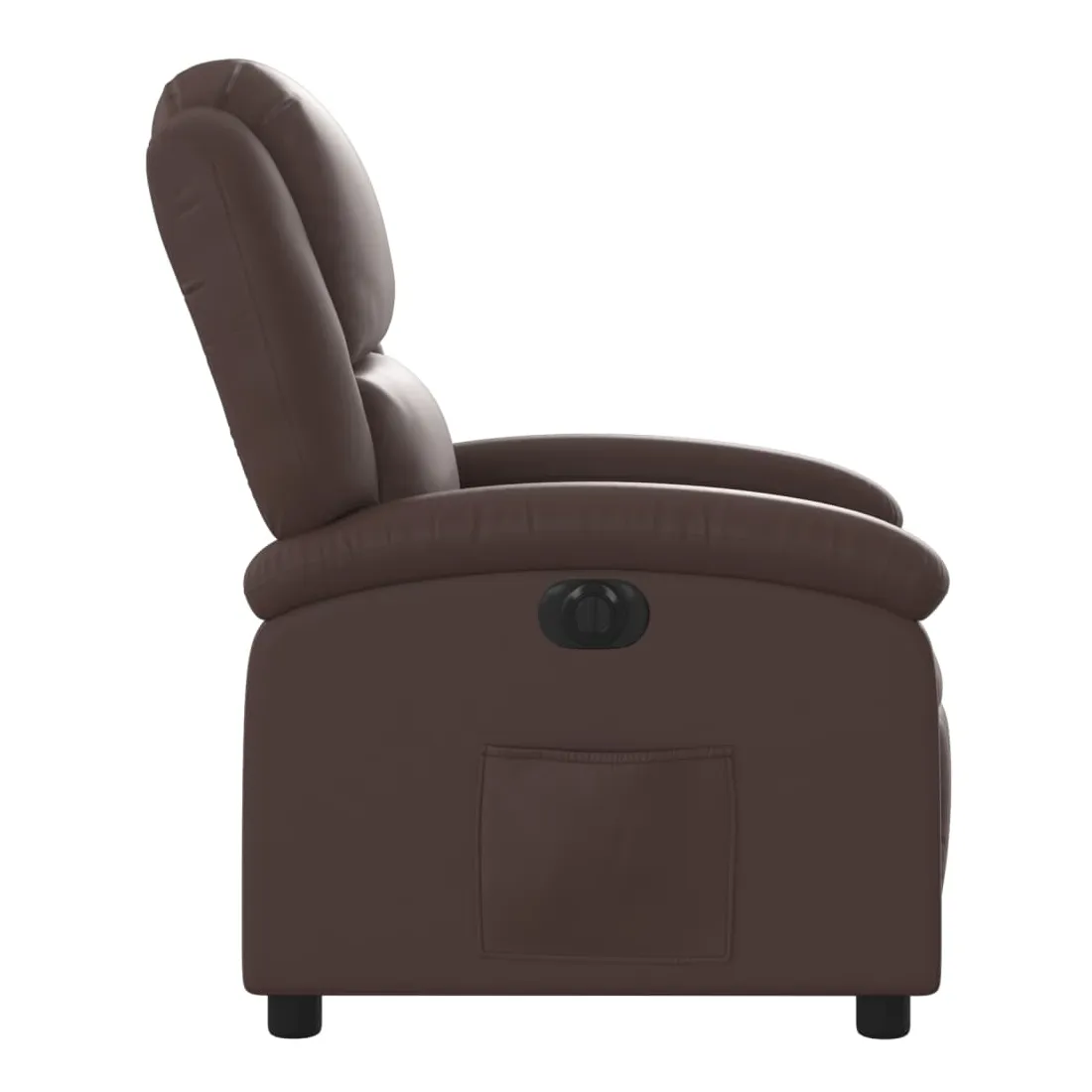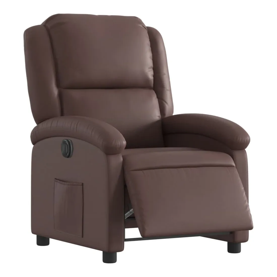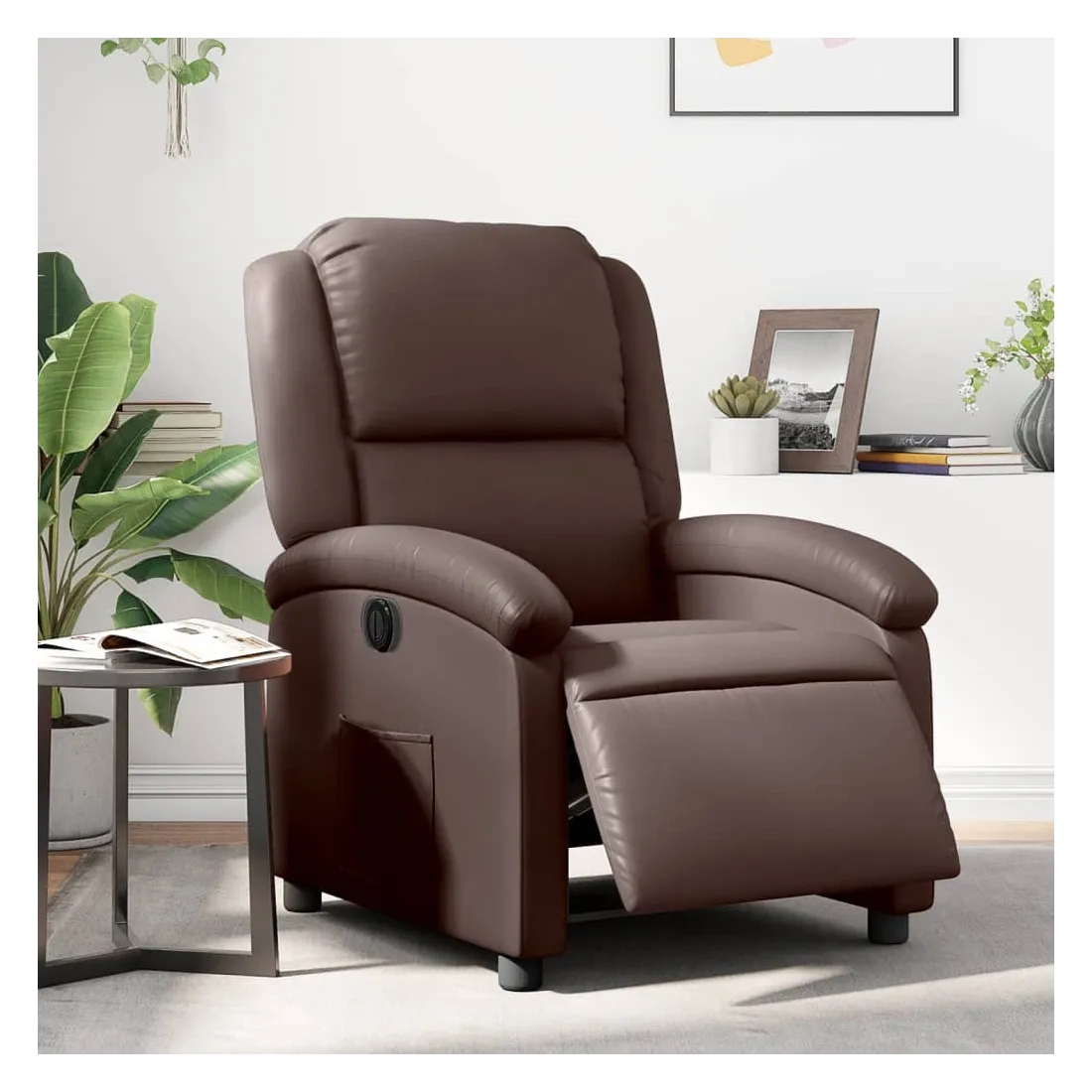 Asseyez-vous et détendez-vous dans ce fauteuil inclinable électrique très confortable ! Fonction d'inclinaison électrique : ce fauteuil inclinable est équipé d'un moteur électrique qui permet de régler automatiquement le repose-pied et le dossier dans n'importe quelle position, selon votre confort, en appuyant simplement sur le bouton situé sur le côté du fauteuil. Cette fonction permet une inclinaison maximale de 135 degrés. En outre, le dossier peut revenir automatiquement à sa position d'origine par une simple pression sur le bouton.Expérience de siège confortable : le siège, le dossier et les larges accoudoirs rembourrés épais recouverts de similicuir procurent une sensation confortable, vous faisant vous sentir enlacé lorsque vous êtes assis. Le similicuir est un matériau très résistant. Il est résistant aux taches, ce qui le rend facile à nettoyer avec un chiffon humide. La surface lisse donne également un aspect luxueux et la beauté du cuir véritable.Poche latérale pratique : ce fauteuil est doté d'une poche latérale pour vous permettre de garder vos objets essentiels à portée de main.Cadre solide et stable : le cadre en bois et en métal offre une structure solide et une grande stabilité. Ce fauteuil inclinable est confortable et durable.