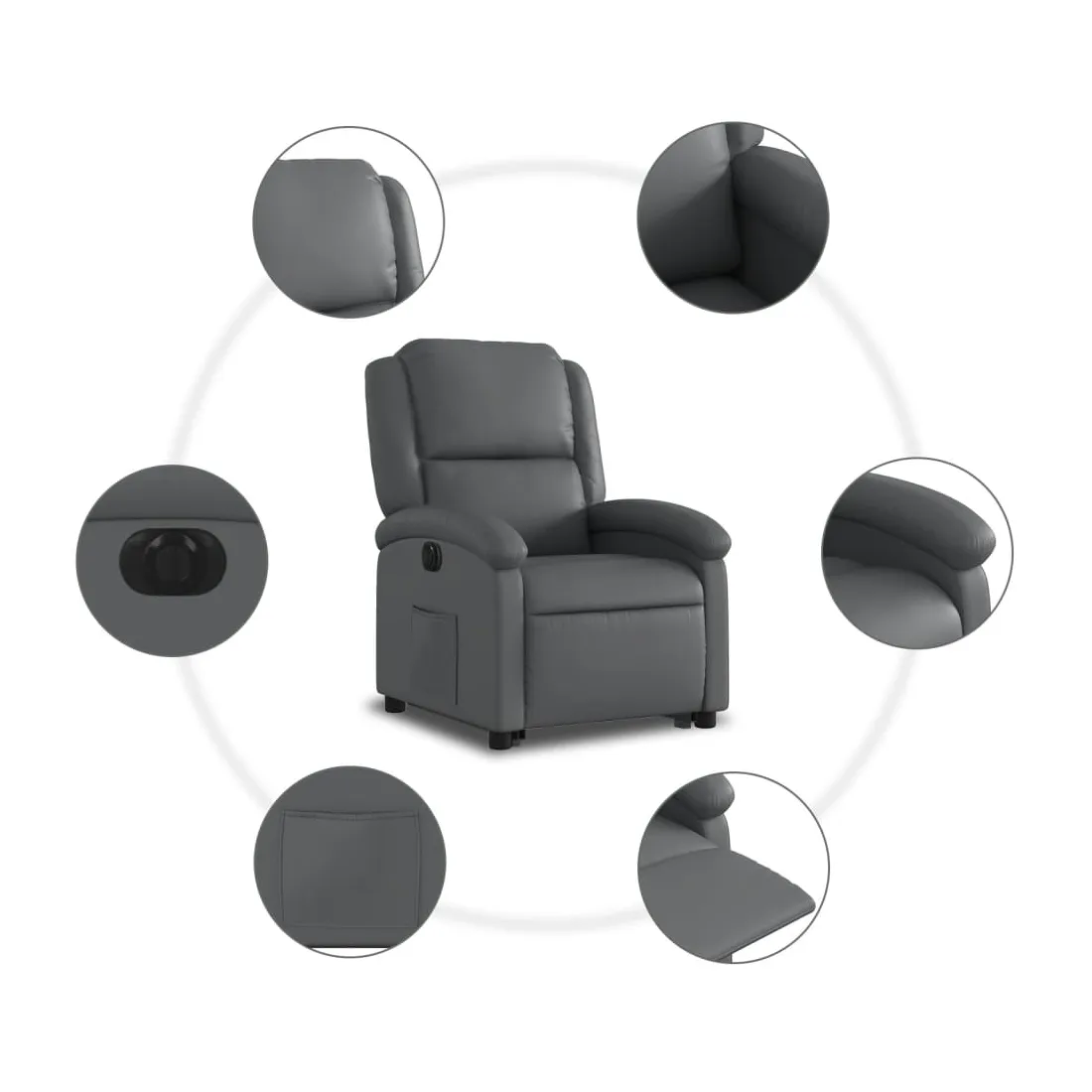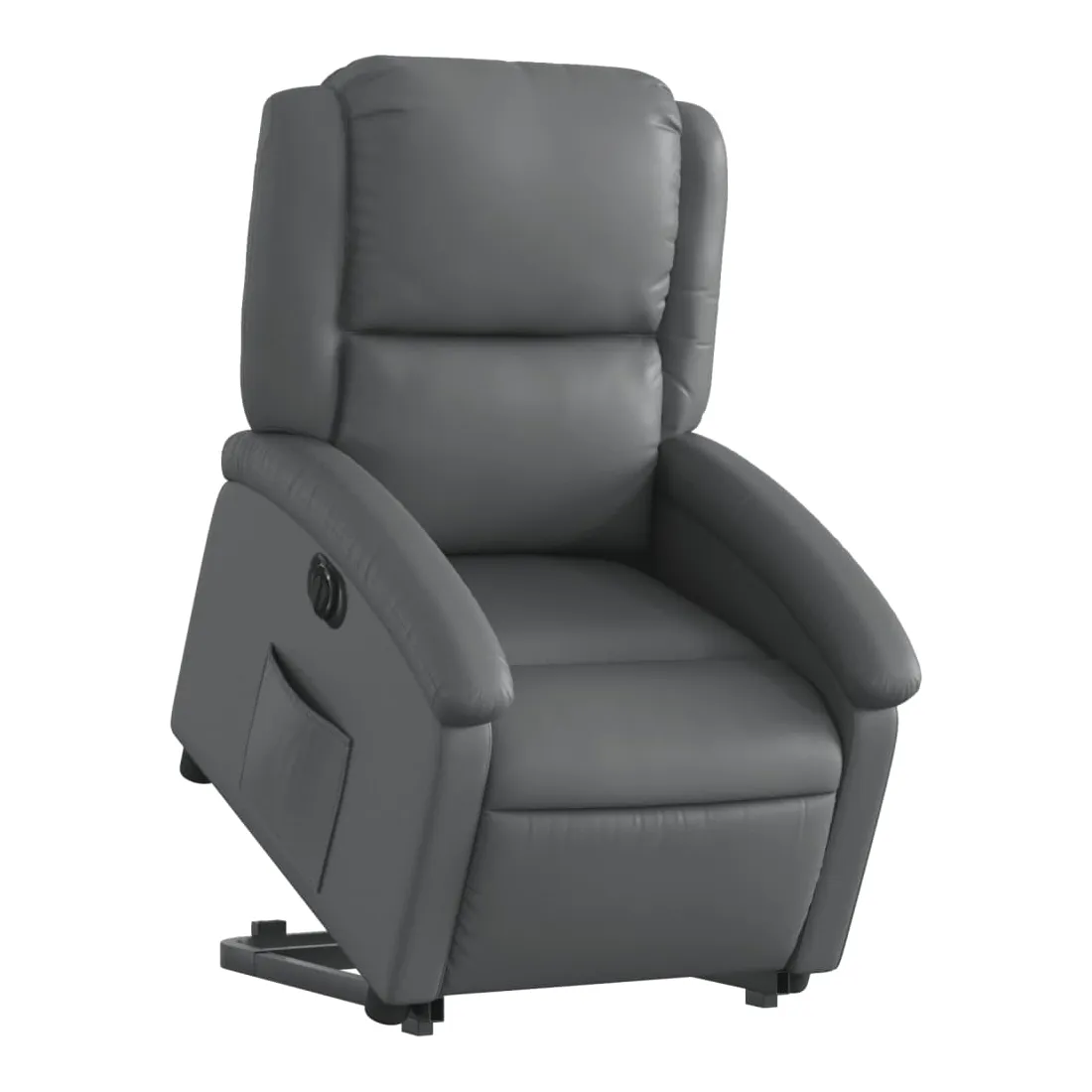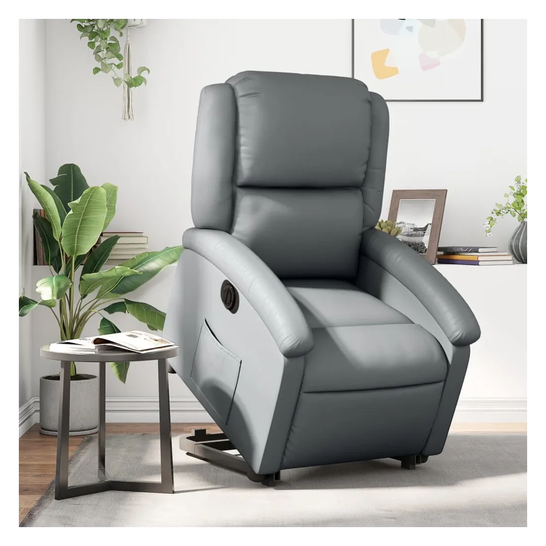 Asseyez-vous et détendez-vous dans ce fauteuil inclinable électrique très confortable ! Fonction de levage électrique : ce fauteuil inclinable pour personnes âgées est équipé d'un moteur électrique pour la fonction de levage. Grâce à la fonction qui pousse toute la chaise vers le haut, vous pouvez facilement vous tenir debout sans stresser votre dos et vos genoux en appuyant simplement sur le bouton.Fonction d'inclinaison électrique : ce fauteuil inclinable est également équipé d'un moteur électrique qui permet de régler automatiquement le repose-pied et le dossier dans n'importe quelle position, selon votre confort, en appuyant simplement sur le bouton situé sur le côté du fauteuil. Cette fonction permet une inclinaison maximale de 135 degrés. En outre, le dossier peut revenir automatiquement à sa position d'origine par une simple pression sur le bouton.Expérience de siège confortable : le siège, le dossier et les larges accoudoirs rembourrés épais recouverts de similicuir procurent une sensation confortable, vous faisant vous sentir enlacé lorsque vous êtes assis. Le similicuir est un matériau très résistant. Il est résistant aux taches, ce qui le rend facile à nettoyer avec un chiffon humide. La surface lisse donne également un aspect luxueux et la beauté du cuir véritable.Poche latérale pratique : ce fauteuil est doté d'une poche latérale pour vous permettre de garder vos objets essentiels à portée de main.Cadre solide et stable : le cadre en bois et en métal offre une structure solide et une grande stabilité. Ce fauteuil inclinable est confortable et durable.