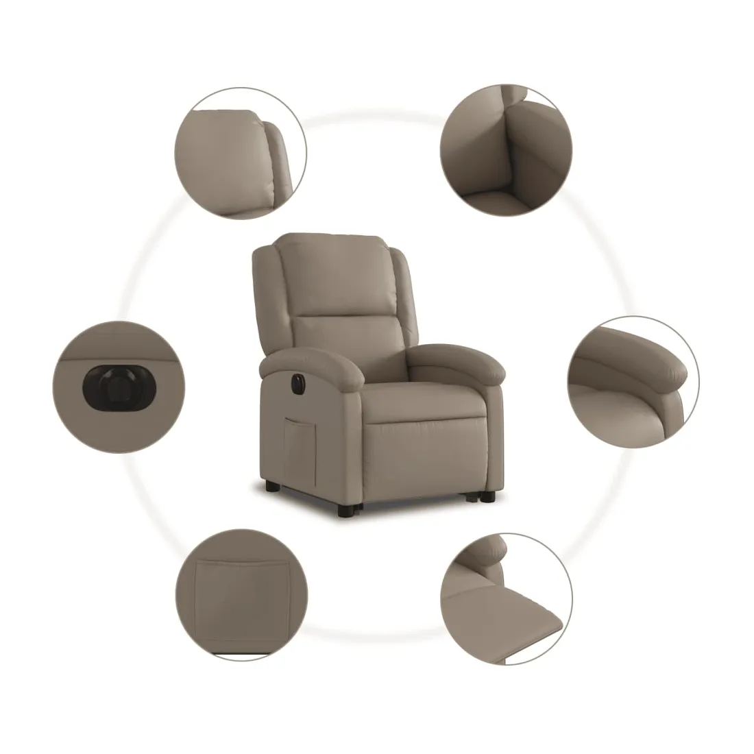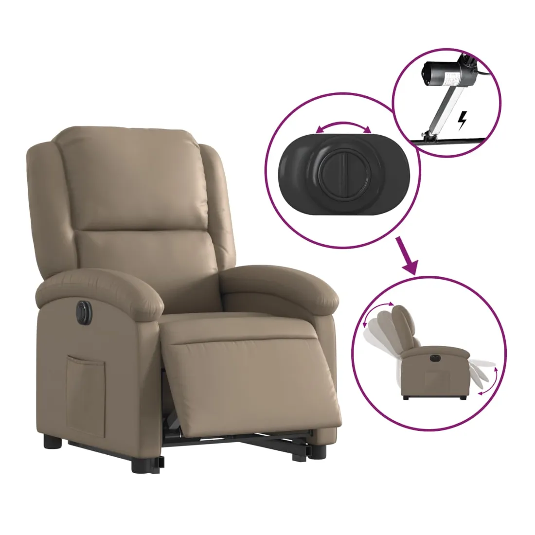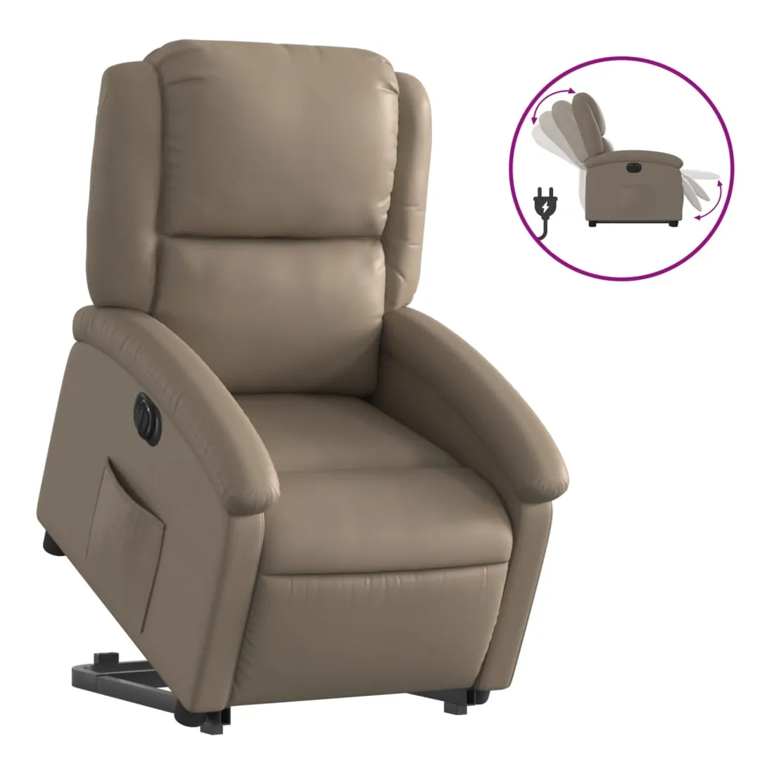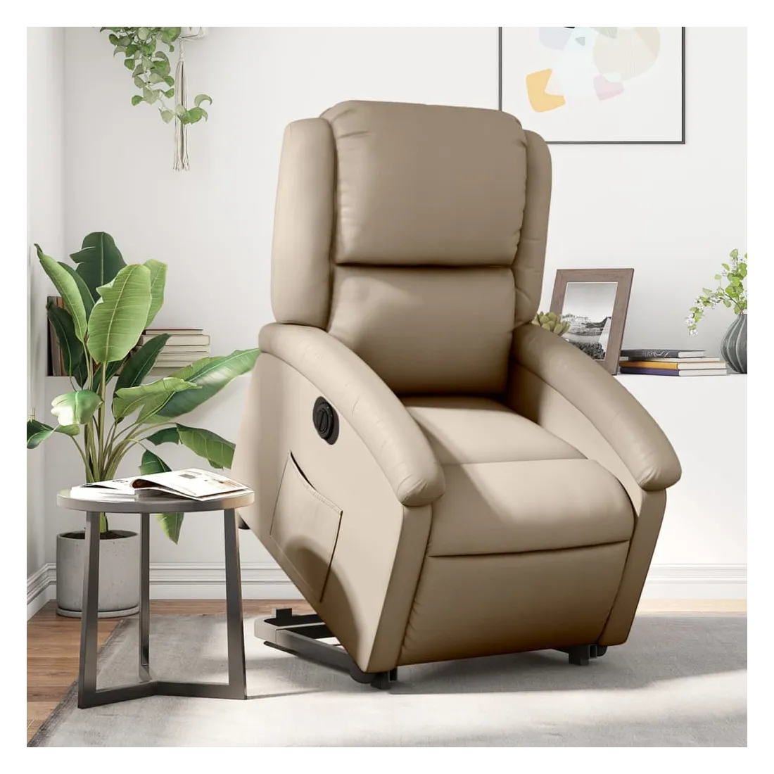 Asseyez-vous et détendez-vous dans ce fauteuil inclinable électrique très confortable ! Fonction de levage électrique : ce fauteuil inclinable pour personnes âgées est équipé d'un moteur électrique pour la fonction de levage. Grâce à la fonction qui pousse toute la chaise vers le haut, vous pouvez facilement vous tenir debout sans stresser votre dos et vos genoux en appuyant simplement sur le bouton.Fonction d'inclinaison électrique : ce fauteuil inclinable est également équipé d'un moteur électrique qui permet de régler automatiquement le repose-pied et le dossier dans n'importe quelle position, selon votre confort, en appuyant simplement sur le bouton situé sur le côté du fauteuil. Cette fonction permet une inclinaison maximale de 135 degrés. En outre, le dossier peut revenir automatiquement à sa position d'origine par une simple pression sur le bouton.Expérience de siège confortable : le siège, le dossier et les larges accoudoirs rembourrés épais recouverts de similicuir procurent une sensation confortable, vous faisant vous sentir enlacé lorsque vous êtes assis. Le similicuir est un matériau très résistant. Il est résistant aux taches, ce qui le rend facile à nettoyer avec un chiffon humide. La surface lisse donne également un aspect luxueux et la beauté du cuir véritable.Poche latérale pratique : ce fauteuil est doté d'une poche latérale pour vous permettre de garder vos objets essentiels à portée de main.Cadre solide et stable : le cadre en bois et en métal offre une structure solide et une grande stabilité. Ce fauteuil inclinable est confortable et durable.