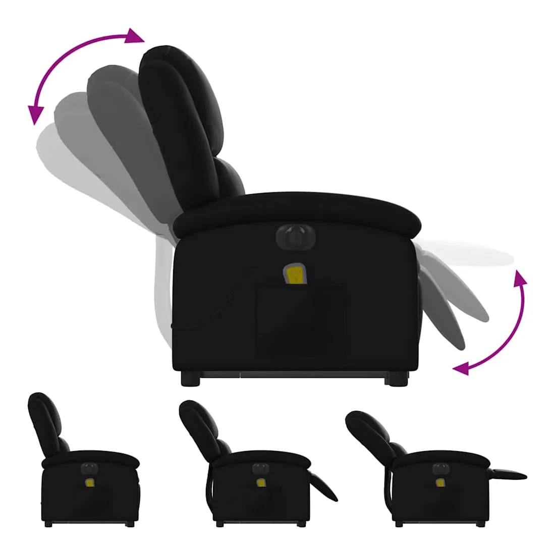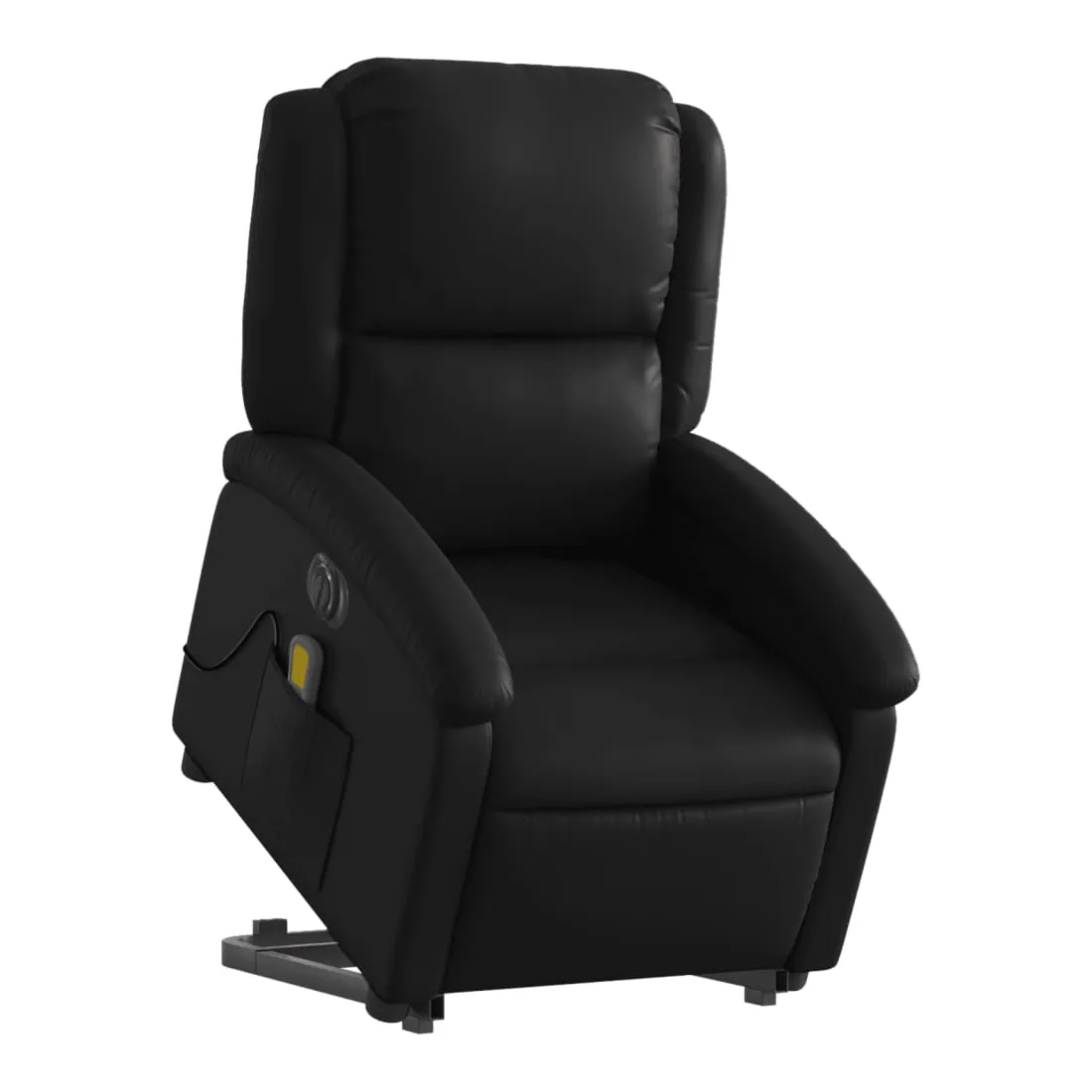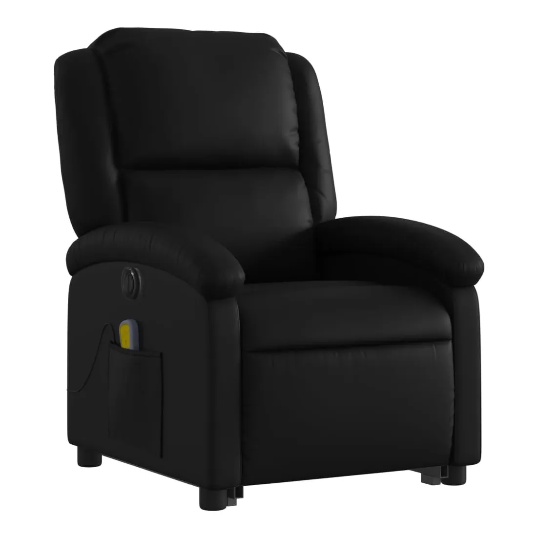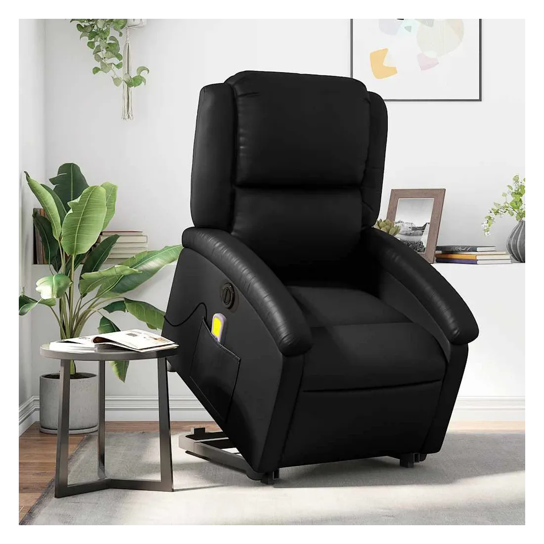 Asseyez-vous et détendez-vous dans ce fauteuil inclinable de massage électrique très confortable ! Fonction de levage électrique : ce fauteuil inclinable pour personnes âgées est équipé d'un moteur électrique pour la fonction de levage. Grâce à la fonction qui pousse toute la chaise vers le haut, vous pouvez facilement vous tenir debout sans stresser votre dos et vos genoux en appuyant simplement sur le bouton.Fonction d'inclinaison électrique : ce fauteuil inclinable est également équipé d'un moteur électrique qui permet de régler automatiquement le repose-pied et le dossier dans n'importe quelle position, selon votre confort, en appuyant simplement sur le bouton situé sur le côté du fauteuil. Cette fonction permet une inclinaison maximale de 135 degrés. En outre, le dossier peut revenir automatiquement à sa position d'origine par une simple pression sur le bouton.Fonction de vibration : les 6 points de massage vous permettent de faire l'expérience d'un massage mieux ciblé. De plus, la télécommande incluse vous permet de choisir différents programmes de massage. La fonction de massage est alimentée par le connecteur USB qui nécessite une source d'alimentation USB certifiée de 5 V (non fournie).Expérience de siège confortable : le siège, le dossier et les larges accoudoirs rembourrés épais recouverts de similicuir procurent une sensation confortable, vous faisant vous sentir enlacé lorsque vous êtes assis. Le similicuir est un matériau très résistant. Il est résistant aux taches, ce qui le rend facile à nettoyer avec un chiffon humide. La surface lisse donne également un aspect luxueux et la beauté du cuir véritable.Poche latérale pratique : ce fauteuil est doté d'une poche latérale pour ranger votre télécommande ou garder vos objets essentiels à portée de main.Cadre solide et stable : le cadre en bois et en métal offre une structure solide et une grande stabilité. Ce fauteuil inclinable est confortable et durable.