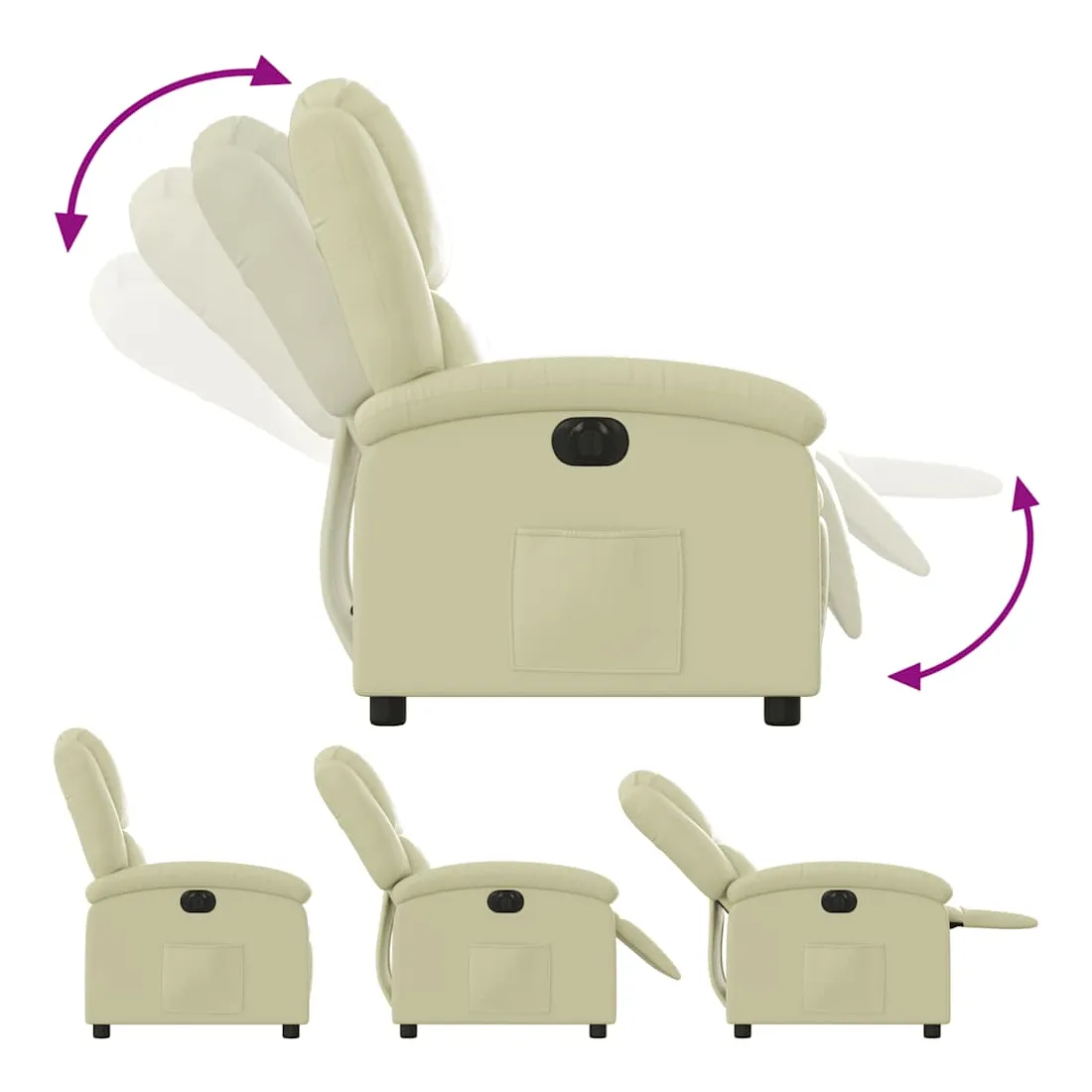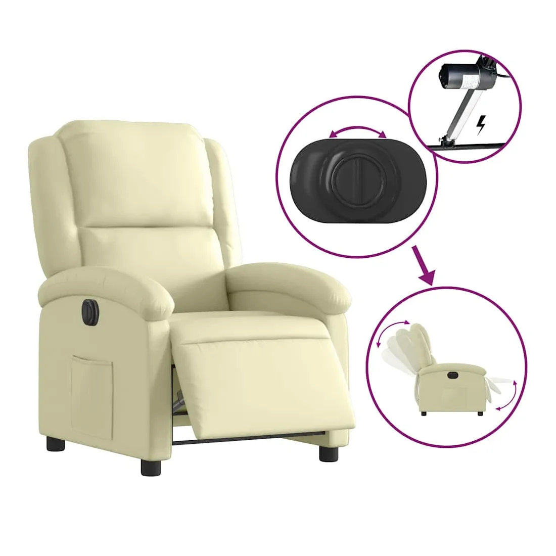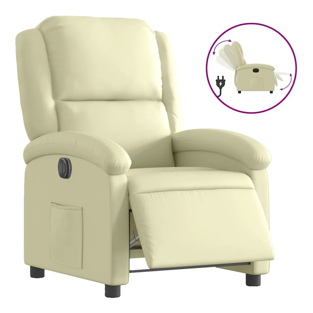 Asseyez-vous et détendez-vous dans ce fauteuil inclinable électrique très confortable ! Fonction d'inclinaison électrique : ce fauteuil inclinable est équipé d'un moteur électrique qui permet de régler automatiquement le repose-pied et le dossier dans n'importe quelle position, selon votre confort, en appuyant simplement sur le bouton situé sur le côté du fauteuil. Cette fonction permet une inclinaison maximale de 135 degrés. En outre, le dossier peut revenir automatiquement à sa position d'origine par une simple pression sur le bouton.Expérience de siège confortable : le siège, le dossier et les larges accoudoirs rembourrés épais recouverts de cuir véritable procurent une sensation confortable et chaleureuse, vous faisant vous sentir enlacé lorsque vous êtes assis. Le cuir véritable est un matériau naturellement intemporel. Il peut durer toute une vie avec des soins et un entretien appropriés. La surface lisse lui donne également un aspect élégant tout en garantissant un confort optimal.Poche latérale pratique : ce fauteuil est doté d'une poche latérale pour vous permettre de garder vos objets essentiels à portée de main.Cadre solide et stable : le cadre en bois et en métal offre une structure solide et une grande stabilité. Ce fauteuil inclinable est confortable et durable.