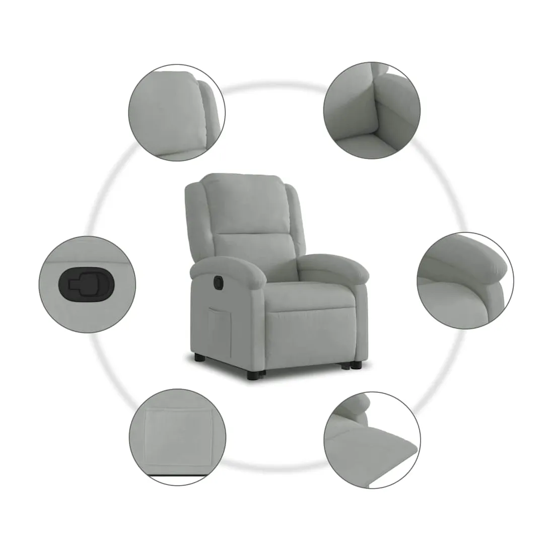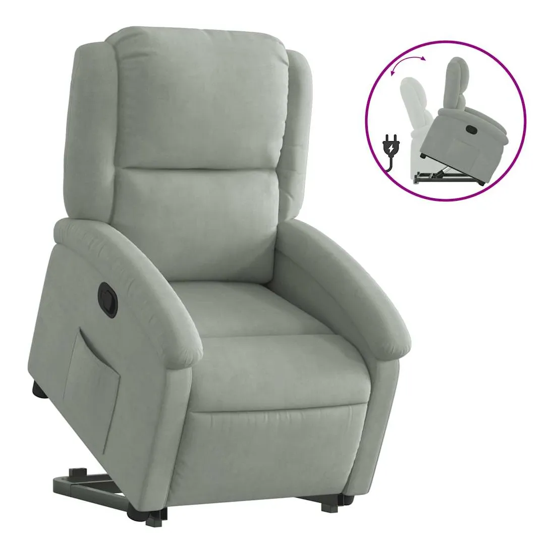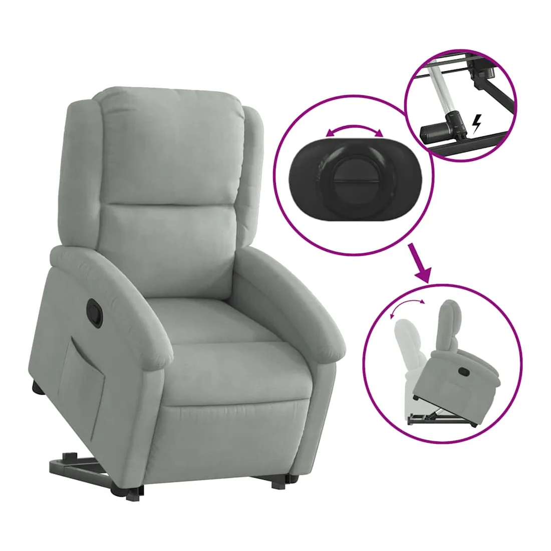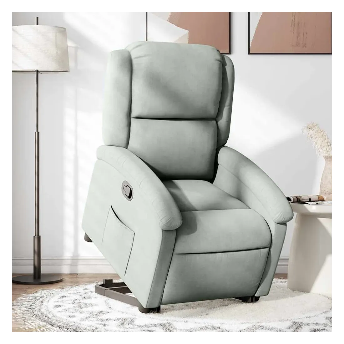 Asseyez-vous et détendez-vous dans ce fauteuil inclinable très confortable ! Fonction de levage électrique : ce fauteuil inclinable pour personnes âgées est équipé d'un moteur électrique pour la fonction de levage. Grâce à la fonction qui pousse toute la chaise vers le haut, vous pouvez facilement vous tenir debout sans stresser votre dos et vos genoux en appuyant simplement sur le bouton.Fonction d'inclinaison manuelle : ce fauteuil inclinable est doté d'une poignée du côté droit. Vous pouvez régler manuellement le repose-pieds et le dossier dans n'importe quelle position selon votre confort en tirant simplement sur la poignée. Cette fonction permet une inclinaison maximale de 135 degrés. De plus, le dossier peut revenir rapidement à sa position d'origine en tirant simplement sur la poignée.Expérience d'assise confortable : le siège, le dossier et les larges accoudoirs rembourrés épais recouverts de velours procurent une sensation confortable et chaleureuse, vous faisant vous sentir enlacé lorsque vous êtes assis. Le velours est un tissu doux et confortable qui est agréable sur la peau.Poche latérale pratique : ce fauteuil est doté d'une poche latérale pour vous permettre de garder vos objets essentiels à portée de main.Cadre solide et stable : le cadre en bois et en métal offre une structure solide et une grande stabilité. Ce fauteuil inclinable est confortable et durable.