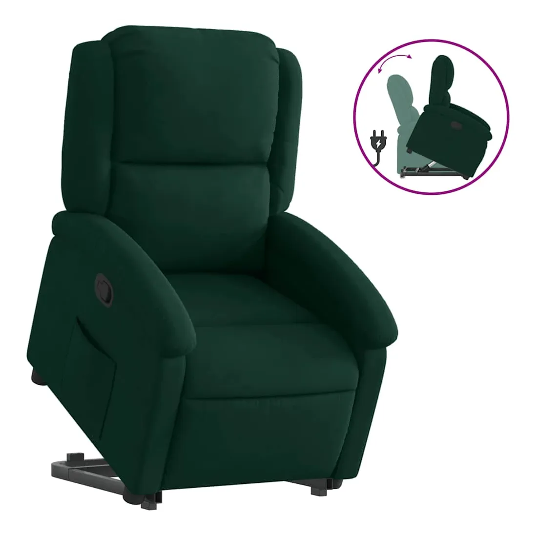Asseyez-vous et détendez-vous dans ce fauteuil inclinable très confortable ! Fonction de levage électrique : ce fauteuil inclinable pour personnes âgées est équipé d'un moteur électrique pour la fonction de levage. Grâce à la fonction qui pousse toute la chaise vers le haut, vous pouvez facilement vous tenir debout sans stresser votre dos et vos genoux en appuyant simplement sur le bouton.Fonction d'inclinaison manuelle : ce fauteuil inclinable est doté d'une poignée du côté droit. Vous pouvez régler manuellement le repose-pieds et le dossier dans n'importe quelle position selon votre confort en tirant simplement sur la poignée. Cette fonction permet une inclinaison maximale de 135 degrés. De plus, le dossier peut revenir rapidement à sa position d'origine en tirant simplement sur la poignée.Expérience d'assise confortable : le siège, le dossier et les larges accoudoirs rembourrés épais recouverts de velours procurent une sensation confortable et chaleureuse, vous faisant vous sentir enlacé lorsque vous êtes assis. Le velours est un tissu doux et confortable qui est agréable sur la peau.Poche latérale pratique : ce fauteuil est doté d'une poche latérale pour vous permettre de garder vos objets essentiels à portée de main.Cadre solide et stable : le cadre en bois et en métal offre une structure solide et une grande stabilité. Ce fauteuil inclinable est confortable et durable.