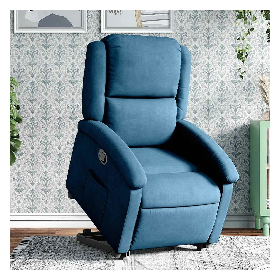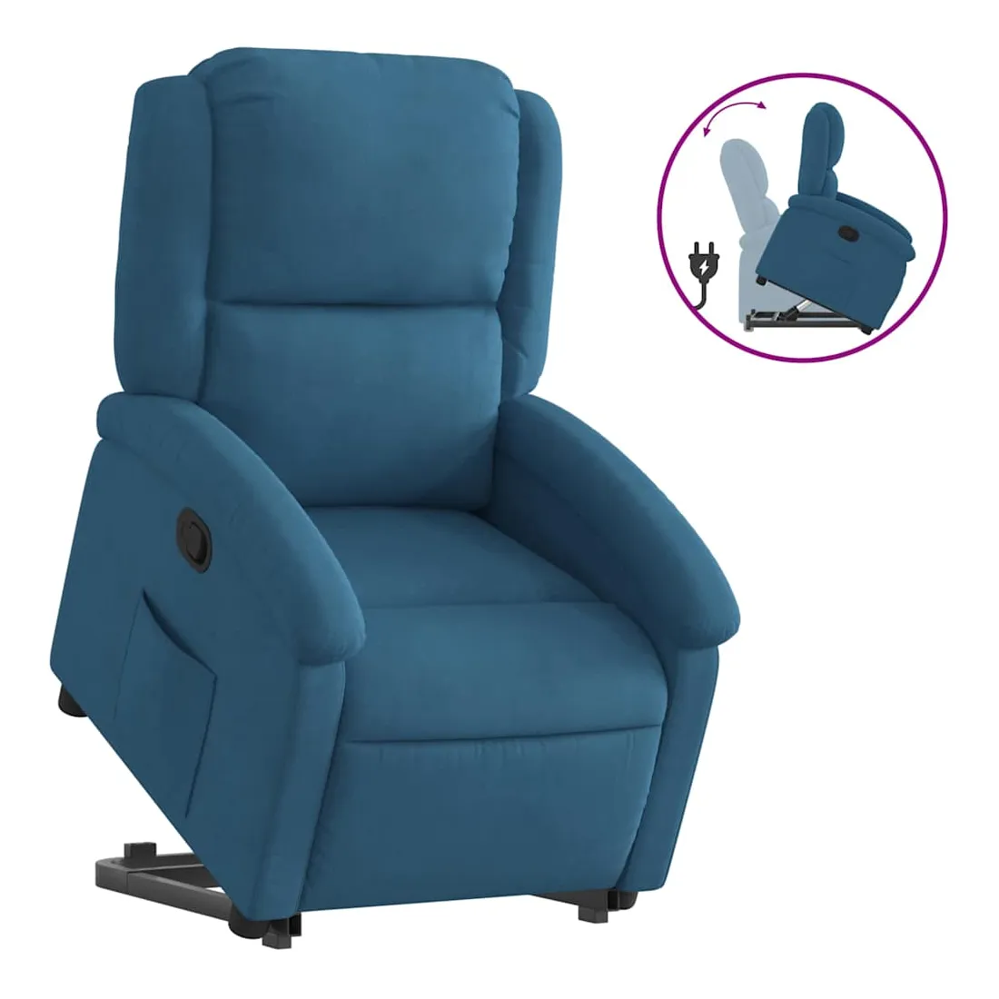 Asseyez-vous et détendez-vous dans ce fauteuil inclinable très confortable ! Fonction de levage électrique : ce fauteuil inclinable pour personnes âgées est équipé d'un moteur électrique pour la fonction de levage. Grâce à la fonction qui pousse toute la chaise vers le haut, vous pouvez facilement vous tenir debout sans stresser votre dos et vos genoux en appuyant simplement sur le bouton.Fonction d'inclinaison manuelle : ce fauteuil inclinable est doté d'une poignée du côté droit. Vous pouvez régler manuellement le repose-pieds et le dossier dans n'importe quelle position selon votre confort en tirant simplement sur la poignée. Cette fonction permet une inclinaison maximale de 135 degrés. De plus, le dossier peut revenir rapidement à sa position d'origine en tirant simplement sur la poignée.Expérience d'assise confortable : le siège, le dossier et les larges accoudoirs rembourrés épais recouverts de velours procurent une sensation confortable et chaleureuse, vous faisant vous sentir enlacé lorsque vous êtes assis. Le velours est un tissu doux et confortable qui est agréable sur la peau.Poche latérale pratique : ce fauteuil est doté d'une poche latérale pour vous permettre de garder vos objets essentiels à portée de main.Cadre solide et stable : le cadre en bois et en métal offre une structure solide et une grande stabilité. Ce fauteuil inclinable est confortable et durable.
