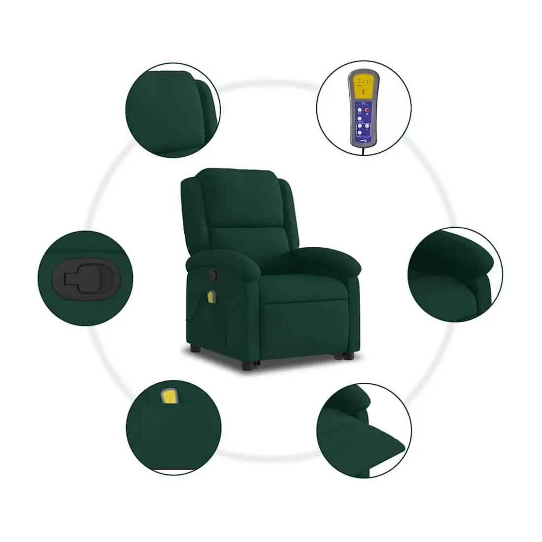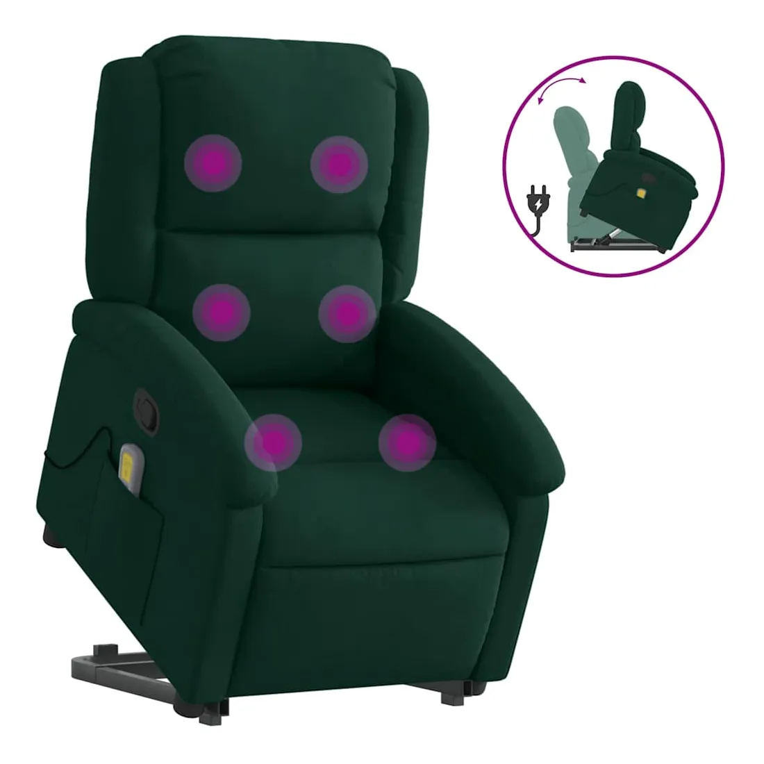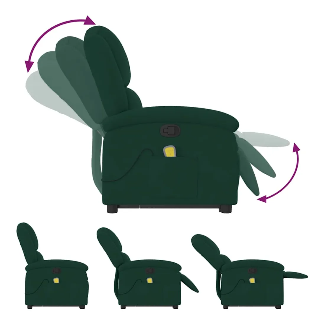 Asseyez-vous et détendez-vous dans ce fauteuil inclinable de massage très confortable ! Fonction de levage électrique : ce fauteuil inclinable pour personnes âgées est équipé d'un moteur électrique pour la fonction de levage. Grâce à la fonction qui pousse toute la chaise vers le haut, vous pouvez facilement vous tenir debout sans stresser votre dos et vos genoux en appuyant simplement sur le bouton.Fonction d'inclinaison manuelle : ce fauteuil inclinable est doté d'une poignée du côté droit. Vous pouvez régler manuellement le repose-pieds et le dossier dans n'importe quelle position selon votre confort en tirant simplement sur la poignée. Cette fonction permet une inclinaison maximale de 135 degrés. De plus, le dossier peut revenir rapidement à sa position d'origine en tirant simplement sur la poignée.Fonction de vibration : les 6 points de massage vous permettent de faire l'expérience d'un massage mieux ciblé. De plus, la télécommande incluse vous permet de choisir différents programmes de massage. La fonction de massage est alimentée par le connecteur USB qui nécessite une source d'alimentation USB certifiée de 5 V (non fournie).Expérience d'assise confortable : le siège, le dossier et les larges accoudoirs rembourrés épais recouverts de velours procurent une sensation confortable et chaleureuse, vous faisant vous sentir enlacé lorsque vous êtes assis. Le velours est un tissu doux et confortable qui est agréable sur la peau.Poche latérale pratique : ce fauteuil est doté d'une poche latérale pour ranger votre télécommande ou garder vos objets essentiels à portée de main.Cadre solide et stable : le cadre en bois et en métal offre une structure solide et une grande stabilité. Ce fauteuil inclinable est confortable et durable.
