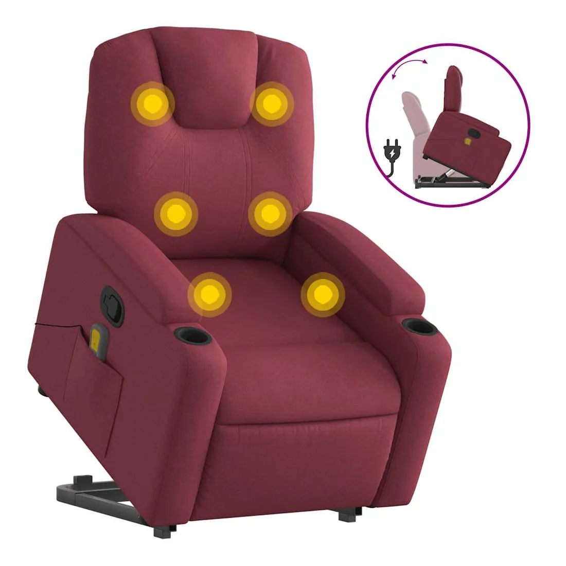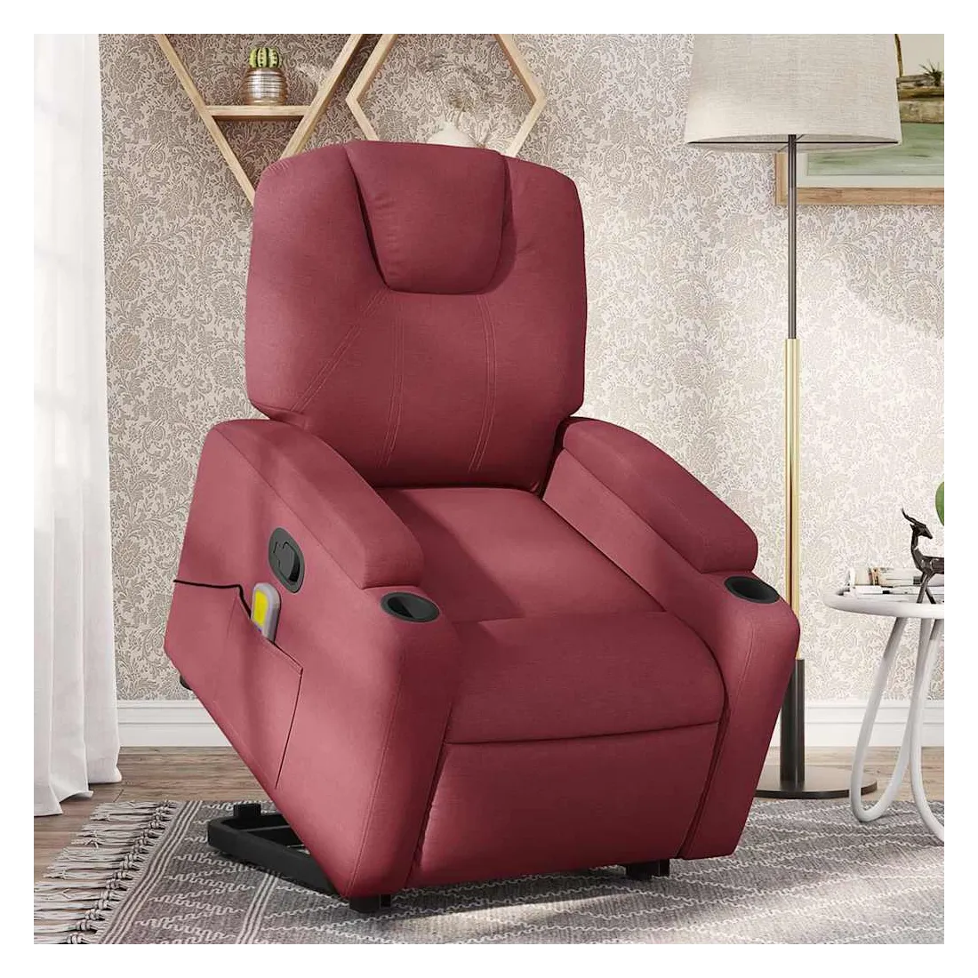 Asseyez-vous et détendez-vous dans ce fauteuil inclinable de massage très confortable ! Fonction de levage électrique : ce fauteuil inclinable pour personnes âgées est équipé d'un moteur électrique pour la fonction de levage. Grâce à la fonction qui pousse toute la chaise vers le haut, vous pouvez facilement vous tenir debout sans stresser votre dos et vos genoux en appuyant simplement sur le bouton.Fonction d'inclinaison manuelle : ce fauteuil inclinable est doté d'une poignée du côté droit. Vous pouvez régler manuellement le repose-pieds et le dossier dans n'importe quelle position selon votre confort en tirant simplement sur la poignée. Cette fonction permet une inclinaison maximale de 135 degrés. De plus, le dossier peut revenir rapidement à sa position d'origine en tirant simplement sur la poignée.Fonction de vibration : les 6 points de massage vous permettent de faire l'expérience d'un massage mieux ciblé. De plus, la télécommande incluse vous permet de choisir différents programmes de massage. La fonction de massage est alimentée par le connecteur USB qui nécessite une source d'alimentation USB certifiée de 5 V (non fournie).Expérience d'assise confortable : le siège, le dossier et les larges accoudoirs bien rembourrés recouverts de tissu procurent une sensation confortable et chaleureuse, vous permettant de vous sentir enveloppé lorsque vous êtes assis. Le tissu présente un aspect simple et épuré et est respirant et durable.Porte-gobelets et poche latérale pratiques : ce fauteuil dispose de deux porte-gobelets pratiques pour vos boissons et d'une poche latérale pour votre télécommande ou pour garder vos objets essentiels à portée de main.Cadre solide et stable : le cadre en bois et en métal offre une structure solide et une grande stabilité. Ce fauteuil inclinable est confortable et durable.