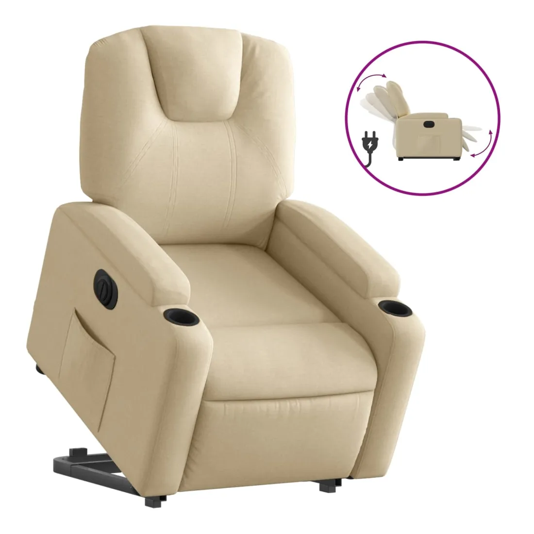 Asseyez-vous et détendez-vous dans ce fauteuil inclinable électrique très confortable ! Fonction de levage électrique : ce fauteuil inclinable pour personnes âgées est équipé d'un moteur électrique pour la fonction de levage. Grâce à la fonction qui pousse toute la chaise vers le haut, vous pouvez facilement vous tenir debout sans stresser votre dos et vos genoux en appuyant simplement sur le bouton.Fonction d'inclinaison électrique : ce fauteuil inclinable est également équipé d'un moteur électrique qui permet de régler automatiquement le repose-pied et le dossier dans n'importe quelle position, selon votre confort, en appuyant simplement sur le bouton situé sur le côté du fauteuil. Cette fonction permet une inclinaison maximale de 135 degrés. En outre, le dossier peut revenir automatiquement à sa position d'origine par une simple pression sur le bouton.Expérience d'assise confortable : le siège, le dossier et les larges accoudoirs bien rembourrés recouverts de tissu procurent une sensation confortable et chaleureuse, vous permettant de vous sentir enveloppé lorsque vous êtes assis. Le tissu présente un aspect simple et épuré et est respirant et durable.Porte-gobelets et poche latérale pratiques : ce fauteuil dispose de deux porte-gobelets pratiques pour vos boissons et d'une poche latérale pour garder vos objets essentiels à portée de main.Cadre solide et stable : le cadre en bois et en métal offre une structure solide et une grande stabilité. Ce fauteuil inclinable est confortable et durable.