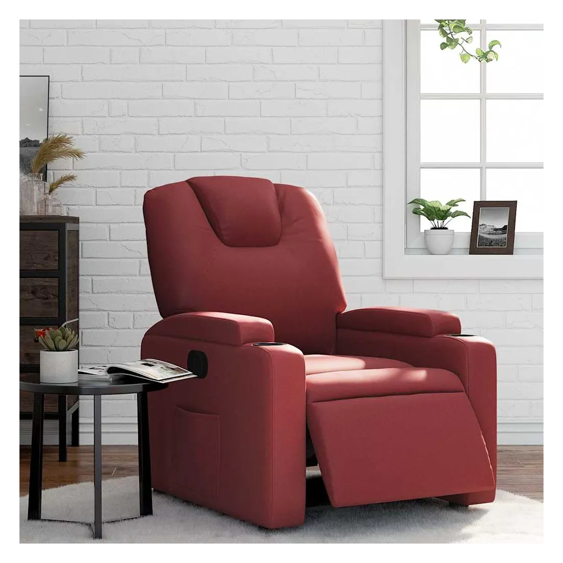 Asseyez-vous et détendez-vous dans ce fauteuil inclinable électrique très confortable ! Fonction d'inclinaison électrique : ce fauteuil inclinable est équipé d'un moteur électrique qui permet de régler automatiquement le repose-pied et le dossier dans n'importe quelle position, selon votre confort, en appuyant simplement sur le bouton situé sur le côté du fauteuil. Cette fonction permet une inclinaison maximale de 135 degrés. En outre, le dossier peut revenir automatiquement à sa position d'origine par une simple pression sur le bouton.Expérience de siège confortable : le siège, le dossier et les larges accoudoirs rembourrés épais recouverts de similicuir procurent une sensation confortable, vous faisant vous sentir enlacé lorsque vous êtes assis. Le similicuir est un matériau très résistant. Il est résistant aux taches, ce qui le rend facile à nettoyer avec un chiffon humide. La surface lisse donne également un aspect luxueux et la beauté du cuir véritable.Porte-gobelets et poche latérale pratiques : ce fauteuil dispose de deux porte-gobelets pratiques pour vos boissons et d'une poche latérale pour garder vos objets essentiels à portée de main.Cadre solide et stable : le cadre en bois et en métal offre une structure solide et une grande stabilité. Ce fauteuil inclinable est confortable et durable.