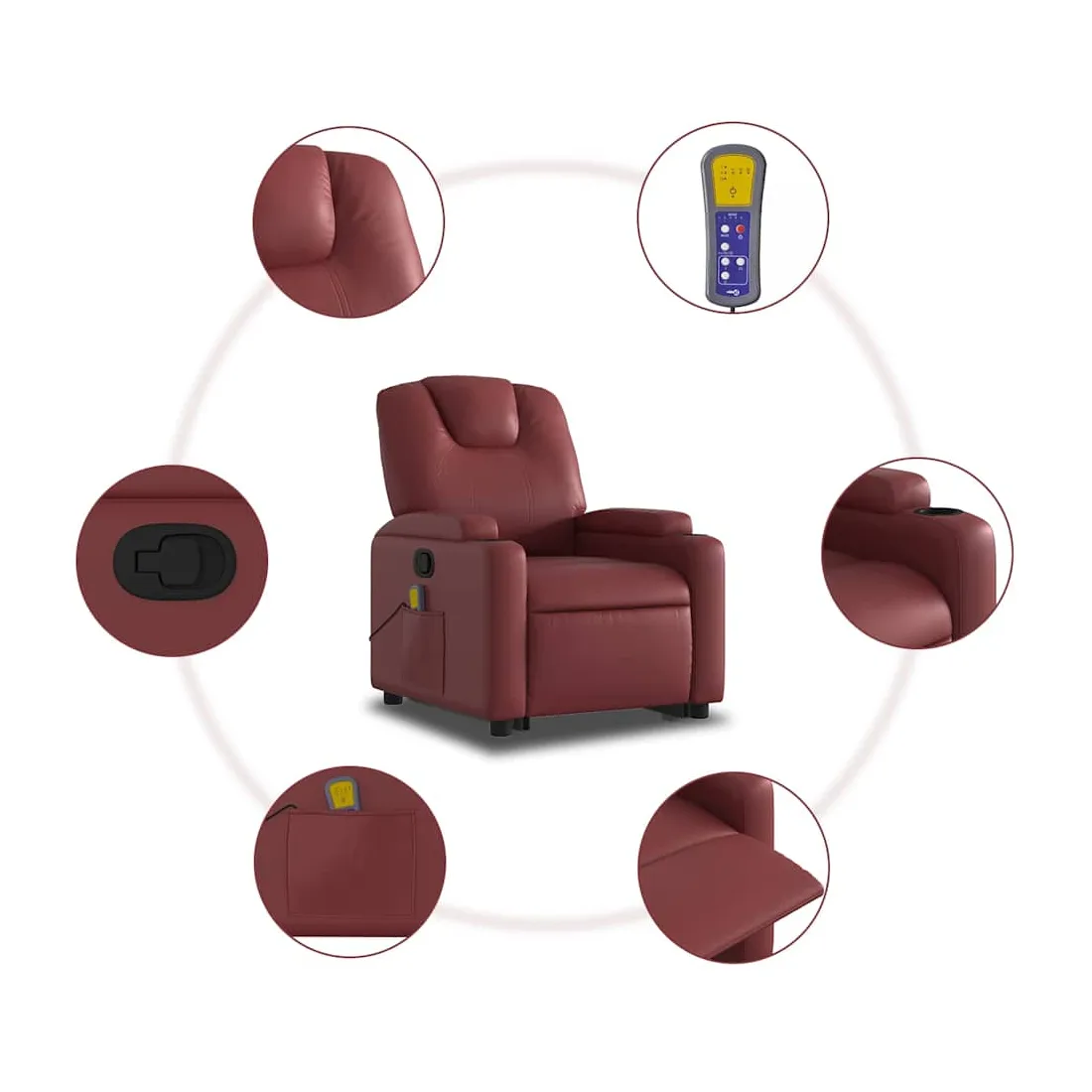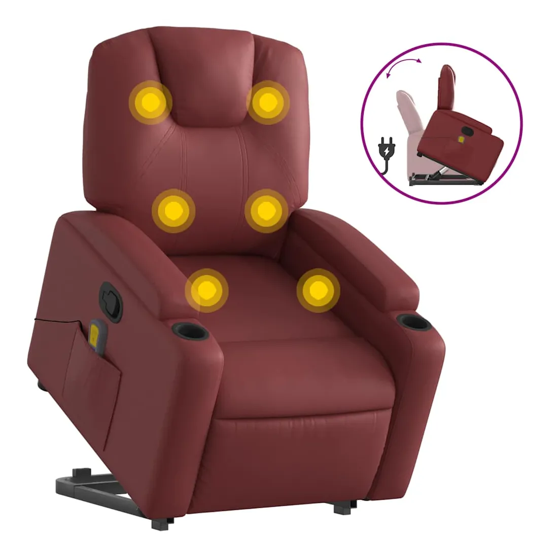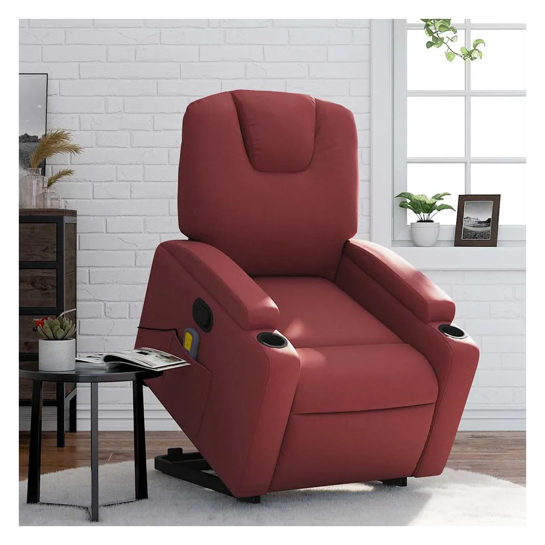 Asseyez-vous et détendez-vous dans ce fauteuil inclinable de massage très confortable ! Fonction de levage électrique : ce fauteuil inclinable pour personnes âgées est équipé d'un moteur électrique pour la fonction de levage. Grâce à la fonction qui pousse toute la chaise vers le haut, vous pouvez facilement vous tenir debout sans stresser votre dos et vos genoux en appuyant simplement sur le bouton.Fonction d'inclinaison manuelle : ce fauteuil inclinable est doté d'une poignée du côté droit. Vous pouvez régler manuellement le repose-pieds et le dossier dans n'importe quelle position selon votre confort en tirant simplement sur la poignée. Cette fonction permet une inclinaison maximale de 135 degrés. De plus, le dossier peut revenir rapidement à sa position d'origine en tirant simplement sur la poignée.Fonction de vibration : les 6 points de massage vous permettent de faire l'expérience d'un massage mieux ciblé. De plus, la télécommande incluse vous permet de choisir différents programmes de massage. La fonction de massage est alimentée par le connecteur USB qui nécessite une source d'alimentation USB certifiée de 5 V (non fournie).Expérience de siège confortable : le siège, le dossier et les larges accoudoirs rembourrés épais recouverts de similicuir procurent une sensation confortable, vous faisant vous sentir enlacé lorsque vous êtes assis. Le similicuir est un matériau très résistant. Il est résistant aux taches, ce qui le rend facile à nettoyer avec un chiffon humide. La surface lisse donne également un aspect luxueux et la beauté du cuir véritable.Porte-gobelets et poche latérale pratiques : ce fauteuil dispose de deux porte-gobelets pratiques pour vos boissons et d'une poche latérale pour votre télécommande ou pour garder vos objets essentiels à portée de main.Cadre solide et stable : le cadre en bois et en métal offre une structure solide et une grande stabilité. Ce fauteuil inclinable est confortable et durable.