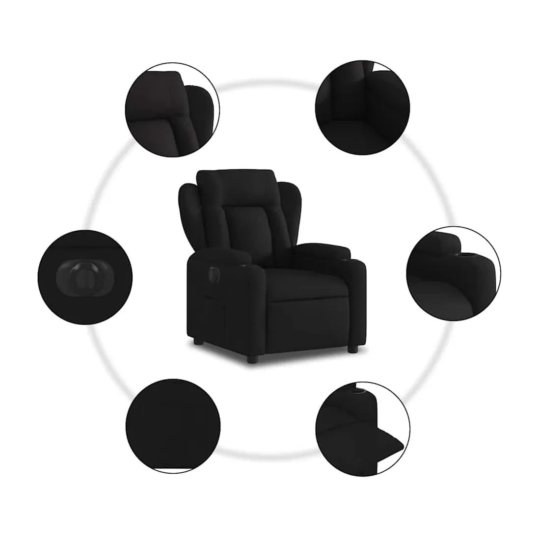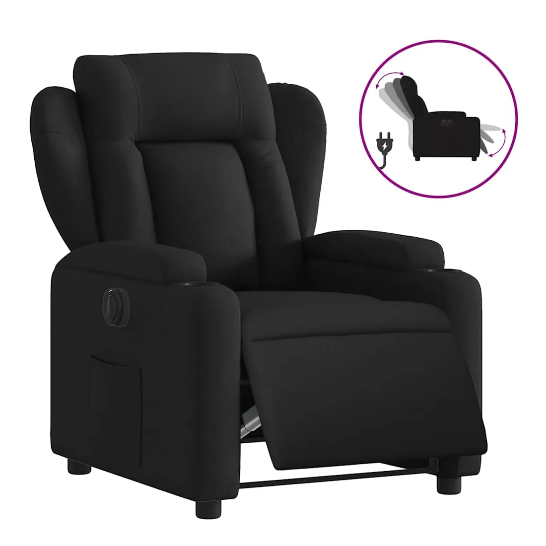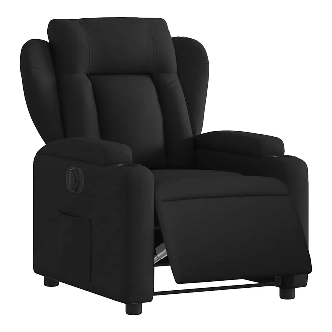 Asseyez-vous et détendez-vous dans ce fauteuil inclinable électrique très confortable ! Fonction d'inclinaison électrique : ce fauteuil inclinable est équipé d'un moteur électrique qui permet de régler automatiquement le repose-pied et le dossier dans n'importe quelle position, selon votre confort, en appuyant simplement sur le bouton situé sur le côté du fauteuil. Cette fonction permet une inclinaison maximale de 135 degrés. En outre, le dossier peut revenir automatiquement à sa position d'origine par une simple pression sur le bouton.Expérience d'assise confortable : le siège, le dossier et les larges accoudoirs bien rembourrés recouverts de tissu procurent une sensation confortable et chaleureuse, vous permettant de vous sentir enveloppé lorsque vous êtes assis. Le tissu présente un aspect simple et épuré et est respirant et durable.Porte-gobelets et poche latérale pratiques : ce fauteuil dispose de deux porte-gobelets pratiques pour vos boissons et d'une poche latérale pour garder vos objets essentiels à portée de main.Cadre solide et stable : le cadre en bois et en métal offre une structure solide et une grande stabilité. Ce fauteuil inclinable est confortable et durable.