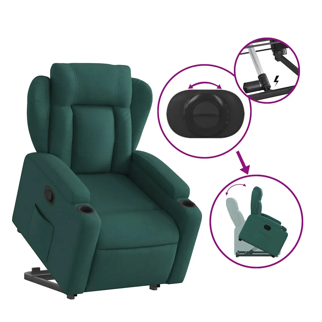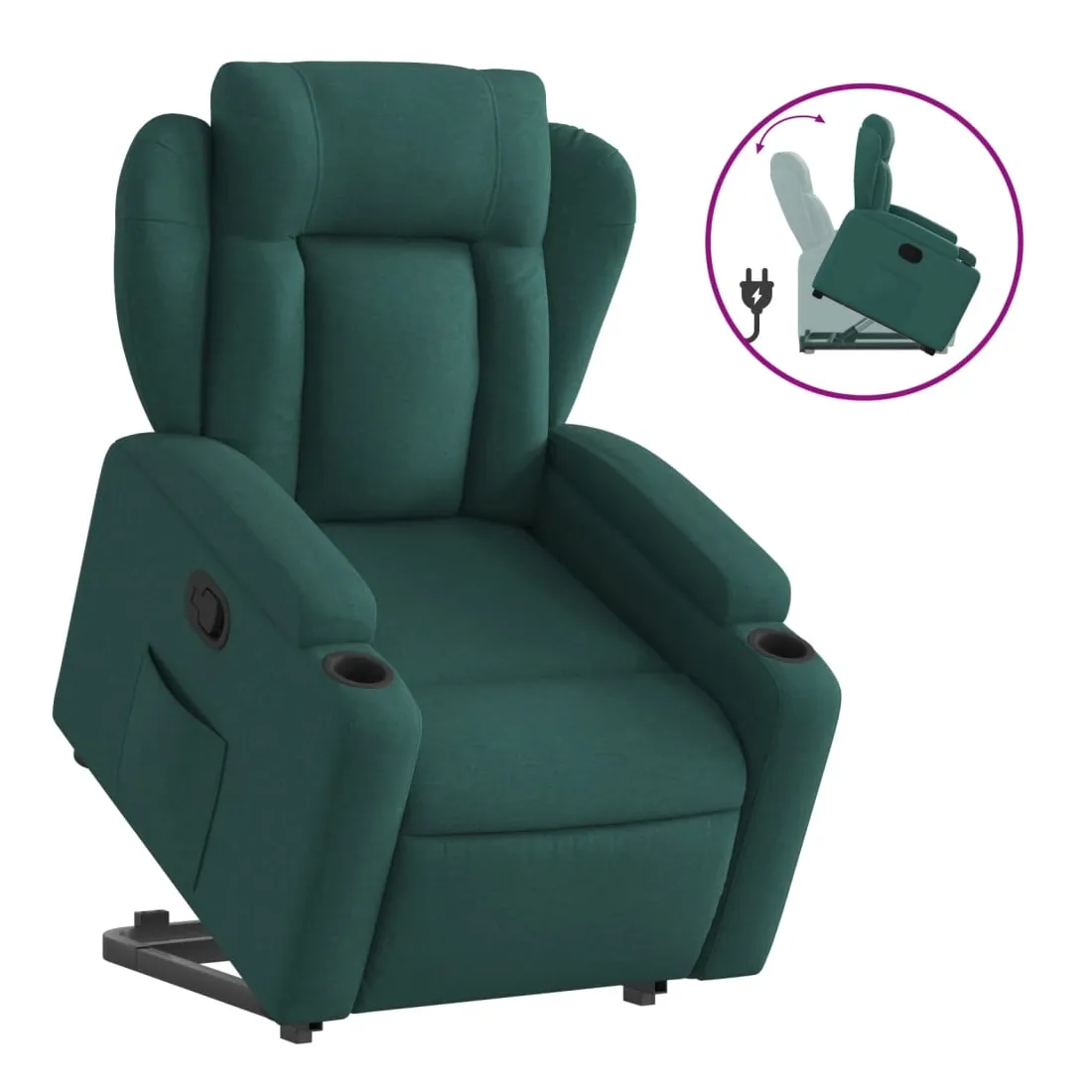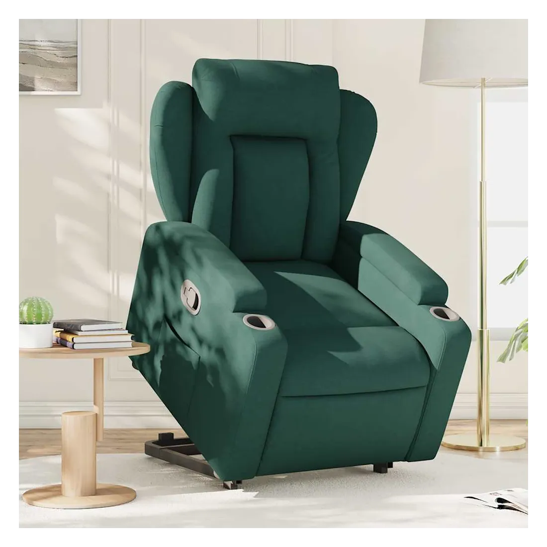 Asseyez-vous et détendez-vous dans ce fauteuil inclinable très confortable ! Fonction de levage électrique : ce fauteuil inclinable pour personnes âgées est équipé d'un moteur électrique pour la fonction de levage. Grâce à la fonction qui pousse toute la chaise vers le haut, vous pouvez facilement vous tenir debout sans stresser votre dos et vos genoux en appuyant simplement sur le bouton.Fonction d'inclinaison manuelle : ce fauteuil inclinable est doté d'une poignée du côté droit. Vous pouvez régler manuellement le repose-pieds et le dossier dans n'importe quelle position selon votre confort en tirant simplement sur la poignée. Cette fonction permet une inclinaison maximale de 135 degrés. De plus, le dossier peut revenir rapidement à sa position d'origine en tirant simplement sur la poignée.Expérience d'assise confortable : le siège, le dossier et les larges accoudoirs bien rembourrés recouverts de tissu procurent une sensation confortable et chaleureuse, vous permettant de vous sentir enveloppé lorsque vous êtes assis. Le tissu présente un aspect simple et épuré et est respirant et durable.Porte-gobelets et poche latérale pratiques : ce fauteuil dispose de deux porte-gobelets pratiques pour vos boissons et d'une poche latérale pour garder vos objets essentiels à portée de main.Cadre solide et stable : le cadre en bois et en métal offre une structure solide et une grande stabilité. Ce fauteuil inclinable est confortable et durable.