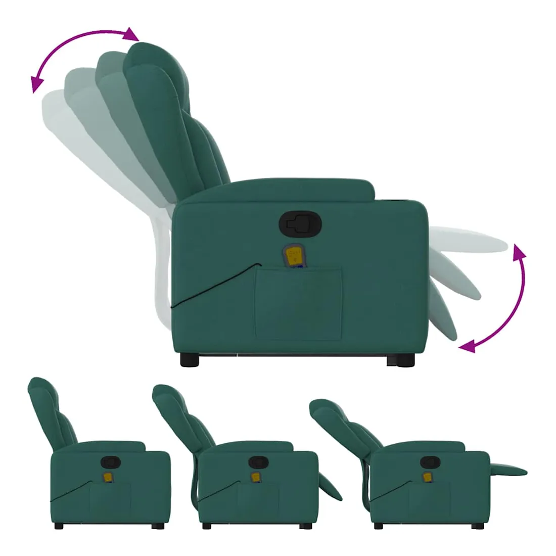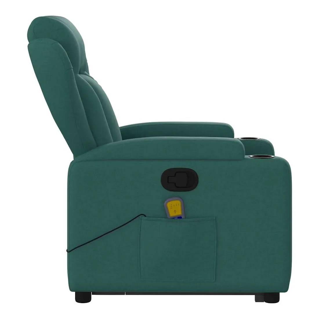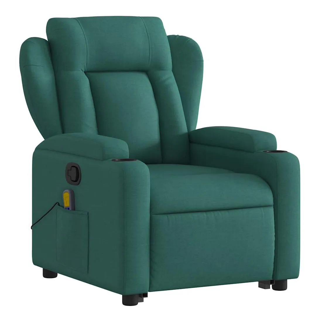 Asseyez-vous et détendez-vous dans ce fauteuil inclinable de massage très confortable ! Fonction de levage électrique : ce fauteuil inclinable pour personnes âgées est équipé d'un moteur électrique pour la fonction de levage. Grâce à la fonction qui pousse toute la chaise vers le haut, vous pouvez facilement vous tenir debout sans stresser votre dos et vos genoux en appuyant simplement sur le bouton.Fonction d'inclinaison manuelle : ce fauteuil inclinable est doté d'une poignée du côté droit. Vous pouvez régler manuellement le repose-pieds et le dossier dans n'importe quelle position selon votre confort en tirant simplement sur la poignée. Cette fonction permet une inclinaison maximale de 135 degrés. De plus, le dossier peut revenir rapidement à sa position d'origine en tirant simplement sur la poignée.Fonction de vibration : les 6 points de massage vous permettent de faire l'expérience d'un massage mieux ciblé. De plus, la télécommande incluse vous permet de choisir différents programmes de massage. La fonction de massage est alimentée par le connecteur USB qui nécessite une source d'alimentation USB certifiée de 5 V (non fournie).Expérience d'assise confortable : le siège, le dossier et les larges accoudoirs bien rembourrés recouverts de tissu procurent une sensation confortable et chaleureuse, vous permettant de vous sentir enveloppé lorsque vous êtes assis. Le tissu présente un aspect simple et épuré et est respirant et durable.Porte-gobelets et poche latérale pratiques : ce fauteuil dispose de deux porte-gobelets pratiques pour vos boissons et d'une poche latérale pour garder vos objets essentiels à portée de main.Cadre solide et stable : le cadre en bois et en métal offre une structure solide et une grande stabilité. Ce fauteuil inclinable est confortable et durable.