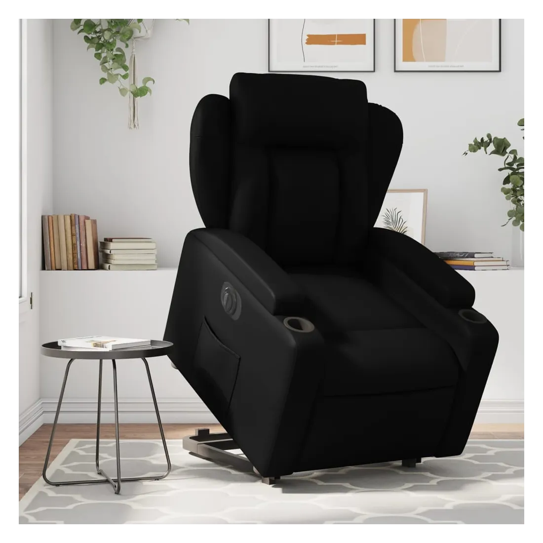 Asseyez-vous et détendez-vous dans ce fauteuil inclinable électrique très confortable ! Fonction de levage électrique : ce fauteuil inclinable pour personnes âgées est équipé d'un moteur électrique pour la fonction de levage. Grâce à la fonction qui pousse toute la chaise vers le haut, vous pouvez facilement vous tenir debout sans stresser votre dos et vos genoux en appuyant simplement sur le bouton.Fonction d'inclinaison électrique : ce fauteuil inclinable est également équipé d'un moteur électrique qui permet de régler automatiquement le repose-pied et le dossier dans n'importe quelle position, selon votre confort, en appuyant simplement sur le bouton situé sur le côté du fauteuil. Cette fonction permet une inclinaison maximale de 135 degrés. En outre, le dossier peut revenir automatiquement à sa position d'origine par une simple pression sur le bouton.Expérience de siège confortable : le siège, le dossier et les larges accoudoirs rembourrés épais recouverts de similicuir procurent une sensation confortable, vous faisant vous sentir enlacé lorsque vous êtes assis. Le similicuir est un matériau très résistant. Il est résistant aux taches, ce qui le rend facile à nettoyer avec un chiffon humide. La surface lisse donne également un aspect luxueux et la beauté du cuir véritable.Porte-gobelets et poche latérale pratiques : ce fauteuil dispose de deux porte-gobelets pratiques pour vos boissons et d'une poche latérale pour garder vos objets essentiels à portée de main.Cadre solide et stable : le cadre en bois et en métal offre une structure solide et une grande stabilité. Ce fauteuil inclinable est confortable et durable.