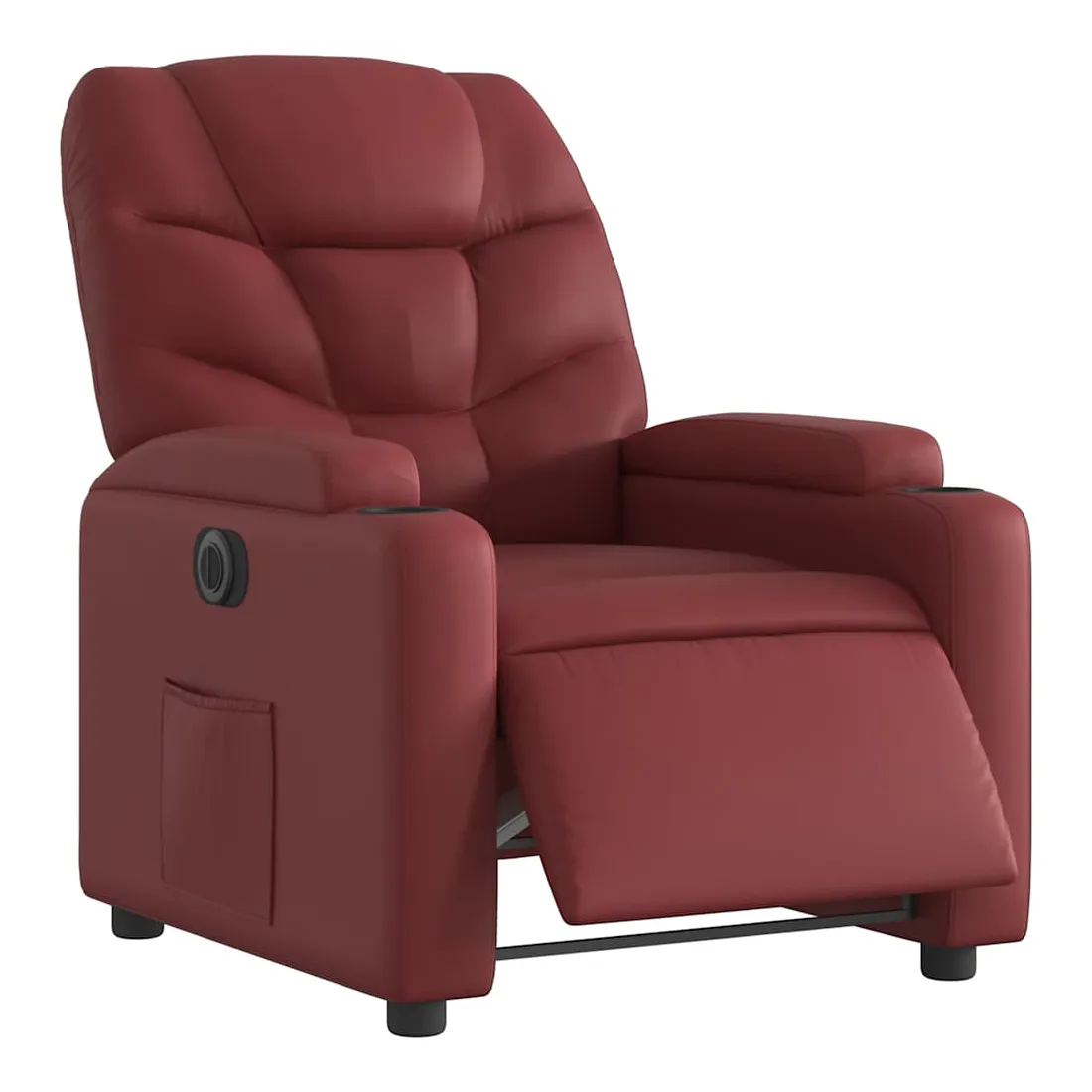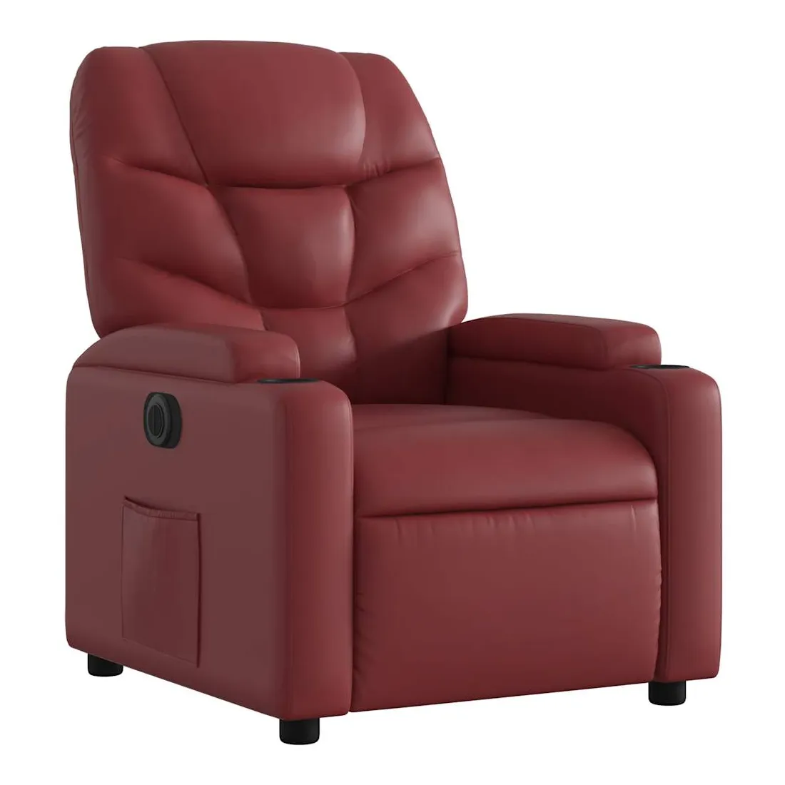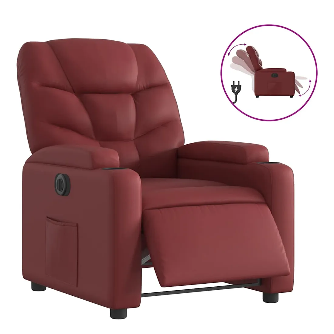 Asseyez-vous et détendez-vous dans ce fauteuil inclinable électrique très confortable ! Fonction d'inclinaison électrique : ce fauteuil inclinable est équipé d'un moteur électrique qui permet de régler automatiquement le repose-pied et le dossier dans n'importe quelle position, selon votre confort, en appuyant simplement sur le bouton situé sur le côté du fauteuil. Cette fonction permet une inclinaison maximale de 135 degrés. En outre, le dossier peut revenir automatiquement à sa position d'origine par une simple pression sur le bouton.Expérience de siège confortable : le siège, le dossier et les larges accoudoirs rembourrés épais recouverts de similicuir procurent une sensation confortable, vous faisant vous sentir enlacé lorsque vous êtes assis. Le similicuir est un matériau très résistant. Il est résistant aux taches, ce qui le rend facile à nettoyer avec un chiffon humide. La surface lisse donne également un aspect luxueux et la beauté du cuir véritable.Porte-gobelets et poche latérale pratiques : ce fauteuil dispose de deux porte-gobelets pratiques pour vos boissons et d'une poche latérale pour garder vos objets essentiels à portée de main.Cadre solide et stable : le cadre en bois et en métal offre une structure solide et une grande stabilité. Ce fauteuil inclinable est confortable et durable.