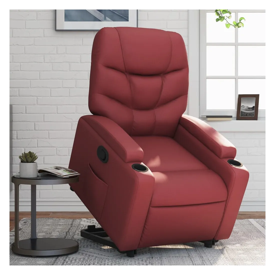 Asseyez-vous et détendez-vous dans ce fauteuil inclinable très confortable ! Fonction de levage électrique : ce fauteuil inclinable pour personnes âgées est équipé d'un moteur électrique pour la fonction de levage. Grâce à la fonction qui pousse toute la chaise vers le haut, vous pouvez facilement vous tenir debout sans stresser votre dos et vos genoux en appuyant simplement sur le bouton.Fonction d'inclinaison manuelle : ce fauteuil inclinable est doté d'une poignée du côté droit. Vous pouvez régler manuellement le repose-pieds et le dossier dans n'importe quelle position selon votre confort en tirant simplement sur la poignée. Cette fonction permet une inclinaison maximale de 135 degrés. De plus, le dossier peut revenir rapidement à sa position d'origine en tirant simplement sur la poignée.Expérience de siège confortable : le siège, le dossier et les larges accoudoirs rembourrés épais recouverts de similicuir procurent une sensation confortable, vous faisant vous sentir enlacé lorsque vous êtes assis. Le similicuir est un matériau très résistant. Il est résistant aux taches, ce qui le rend facile à nettoyer avec un chiffon humide. La surface lisse donne également un aspect luxueux et la beauté du cuir véritable.Porte-gobelets et poche latérale pratiques : ce fauteuil dispose de deux porte-gobelets pratiques pour vos boissons et d'une poche latérale pour garder vos objets essentiels à portée de main.Cadre solide et stable : le cadre en bois et en métal offre une structure solide et une grande stabilité. Ce fauteuil inclinable est confortable et durable.