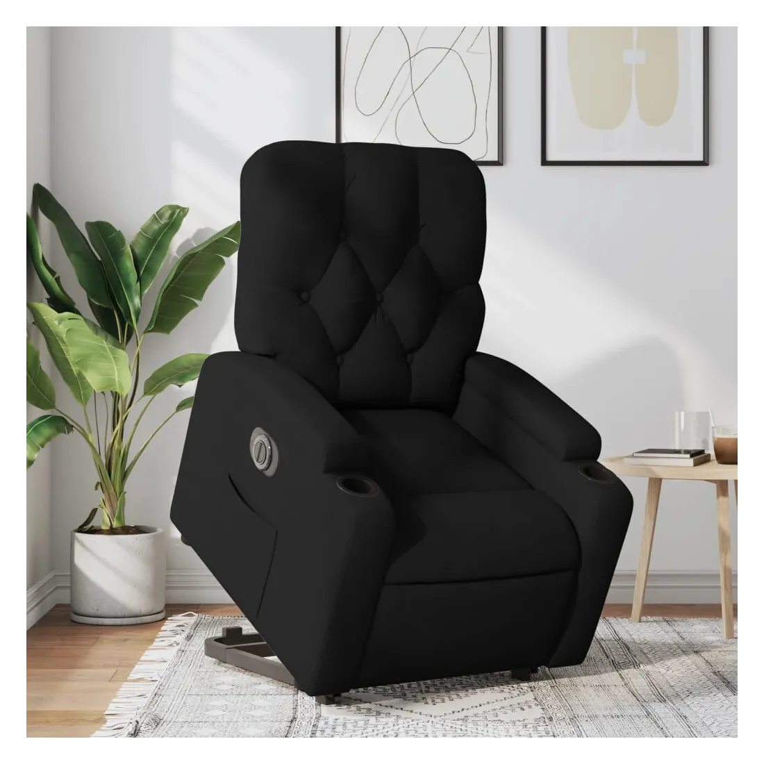 Asseyez-vous et détendez-vous dans ce fauteuil inclinable électrique très confortable ! Fonction de levage électrique : ce fauteuil inclinable pour personnes âgées est équipé d'un moteur électrique pour la fonction de levage. Grâce à la fonction qui pousse toute la chaise vers le haut, vous pouvez facilement vous tenir debout sans stresser votre dos et vos genoux en appuyant simplement sur le bouton.Fonction d'inclinaison électrique : ce fauteuil inclinable est également équipé d'un moteur électrique qui permet de régler automatiquement le repose-pied et le dossier dans n'importe quelle position, selon votre confort, en appuyant simplement sur le bouton situé sur le côté du fauteuil. Cette fonction permet une inclinaison maximale de 135 degrés. En outre, le dossier peut revenir automatiquement à sa position d'origine par une simple pression sur le bouton.Expérience d'assise confortable : le siège, le dossier et les larges accoudoirs bien rembourrés recouverts de tissu procurent une sensation confortable et chaleureuse, vous permettant de vous sentir enveloppé lorsque vous êtes assis. Le tissu présente un aspect simple et épuré et est respirant et durable.Porte-gobelets et poche latérale pratiques : ce fauteuil dispose de deux porte-gobelets pratiques pour vos boissons et d'une poche latérale pour garder vos objets essentiels à portée de main.Cadre solide et stable : le cadre en bois et en métal offre une structure solide et une grande stabilité. Ce fauteuil inclinable est confortable et durable.