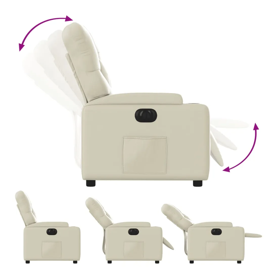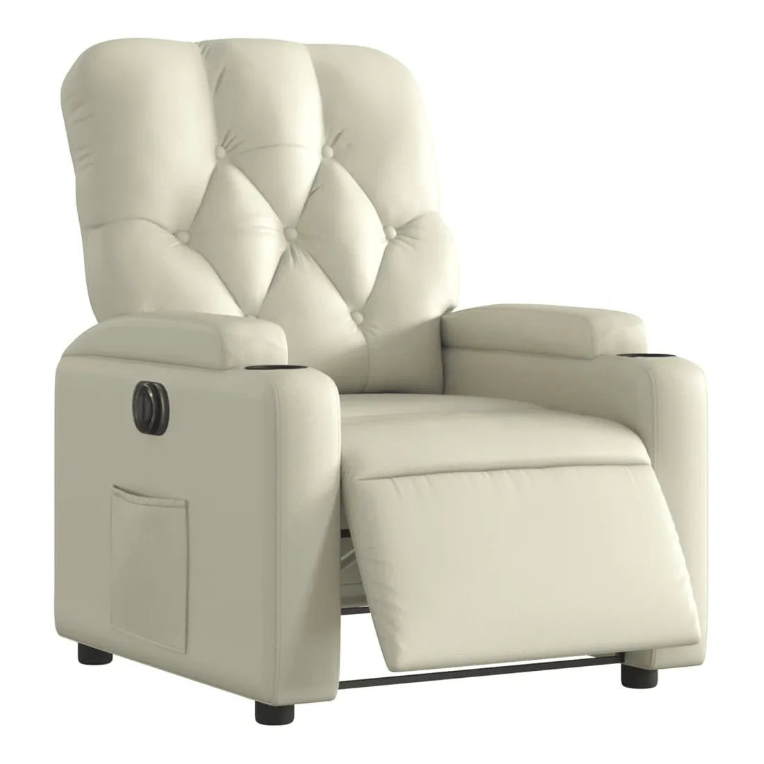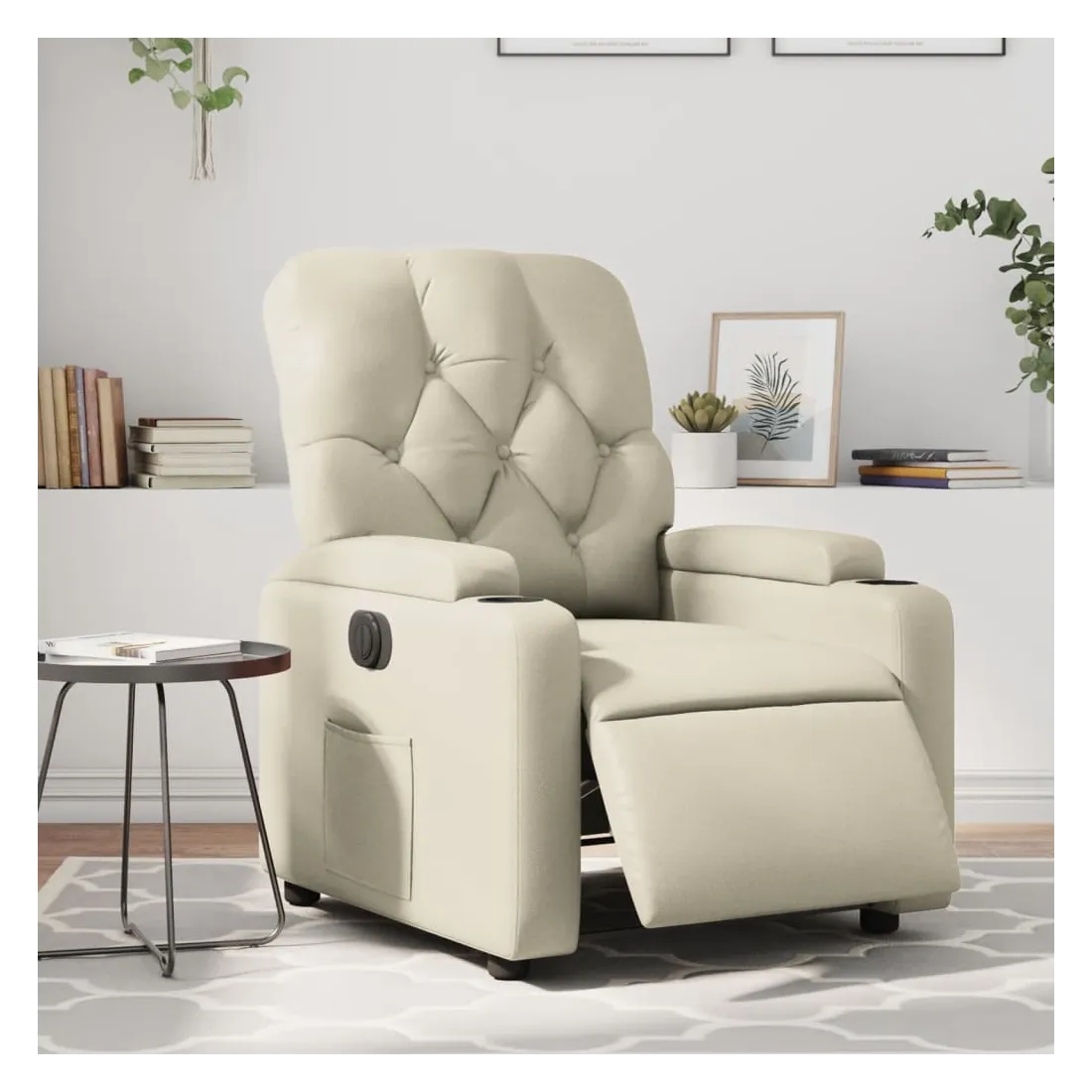 Asseyez-vous et détendez-vous dans ce fauteuil inclinable électrique très confortable ! Fonction d'inclinaison électrique : ce fauteuil inclinable est équipé d'un moteur électrique qui permet de régler automatiquement le repose-pied et le dossier dans n'importe quelle position, selon votre confort, en appuyant simplement sur le bouton situé sur le côté du fauteuil. Cette fonction permet une inclinaison maximale de 135 degrés. En outre, le dossier peut revenir automatiquement à sa position d'origine par une simple pression sur le bouton.Expérience de siège confortable : le siège, le dossier et les larges accoudoirs rembourrés épais recouverts de similicuir procurent une sensation confortable, vous faisant vous sentir enlacé lorsque vous êtes assis. Le similicuir est un matériau très résistant. Il est résistant aux taches, ce qui le rend facile à nettoyer avec un chiffon humide. La surface lisse donne également un aspect luxueux et la beauté du cuir véritable.Poche latérale pratique : ce fauteuil est doté d'une poche latérale pour vous permettre de garder vos objets essentiels à portée de main.Cadre solide et stable : le cadre en bois et en métal offre une structure solide et une grande stabilité. Ce fauteuil inclinable est confortable et durable.