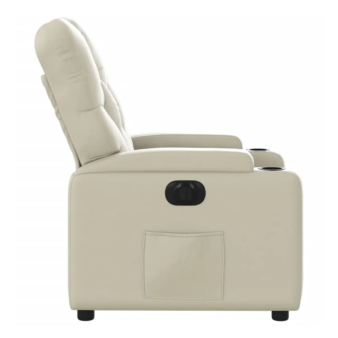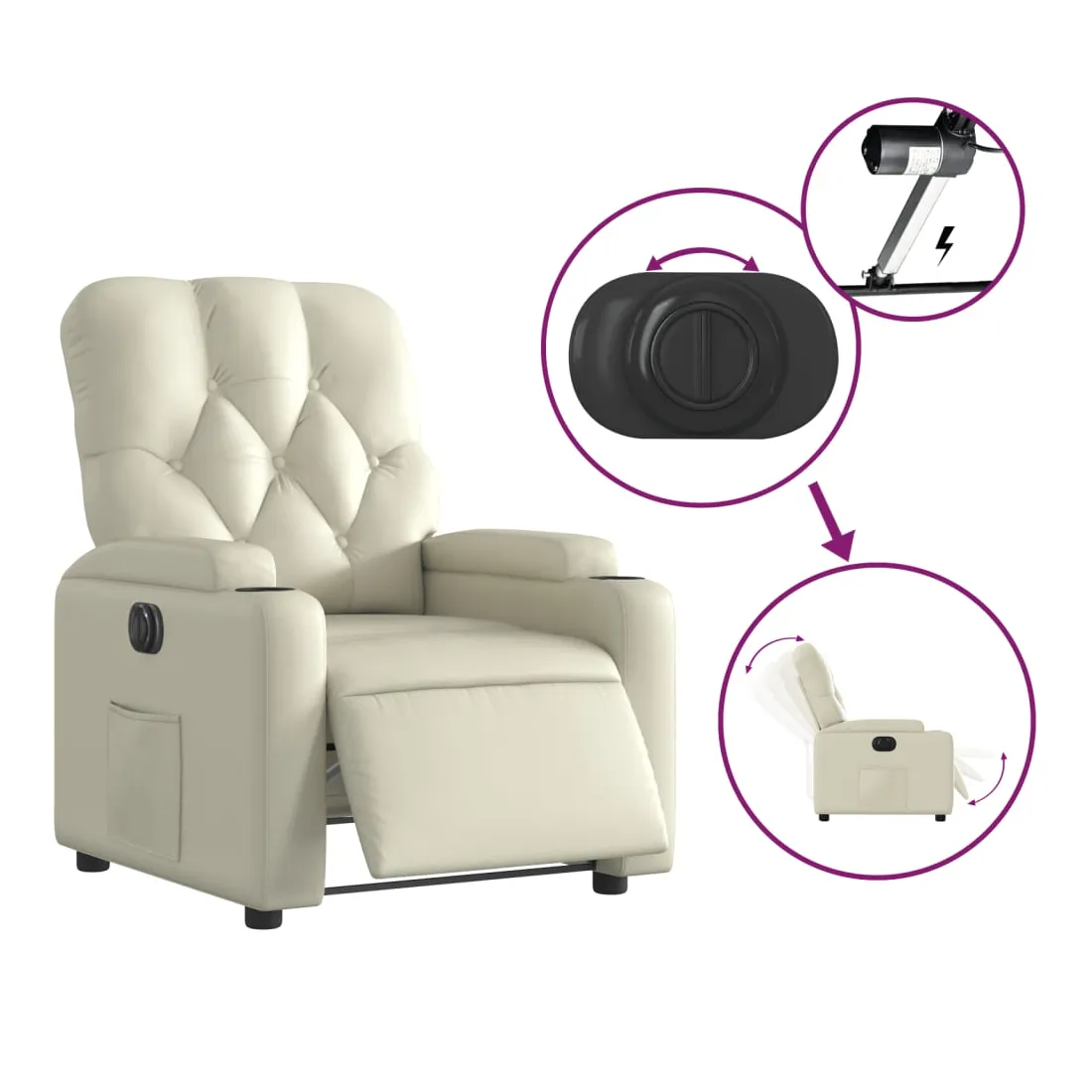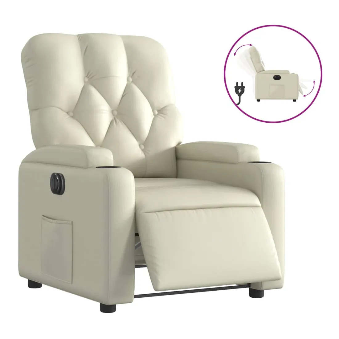 Asseyez-vous et détendez-vous dans ce fauteuil inclinable électrique très confortable ! Fonction d'inclinaison électrique : ce fauteuil inclinable est équipé d'un moteur électrique qui permet de régler automatiquement le repose-pied et le dossier dans n'importe quelle position, selon votre confort, en appuyant simplement sur le bouton situé sur le côté du fauteuil. Cette fonction permet une inclinaison maximale de 135 degrés. En outre, le dossier peut revenir automatiquement à sa position d'origine par une simple pression sur le bouton.Expérience de siège confortable : le siège, le dossier et les larges accoudoirs rembourrés épais recouverts de similicuir procurent une sensation confortable, vous faisant vous sentir enlacé lorsque vous êtes assis. Le similicuir est un matériau très résistant. Il est résistant aux taches, ce qui le rend facile à nettoyer avec un chiffon humide. La surface lisse donne également un aspect luxueux et la beauté du cuir véritable.Poche latérale pratique : ce fauteuil est doté d'une poche latérale pour vous permettre de garder vos objets essentiels à portée de main.Cadre solide et stable : le cadre en bois et en métal offre une structure solide et une grande stabilité. Ce fauteuil inclinable est confortable et durable.
